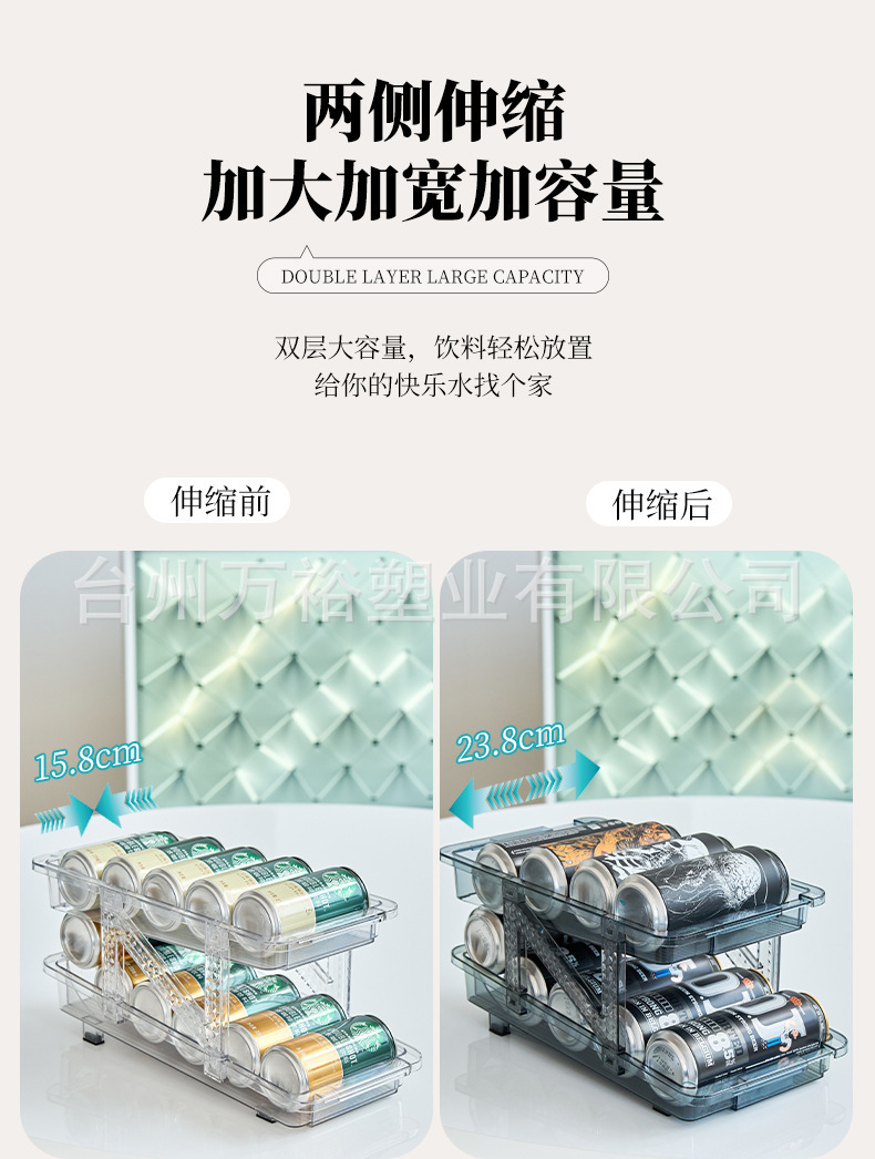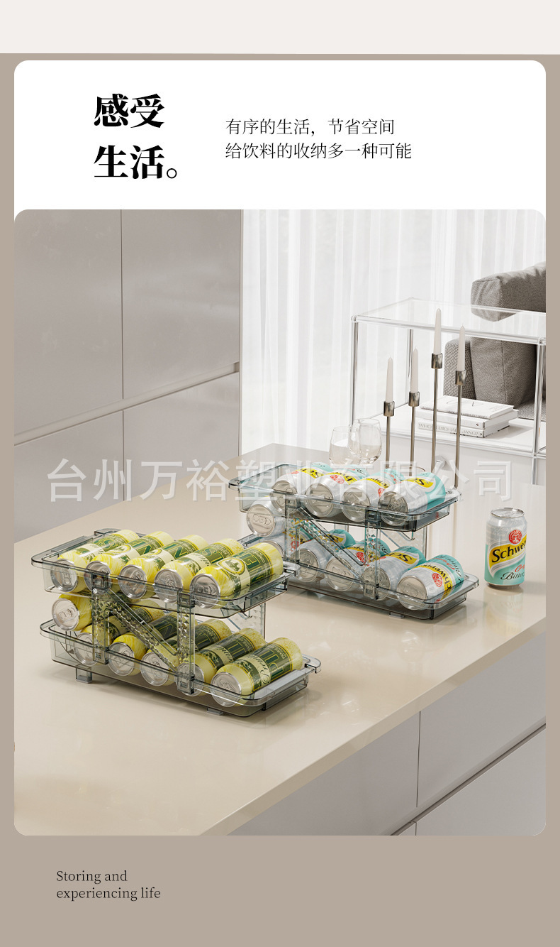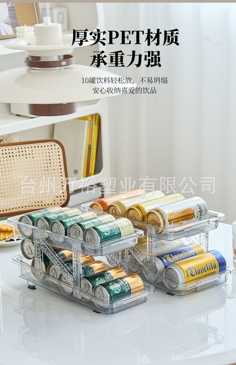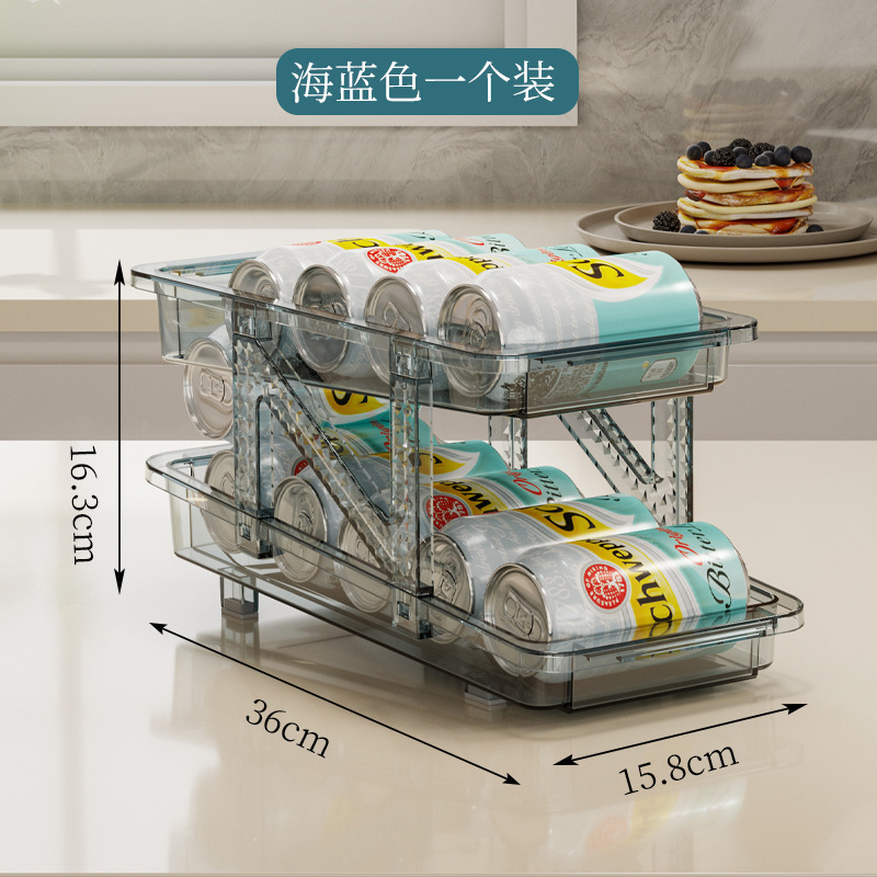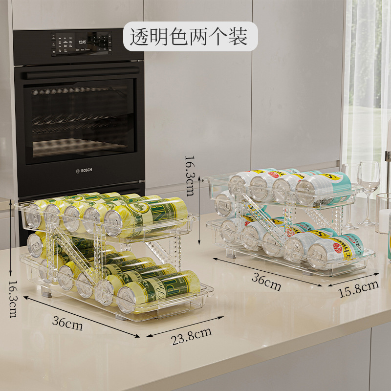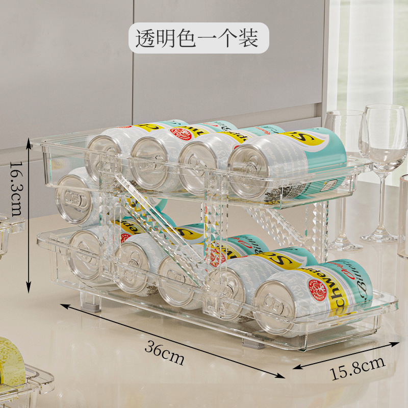 더블 레이어 개폐식 롤링 음료 저장 상자 자동 충전 팝 캔 저장 랙 냉장고 소다 데스크탑 랙