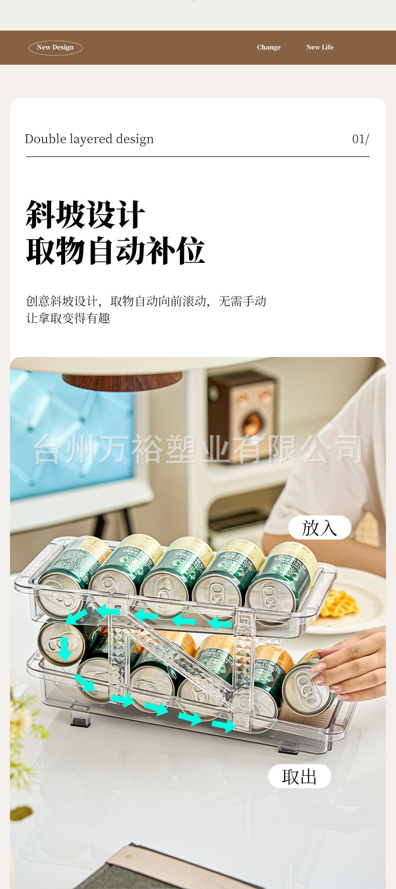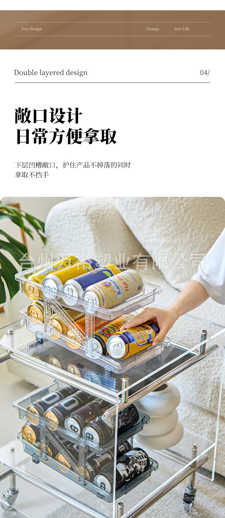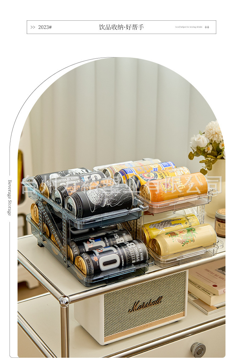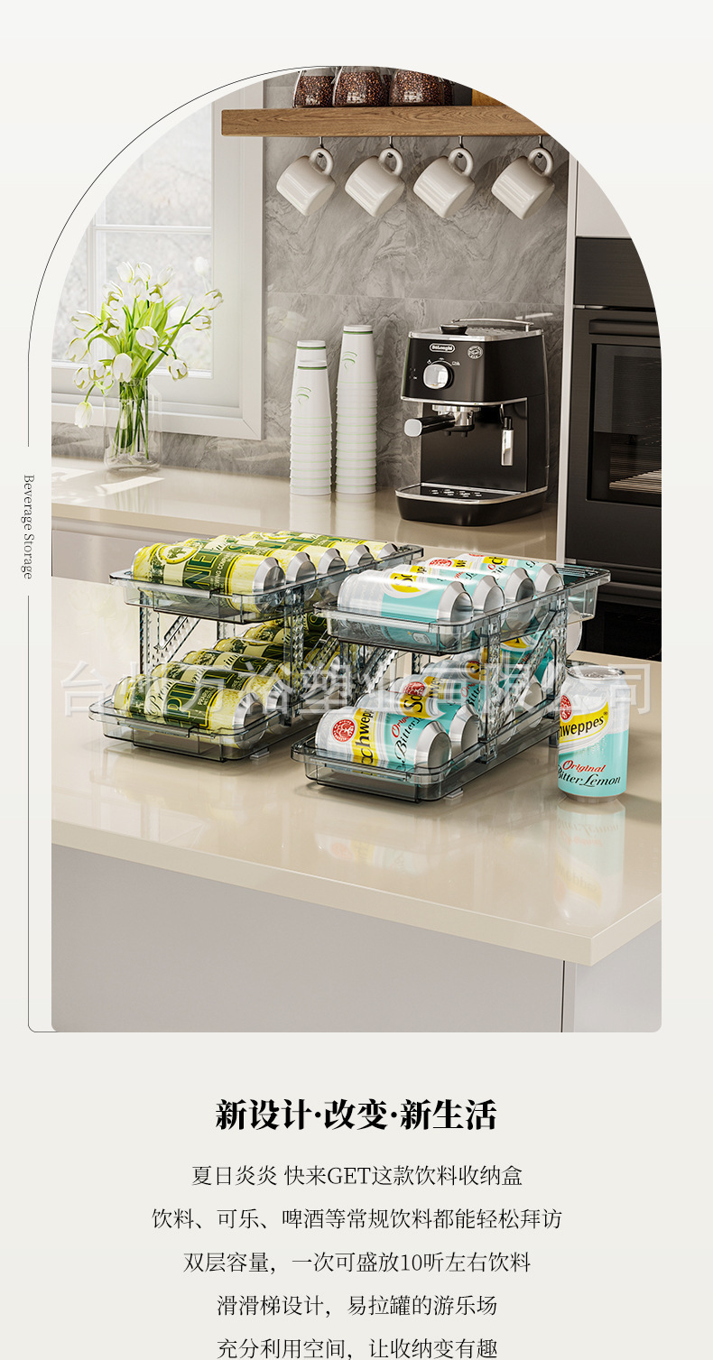 더블 레이어 개폐식 롤링 음료 저장 상자 자동 충전 팝 캔 저장 랙 냉장고 소다 데스크탑 랙