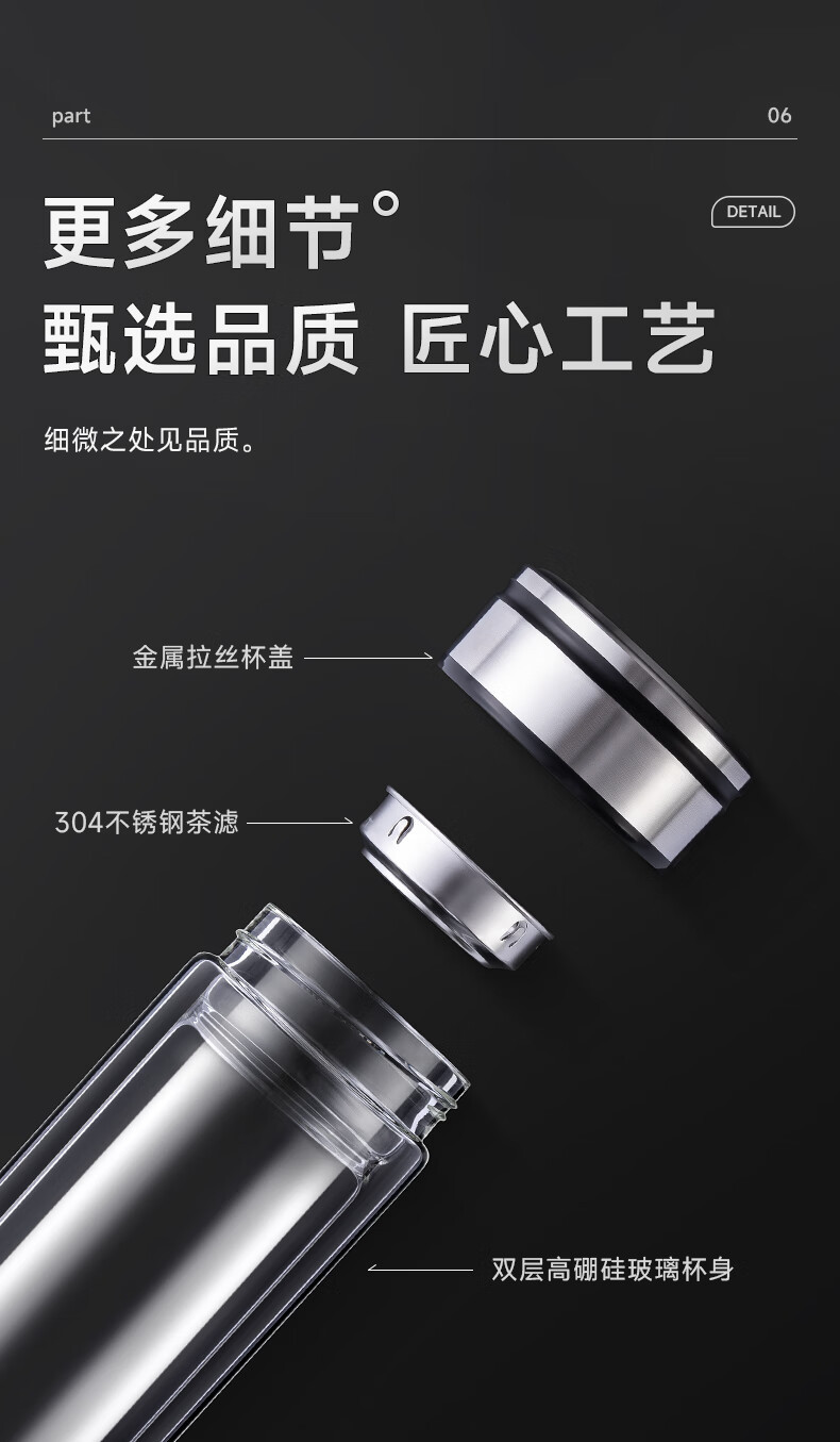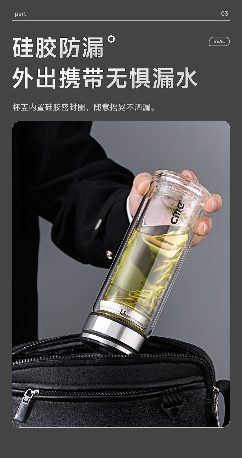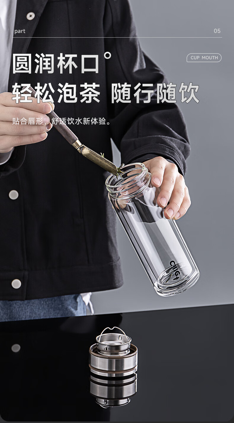 Xile 더블 레이어 유리 남자의 새로운 차 컵 차 분리 단열 고급 물 컵 고온 저항 가구스토어 가기