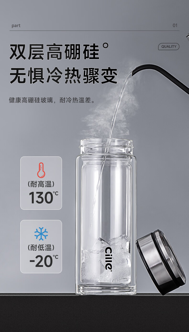 Xile 더블 레이어 유리 남자의 새로운 차 컵 차 분리 단열 고급 물 컵 고온 저항 가구