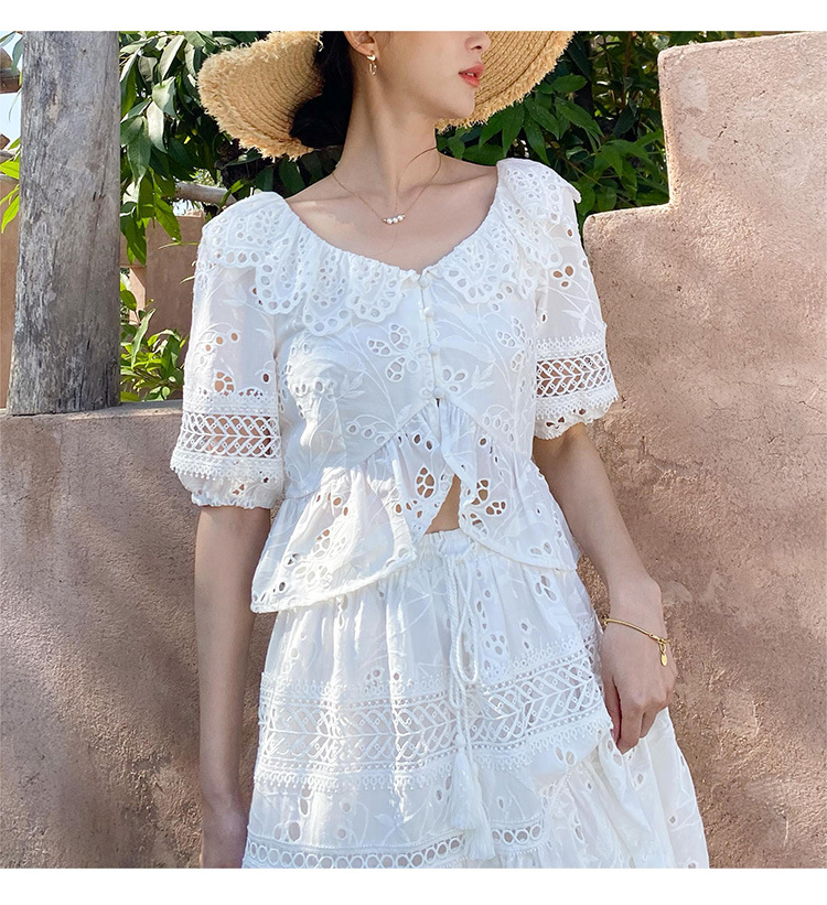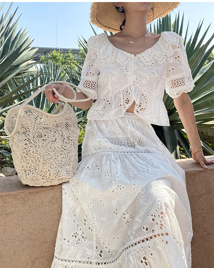 여름 새로운 샤넬 스타일 세트 여성 사교계 프랑스 홀리데이 스타일 자수 탑 스커트 국경 간 유럽과 미국 여성 의류