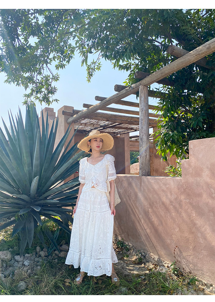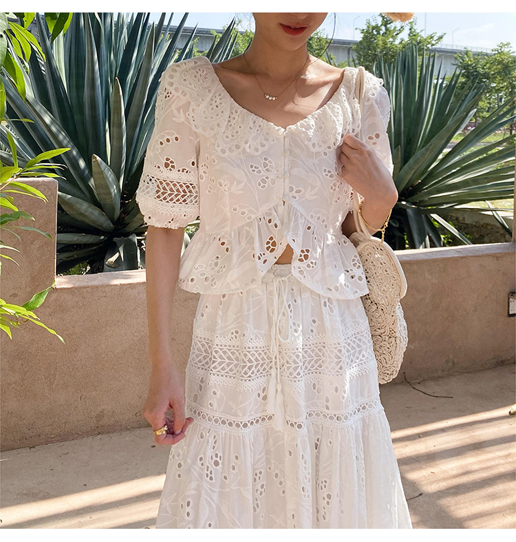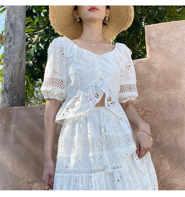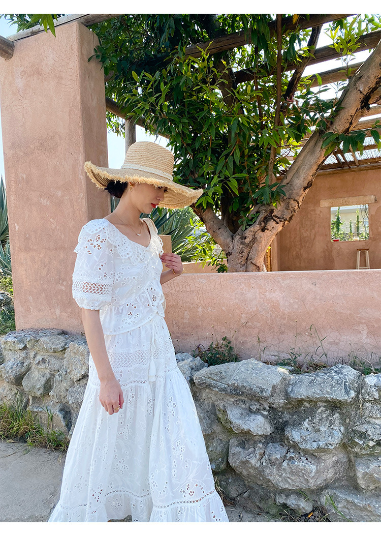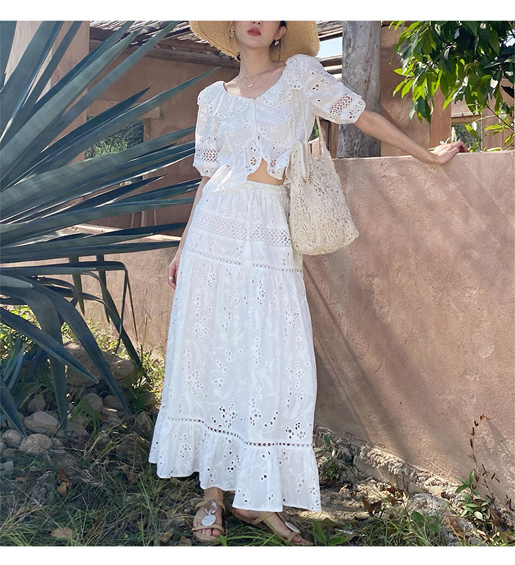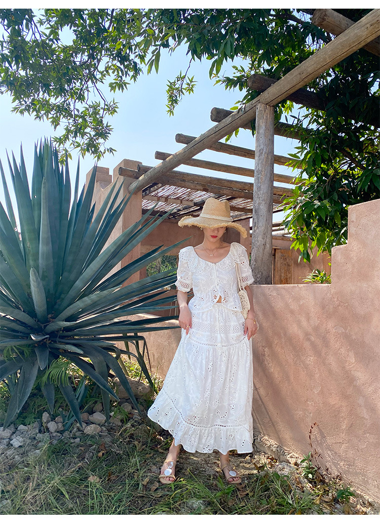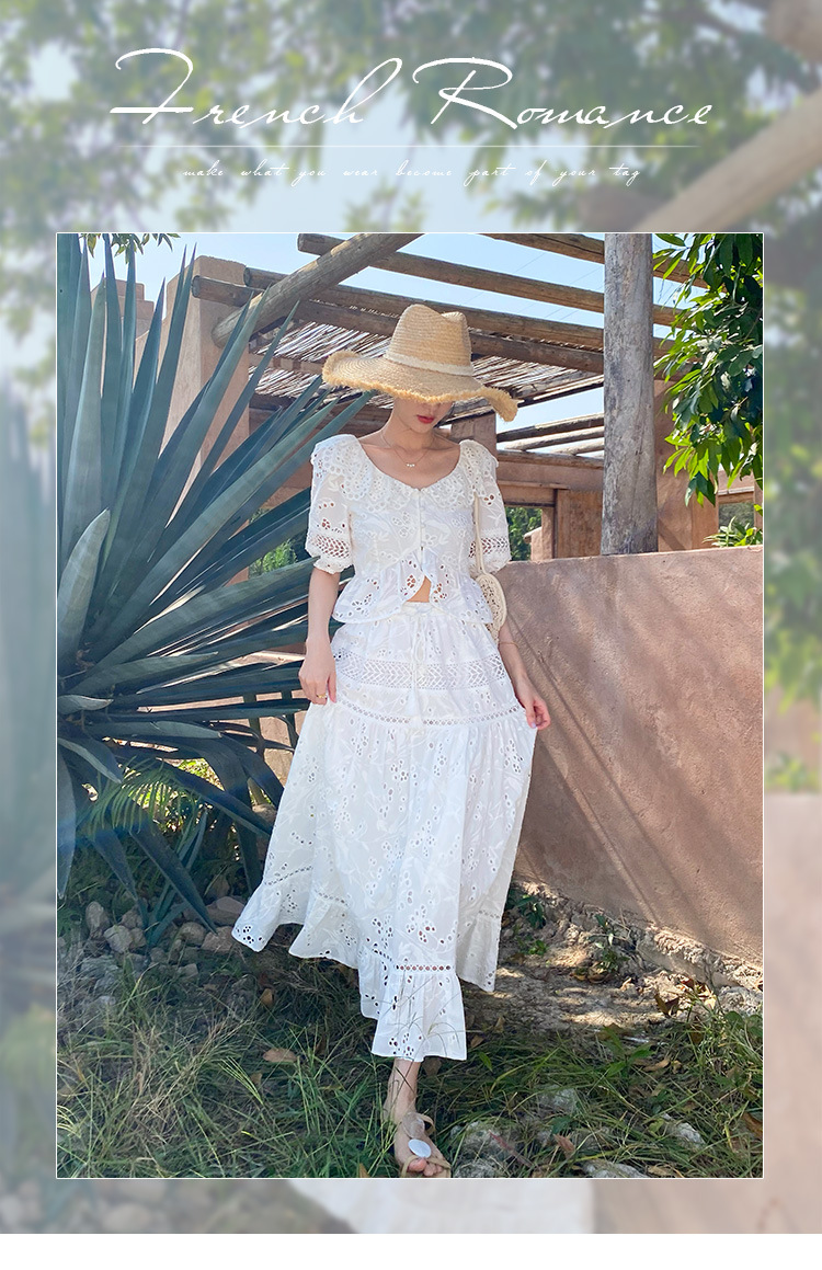 여름 새로운 샤넬 스타일 세트 여성 사교계 프랑스 홀리데이 스타일 자수 탑 스커트 국경 간 유럽과 미국 여성 의류스토어 가기