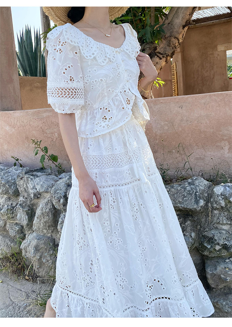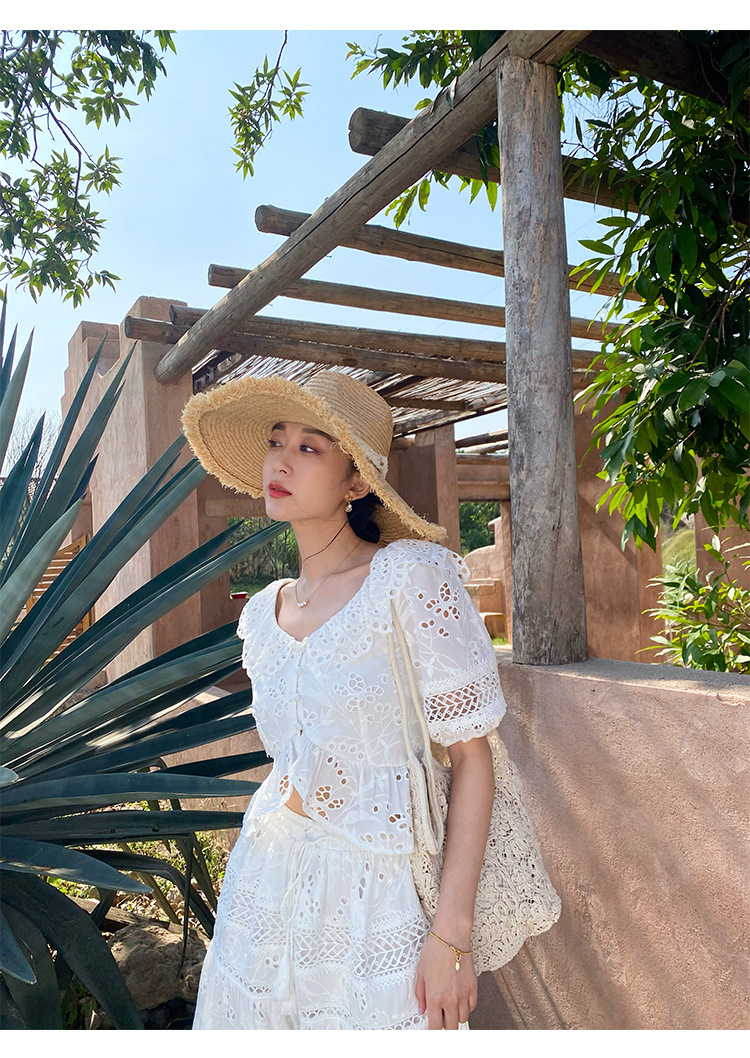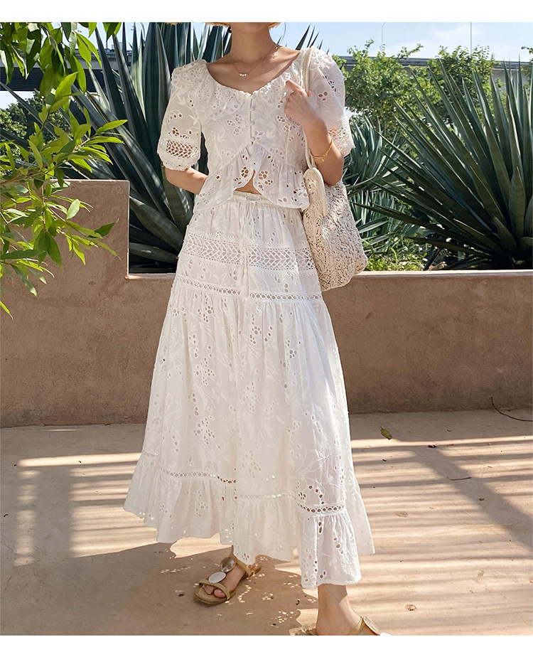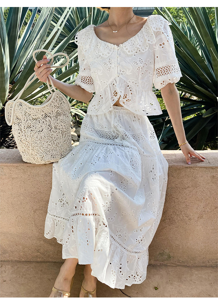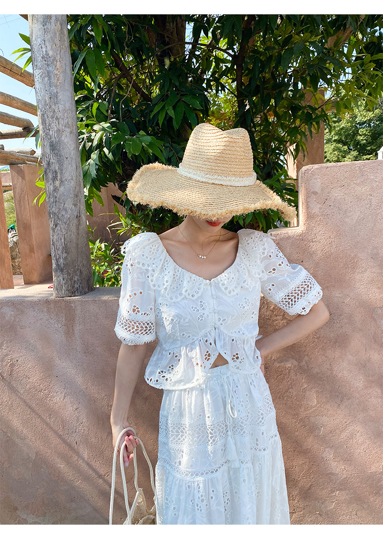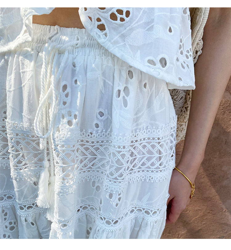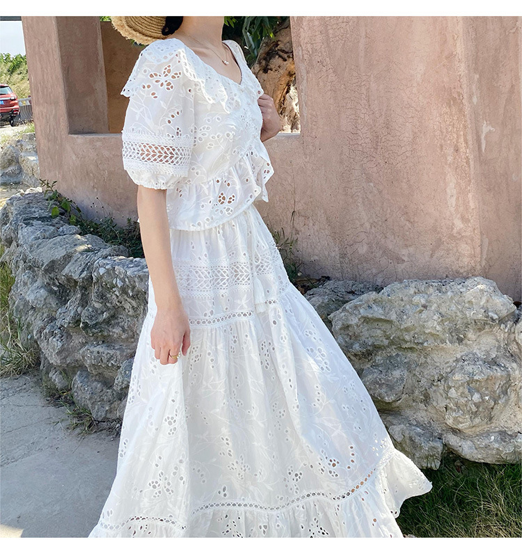 여름 새로운 샤넬 스타일 세트 여성 사교계 프랑스 홀리데이 스타일 자수 탑 스커트 국경 간 유럽과 미국 여성 의류스토어 가기