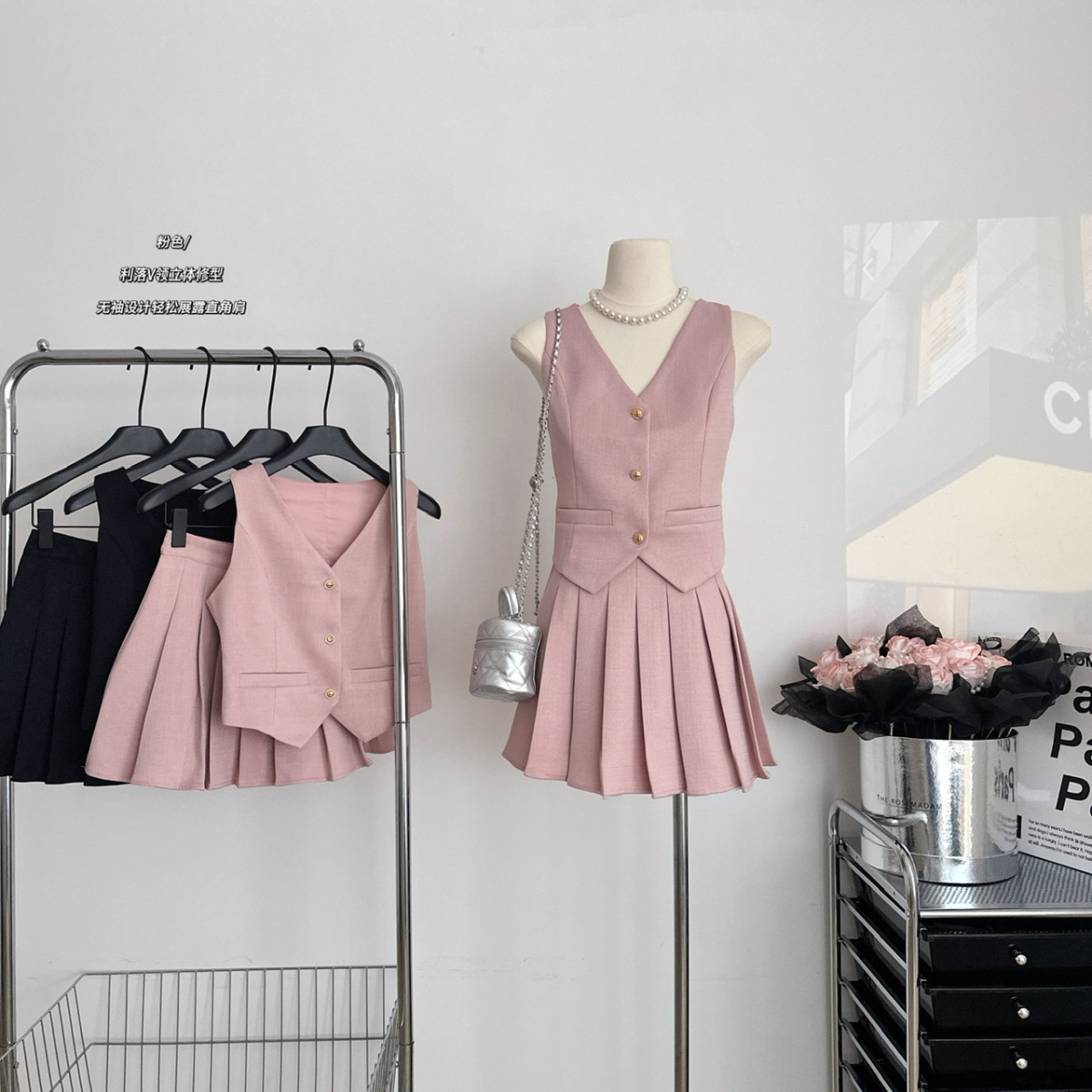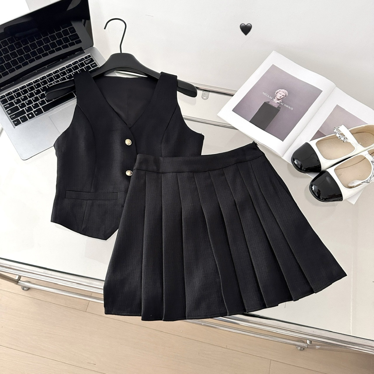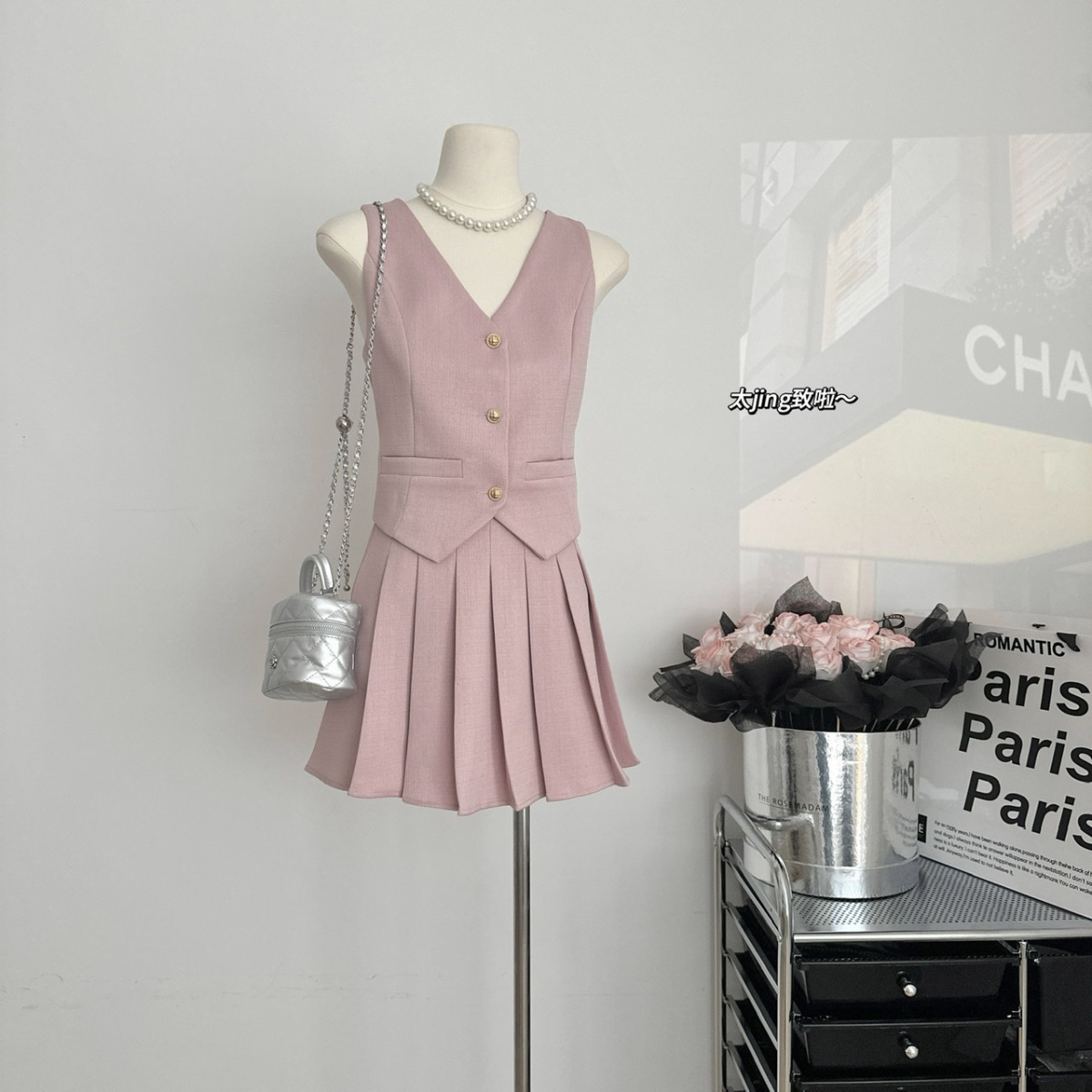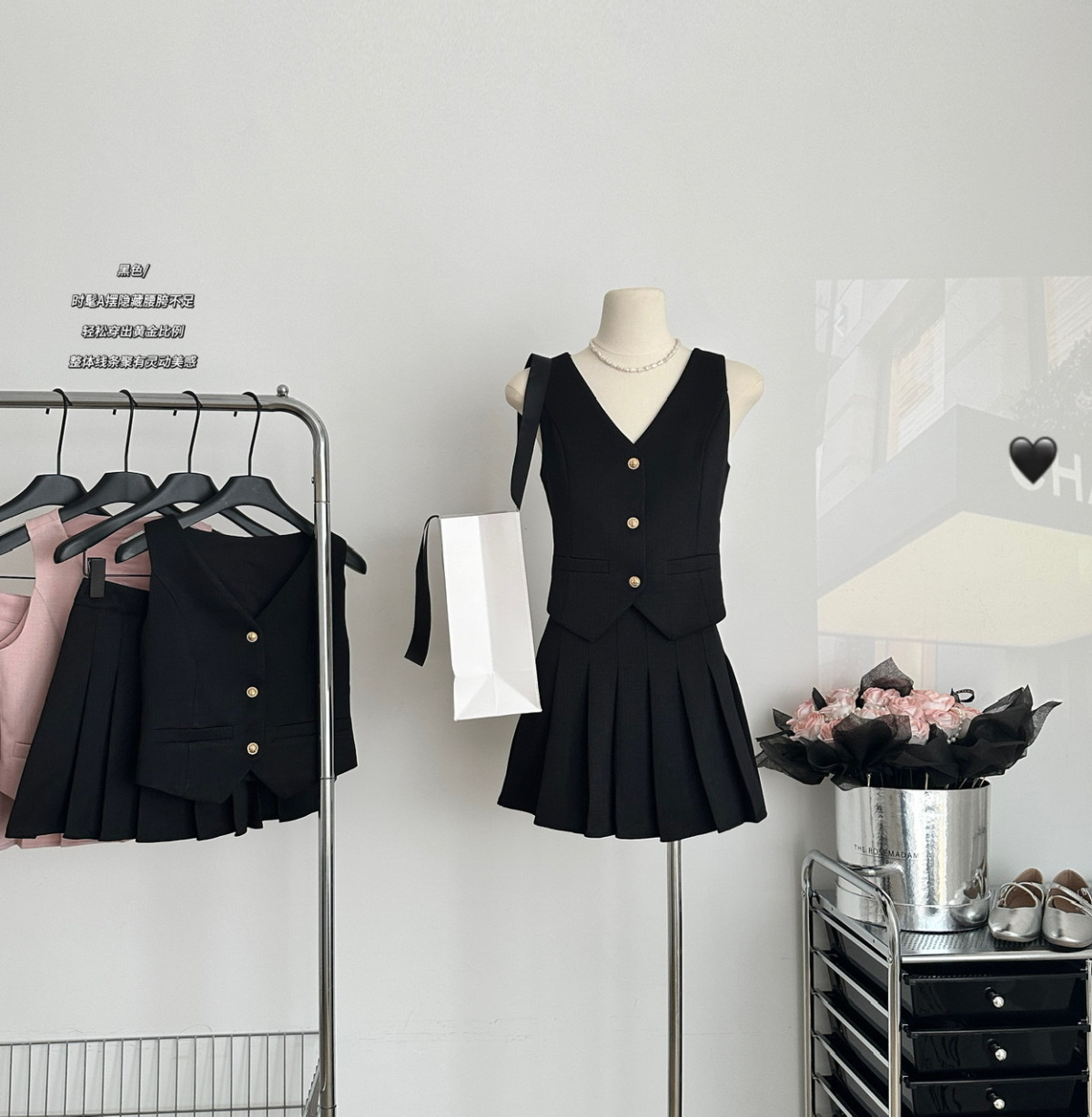프렌치 스타일 조끼 투피스 세트 여성용 2026년 여름 패션 하이웨이스트 숏 스커트 세트