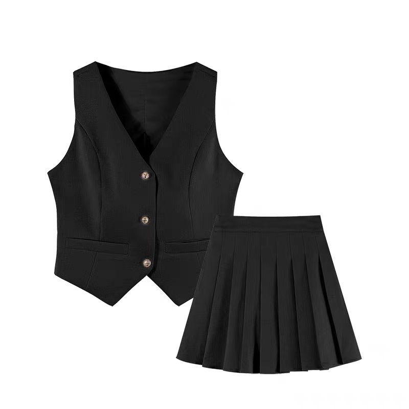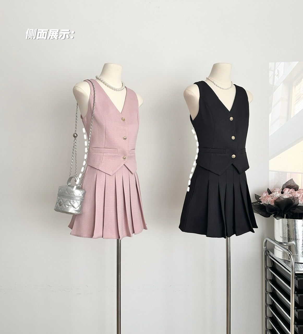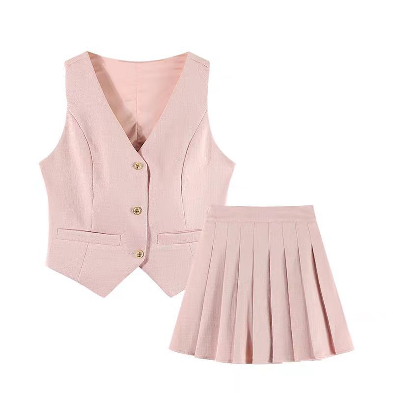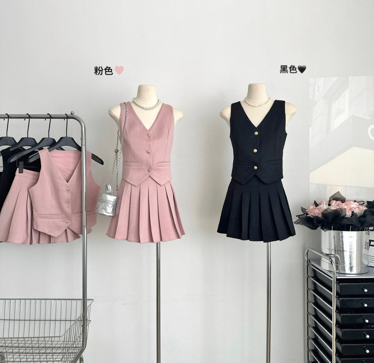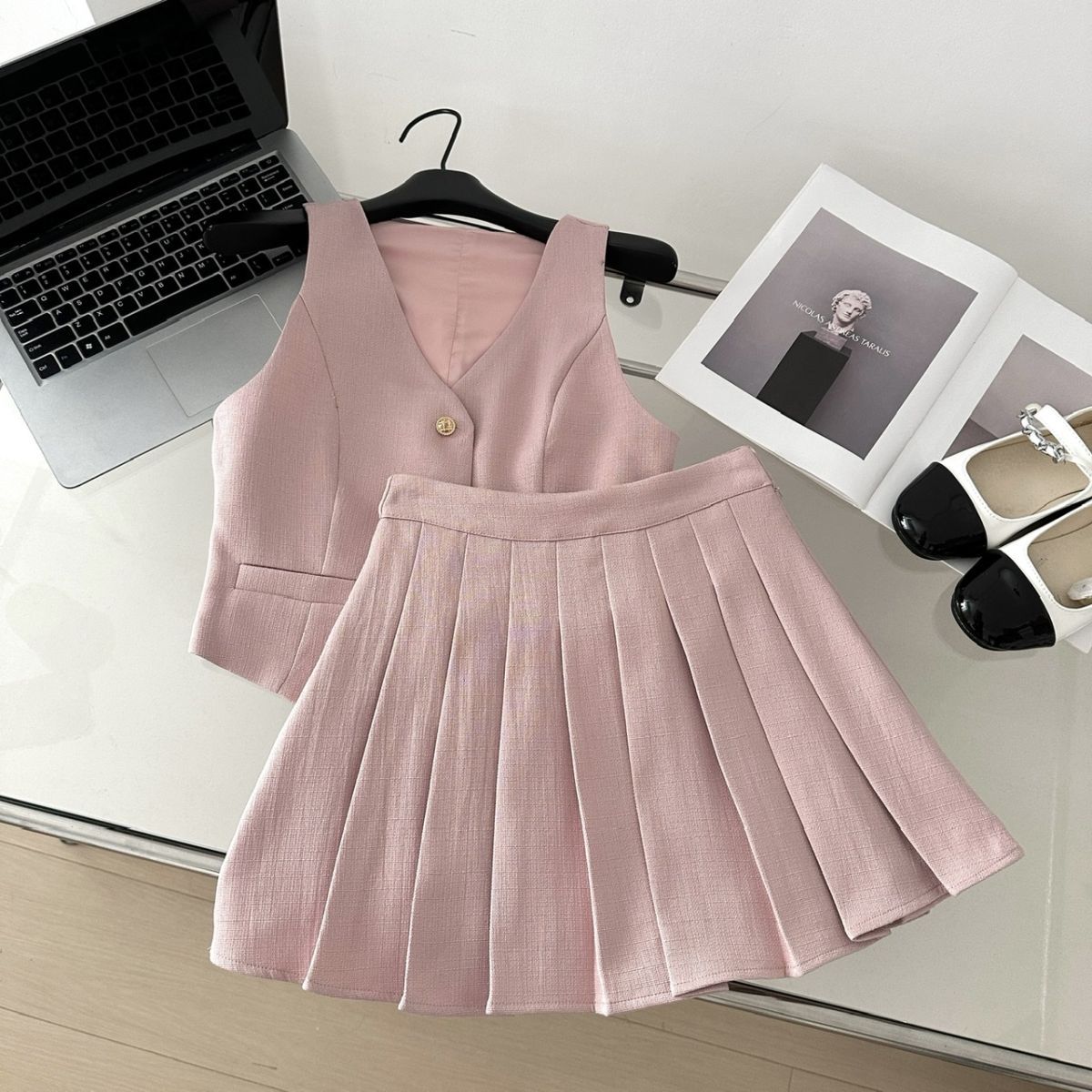 프렌치 스타일 조끼 투피스 세트 여성용 2026년 여름 패션 하이웨이스트 숏 스커트 세트
