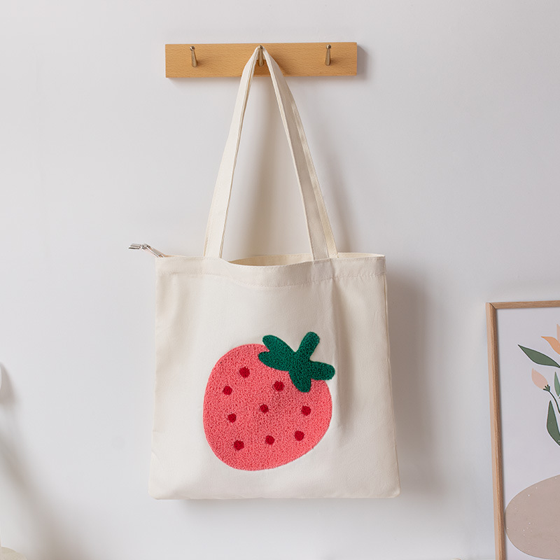 2024 봄과 여름 자수 캔버스 가방 여성용 어깨 가방 대용량 학생 자수 토트 백 귀여운 캔버스 가방 공장스토어 가기