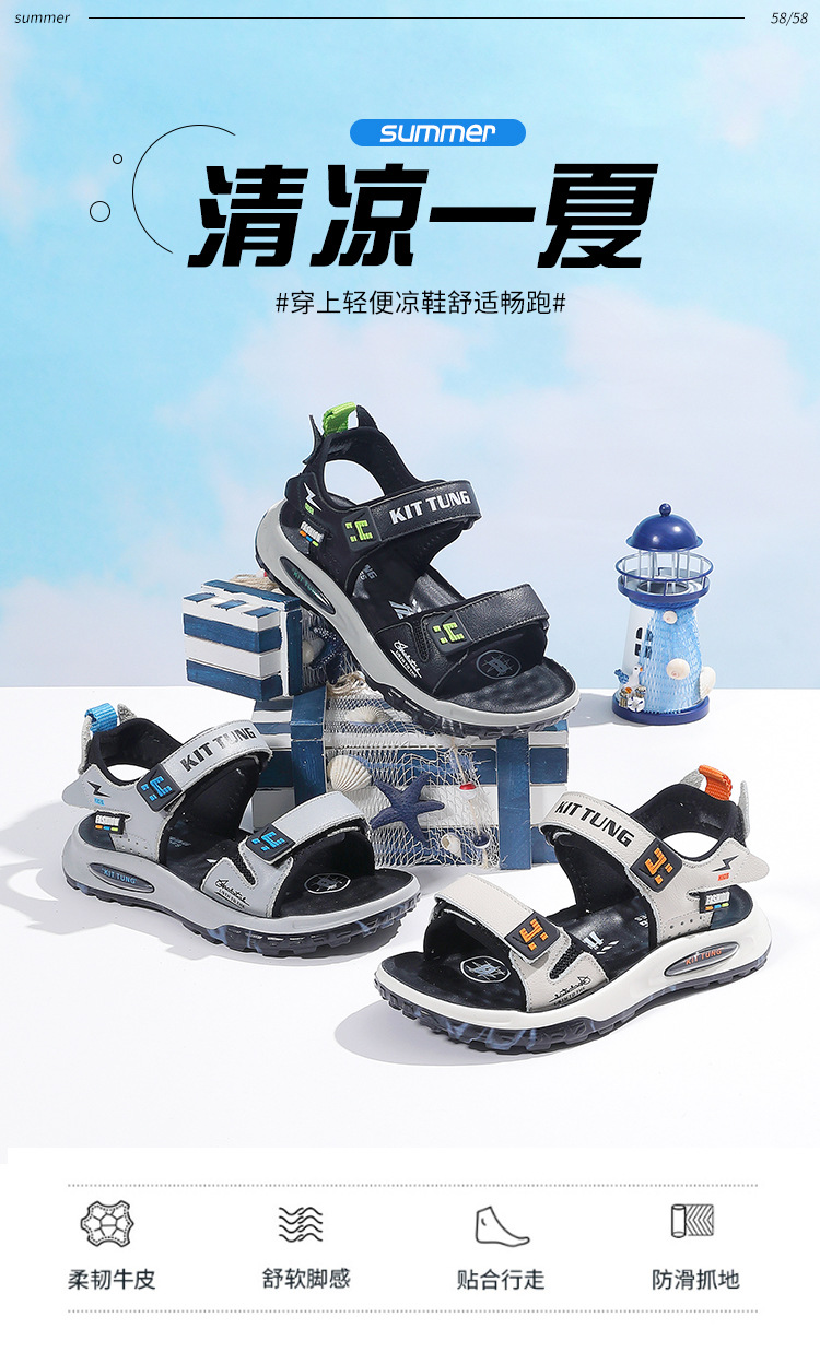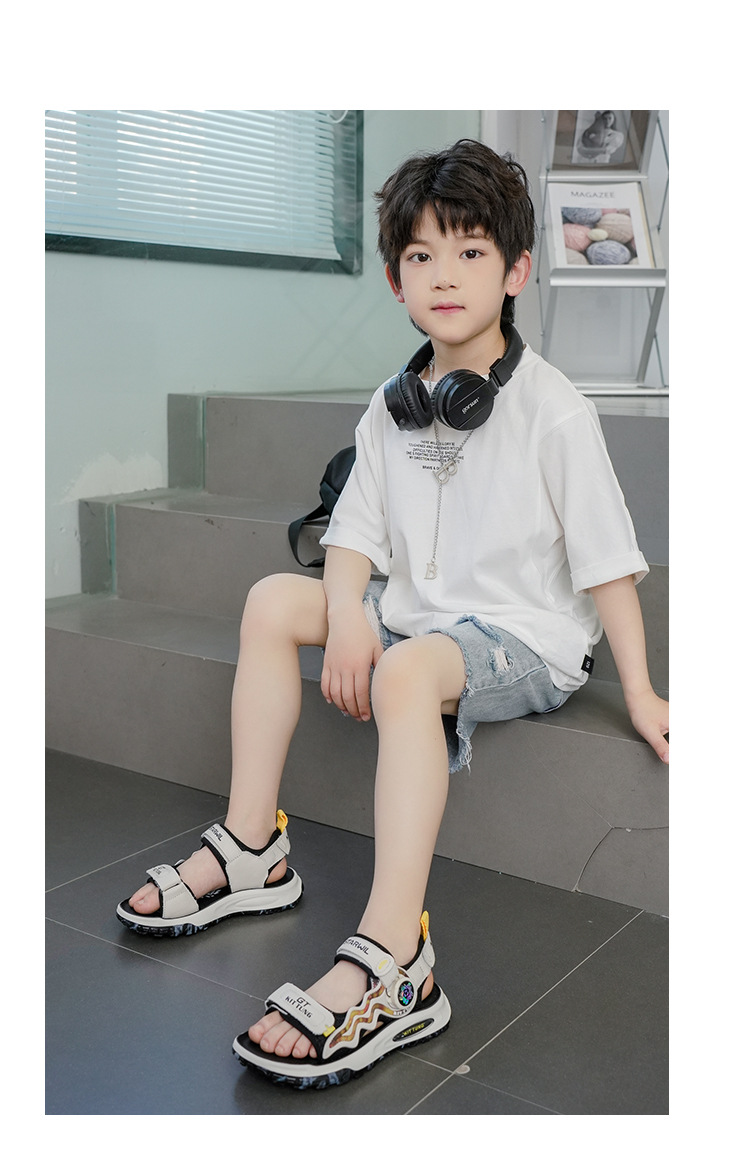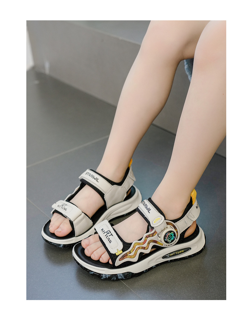 남아 샌들 2025 신상 여름 아기 부드러운 밑창 어린이 신발 벨크로 가죽 소년 비치 신발 트렌디스토어 가기