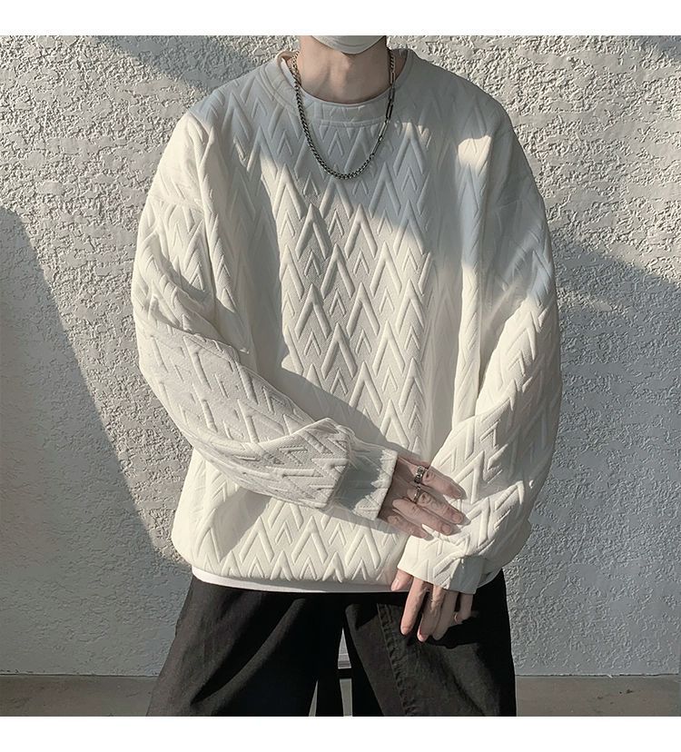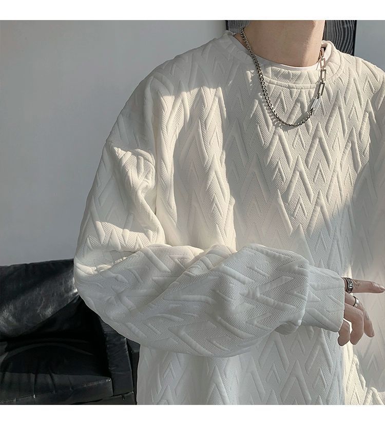 흰색 바로크 헤비 스웨터 남성용 고급 봄과 가을 디자인 감각 후드 언더 셔츠 오버 사이즈스토어 가기