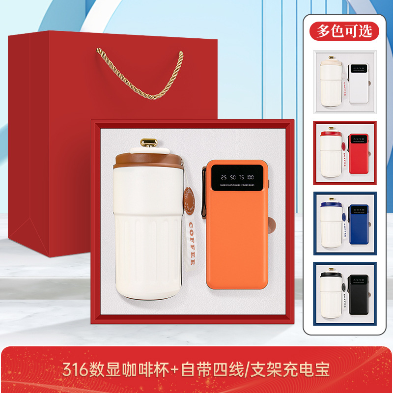 회사 연례 회의 선물 보온병 및 보조 배터리 세트 맞춤형 로고 기념일 축하 개업 기념품 고급 선물 상자스토어 가기