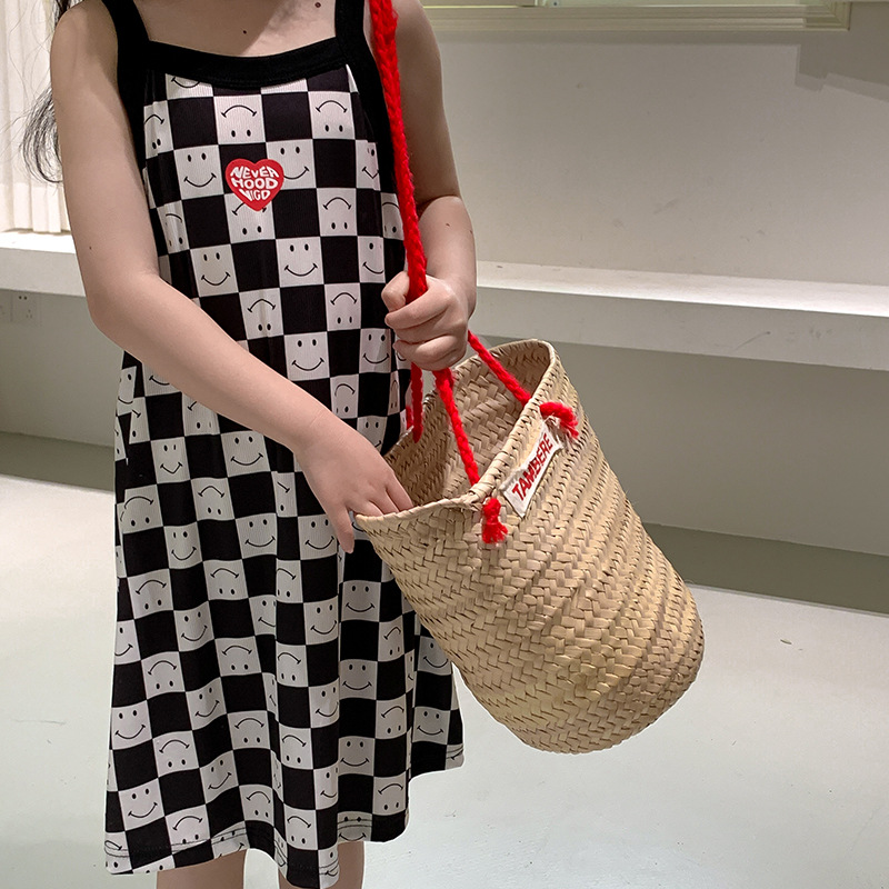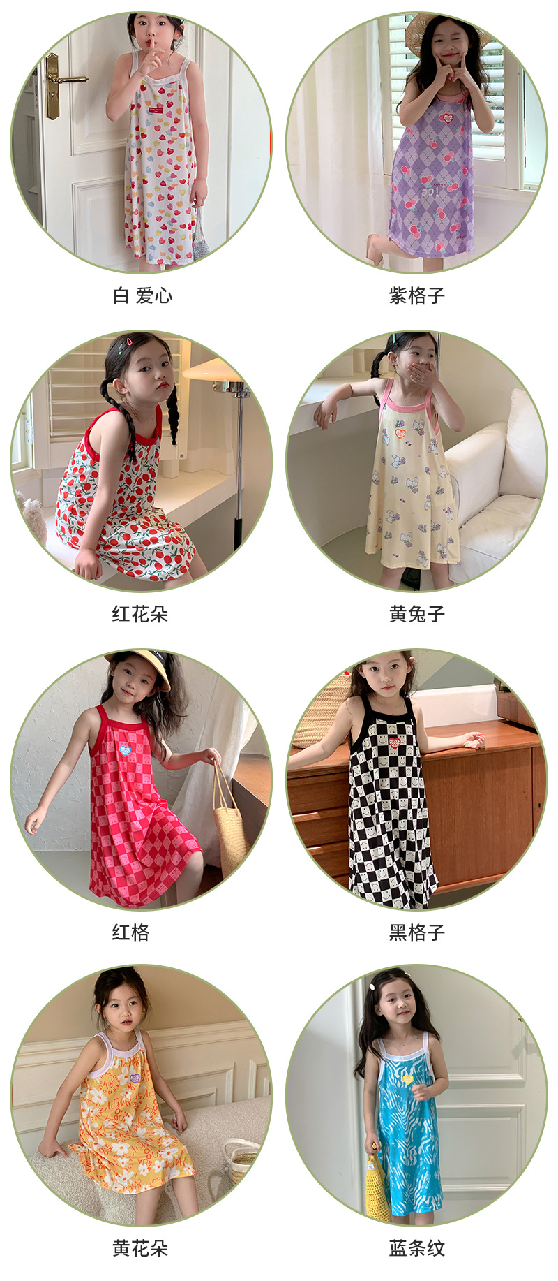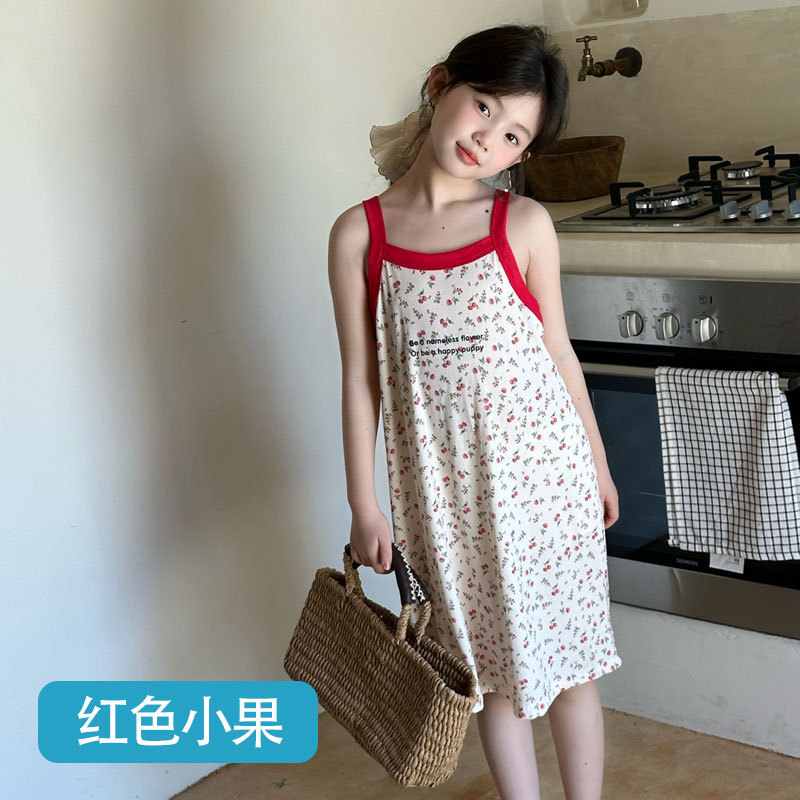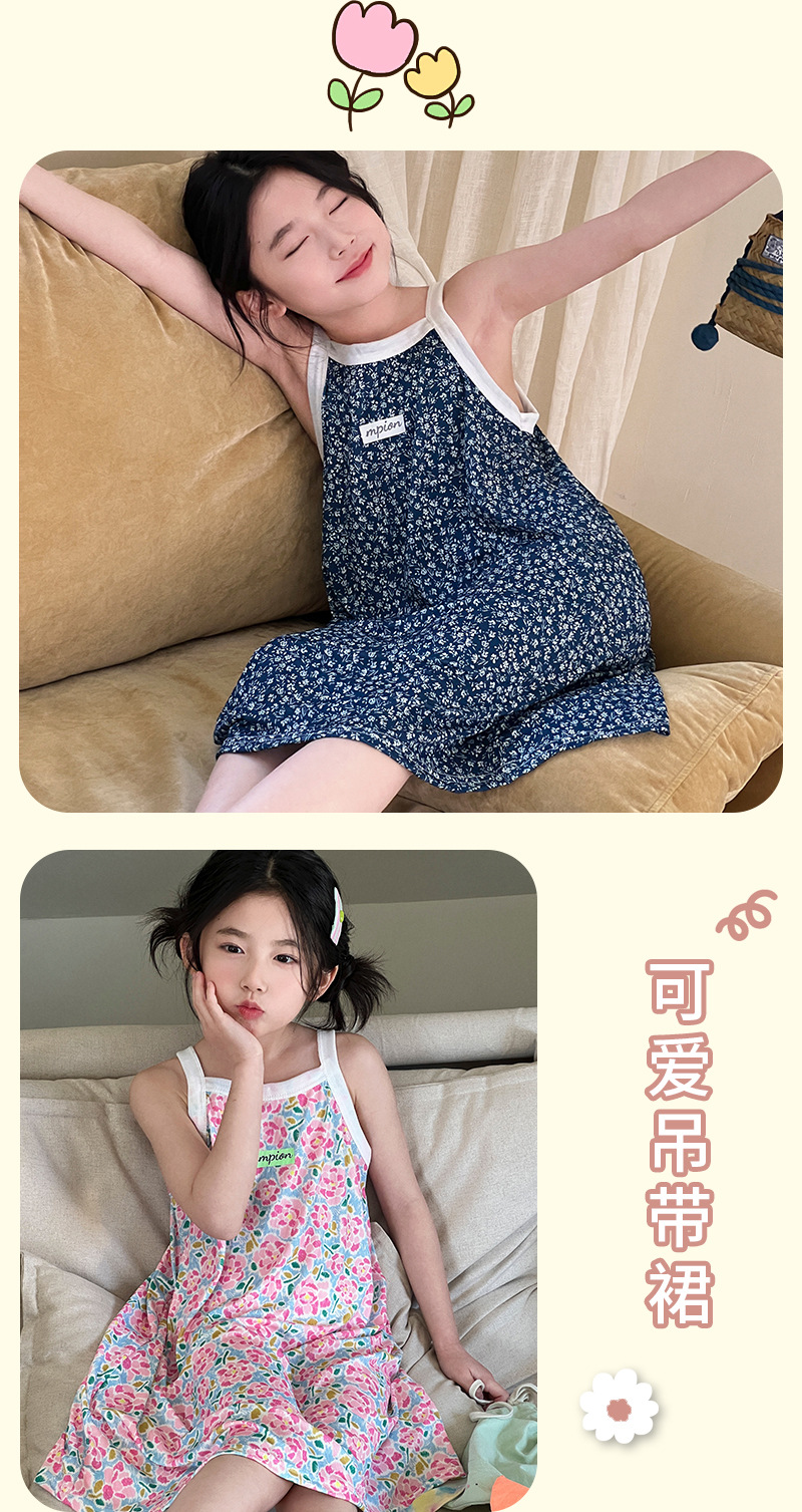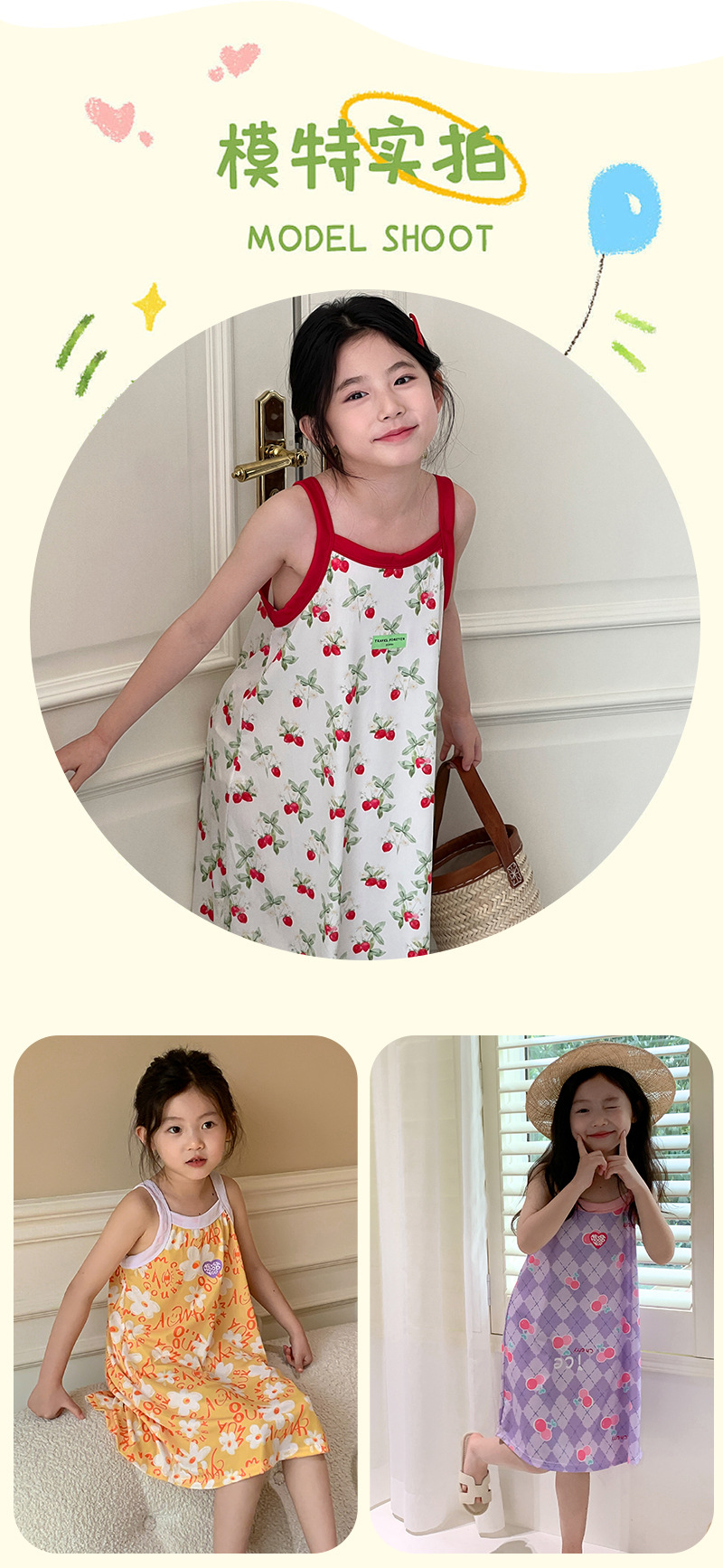 2024 봄 새로운 어린이 얼음 실크 슬링 원피스 중소 소녀 서양식 전체 인쇄 꽃 야외 해변 원피스스토어 가기
