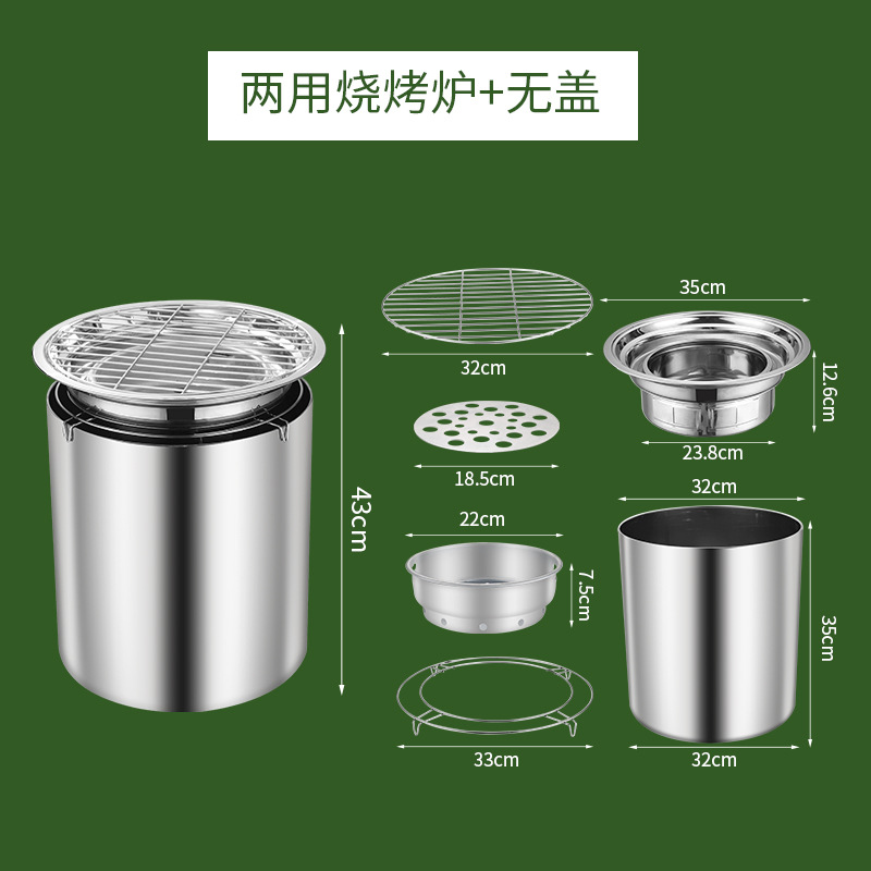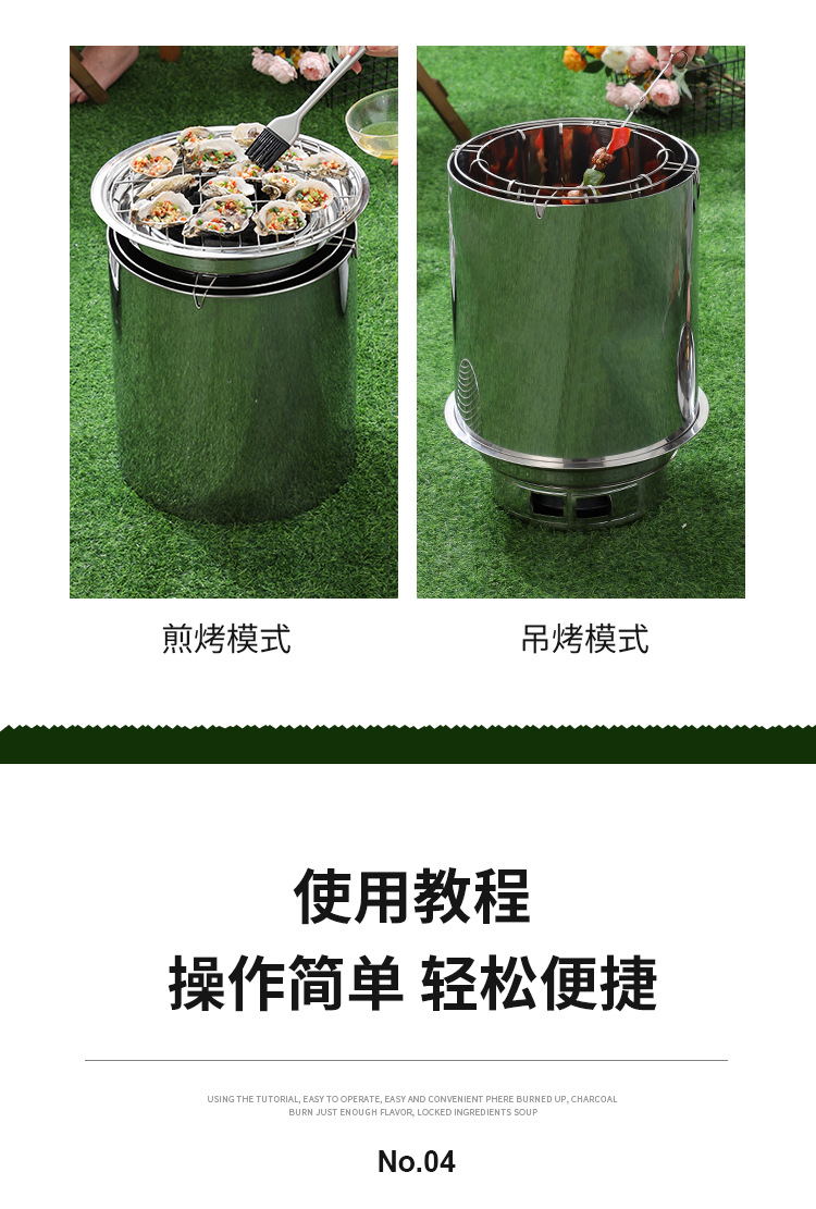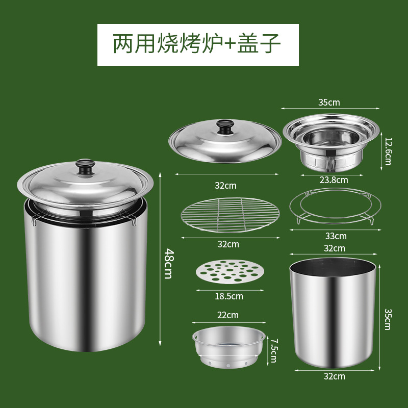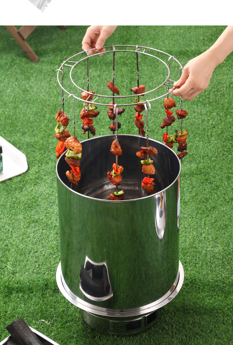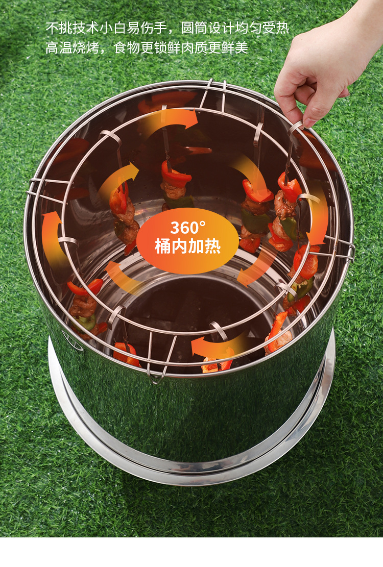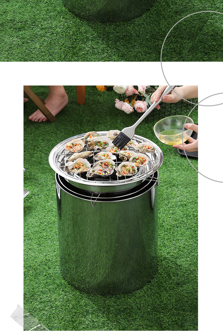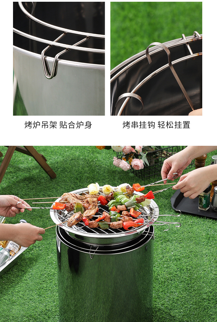 휴대용 라운드 바비큐 오븐 튀김 오븐 스테인레스 스틸 배럴 모양의 교수형 오븐 가정용 바베큐 오븐 야외 금연 탄소 오븐스토어 가기