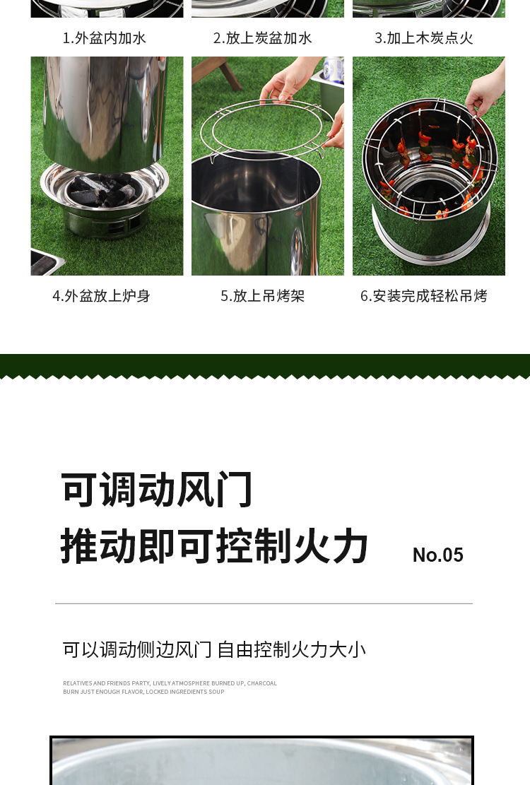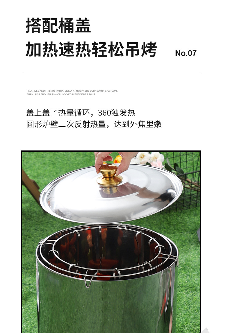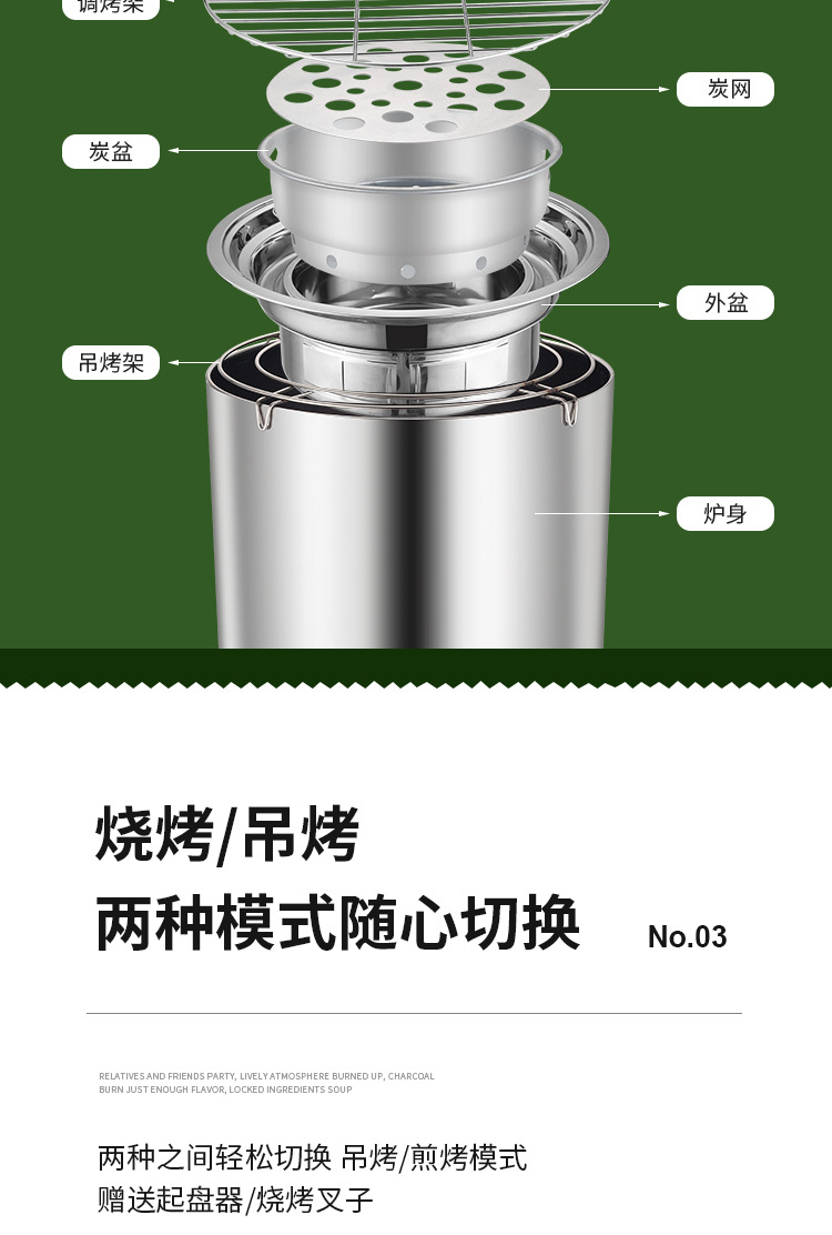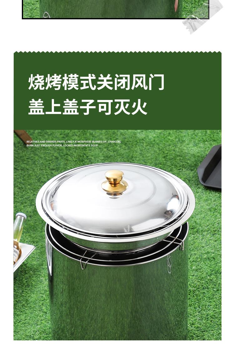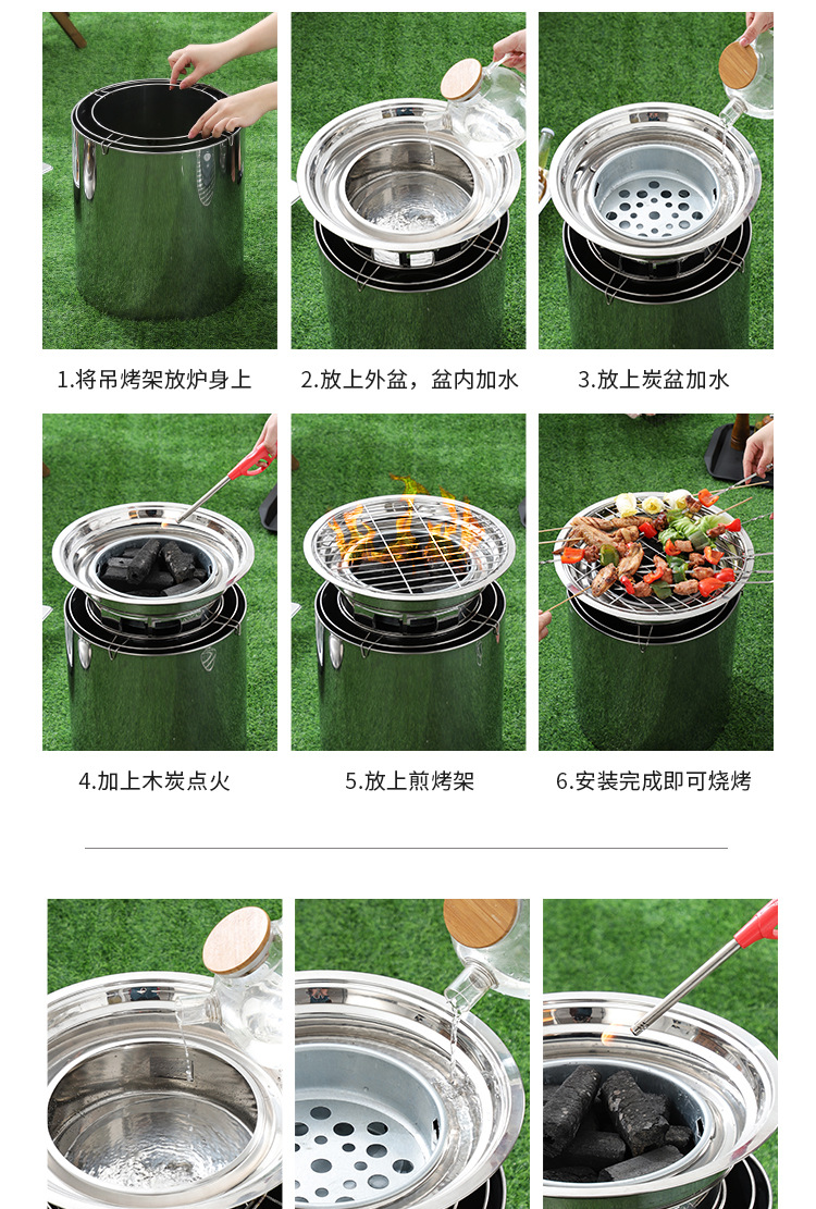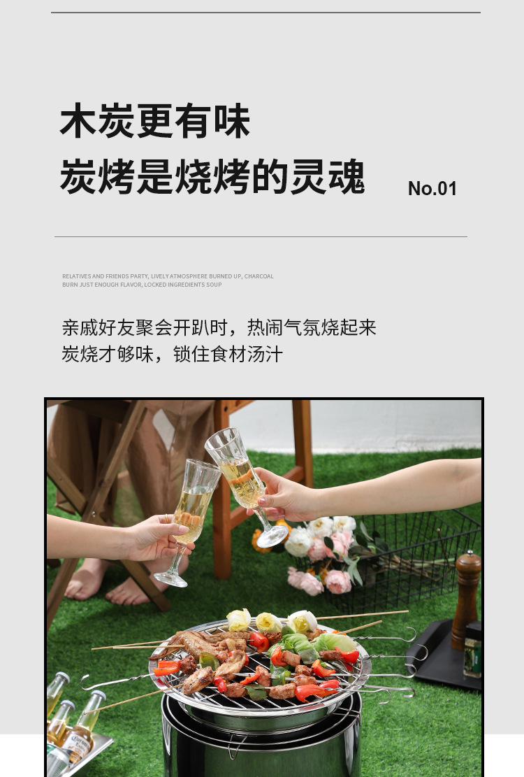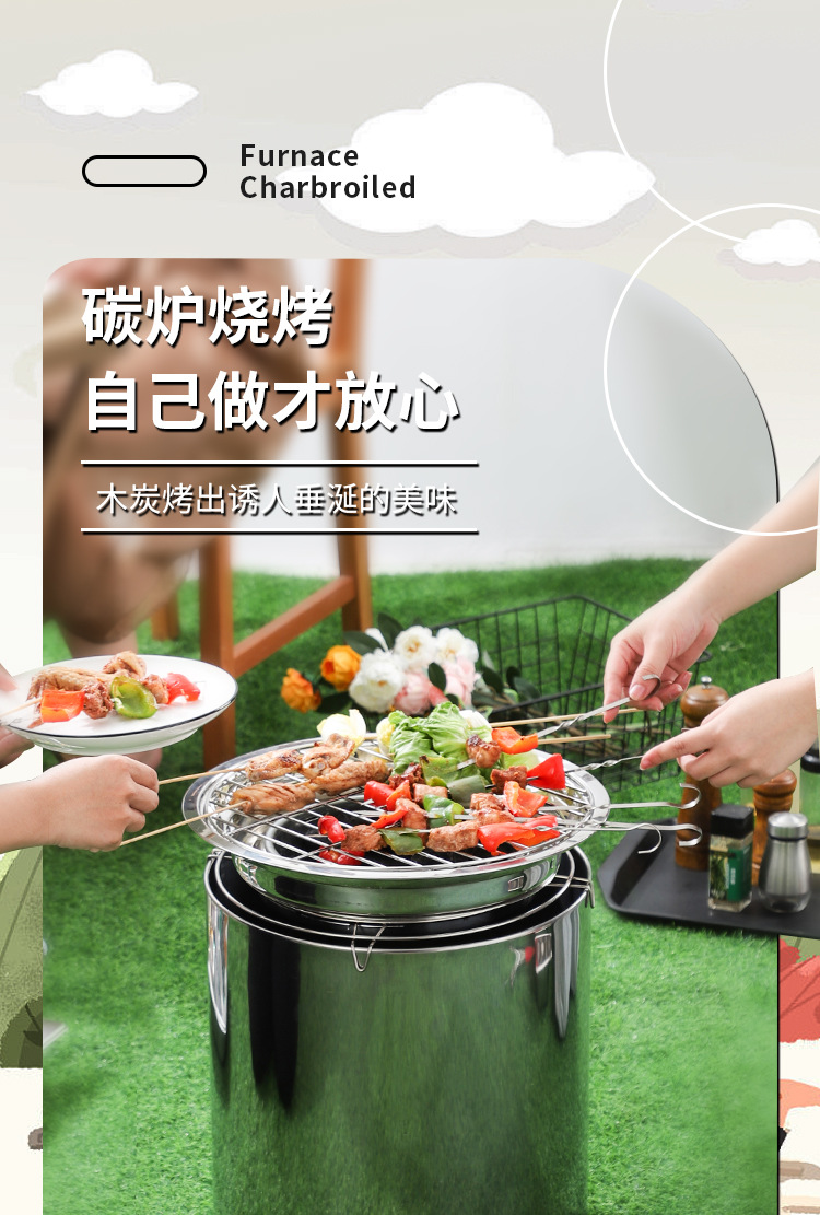 휴대용 라운드 바비큐 오븐 튀김 오븐 스테인레스 스틸 배럴 모양의 교수형 오븐 가정용 바베큐 오븐 야외 금연 탄소 오븐스토어 가기