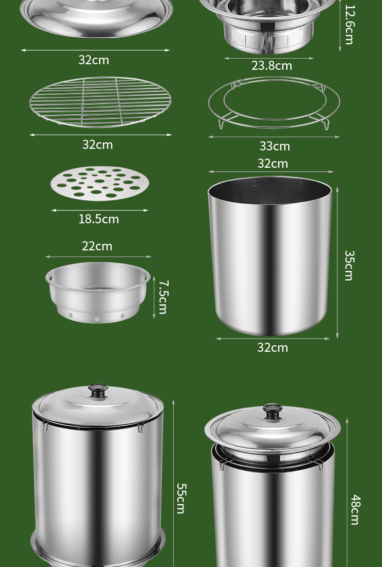 휴대용 라운드 바비큐 오븐 튀김 오븐 스테인레스 스틸 배럴 모양의 교수형 오븐 가정용 바베큐 오븐 야외 금연 탄소 오븐