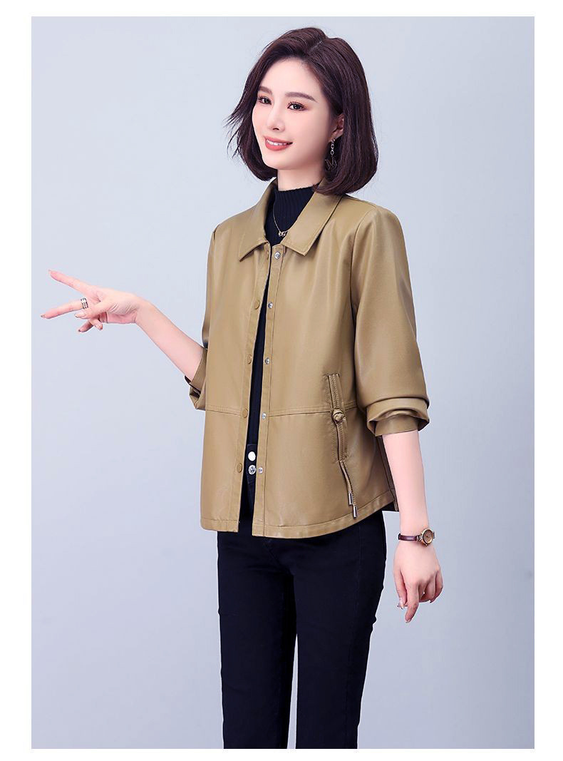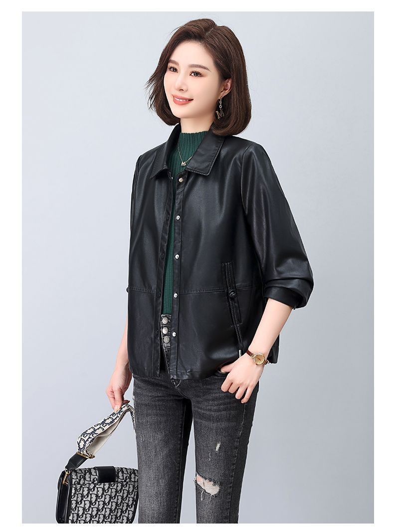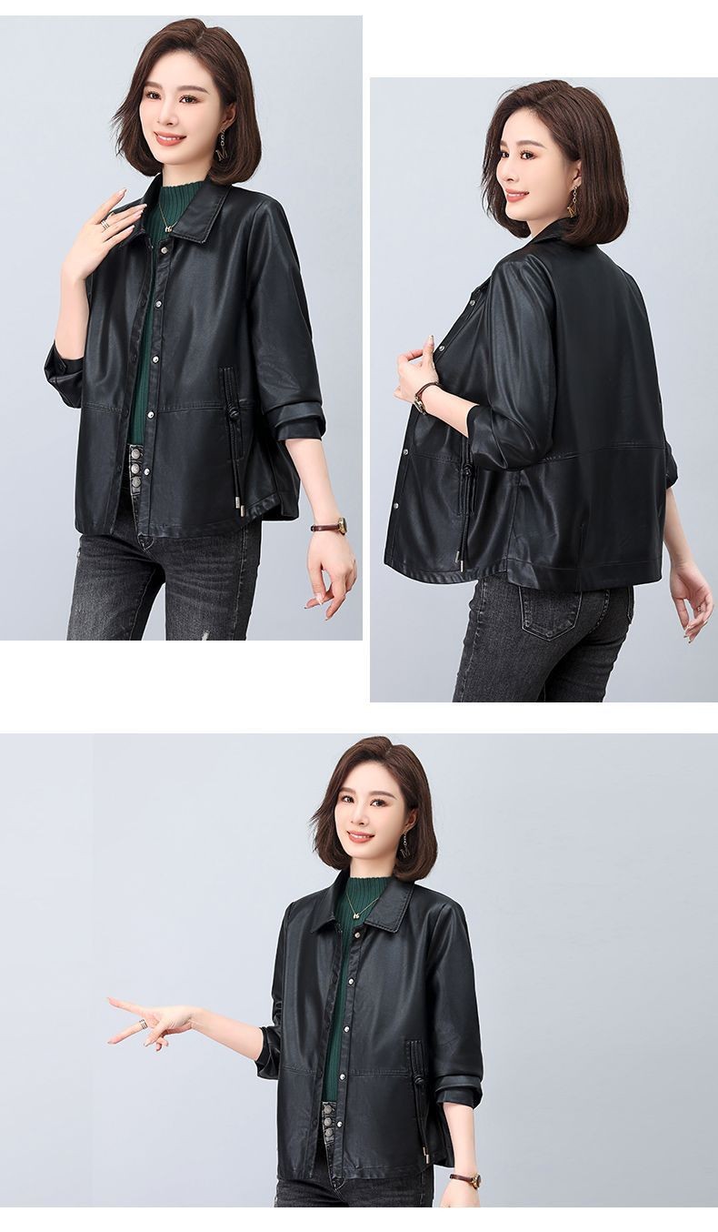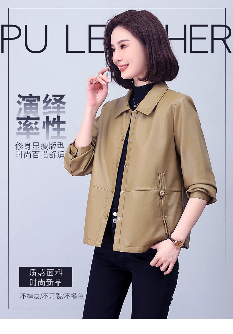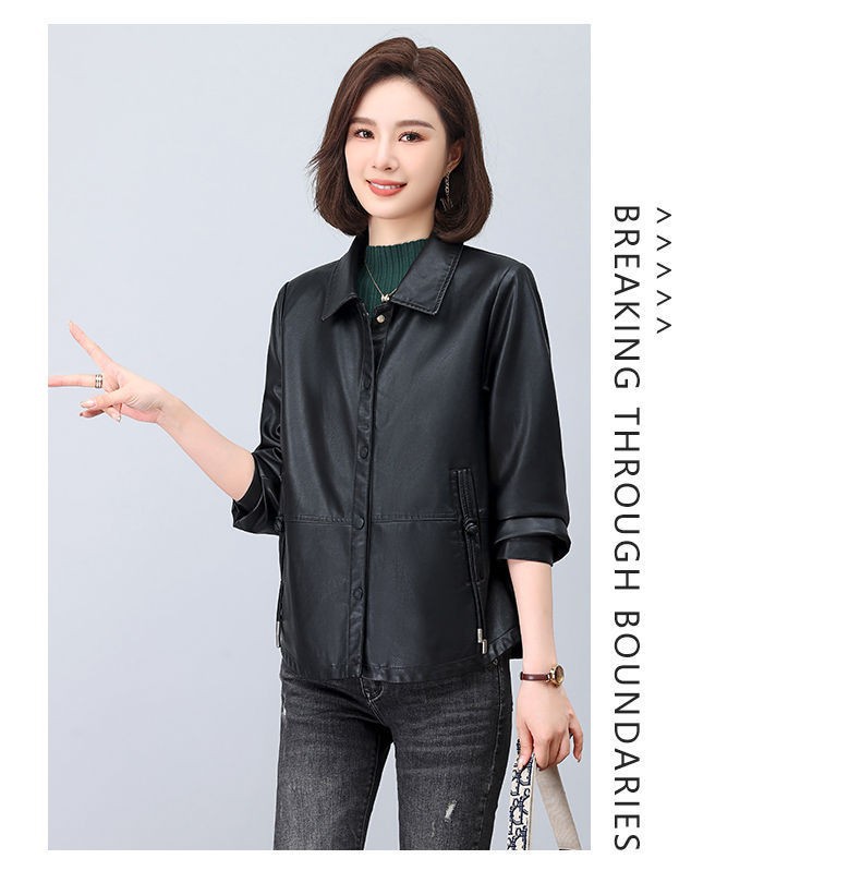 올넷 저렴한 가격 봄과 가을 얇은 유행 짧은 옷깃 PU 가죽 코트 여성 자켓 버튼 탑 옷스토어 가기