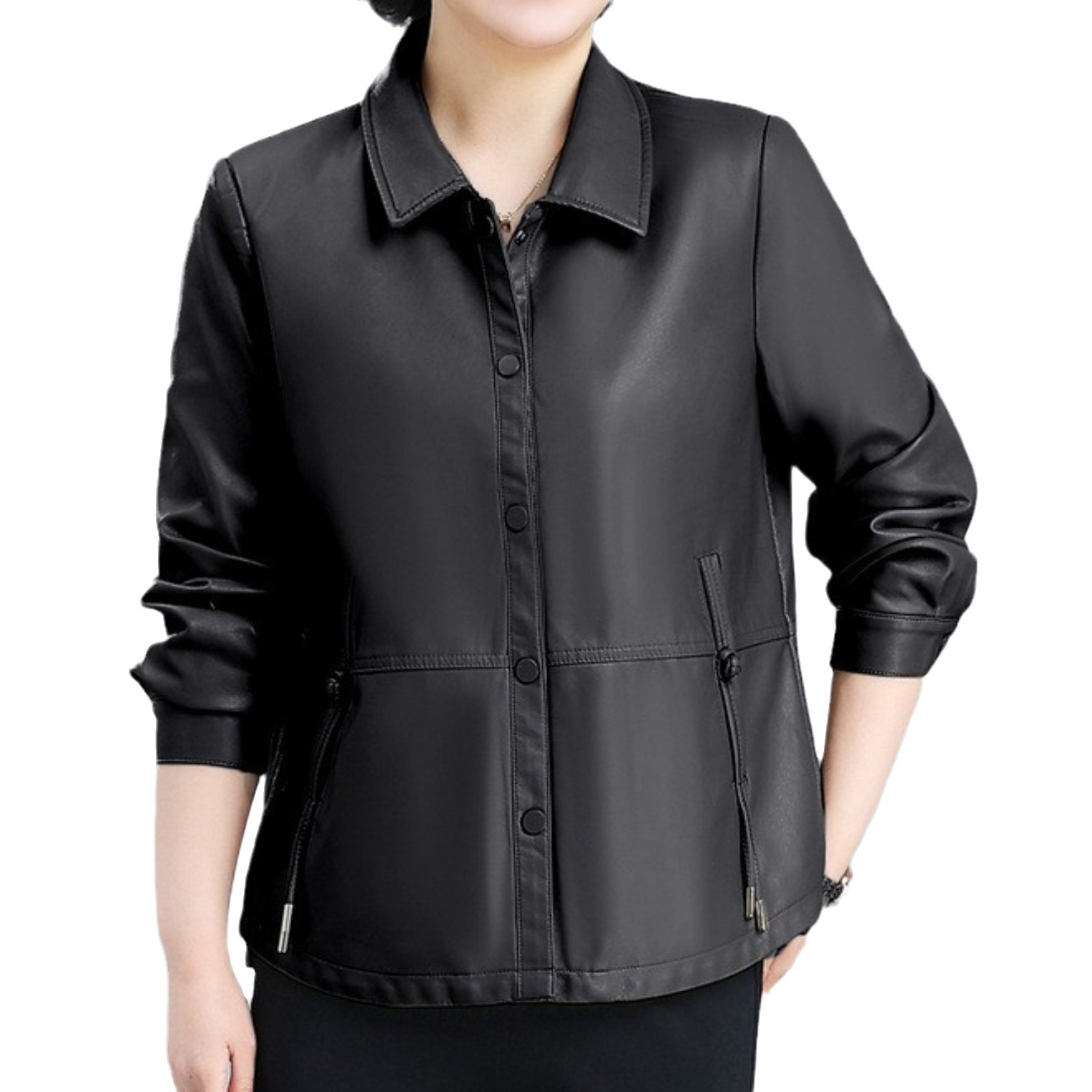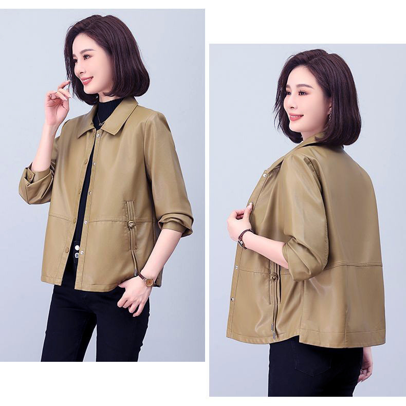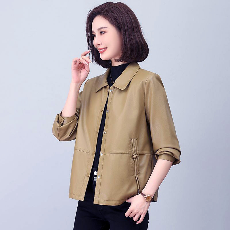 올넷 저렴한 가격 봄과 가을 얇은 유행 짧은 옷깃 PU 가죽 코트 여성 자켓 버튼 탑 옷