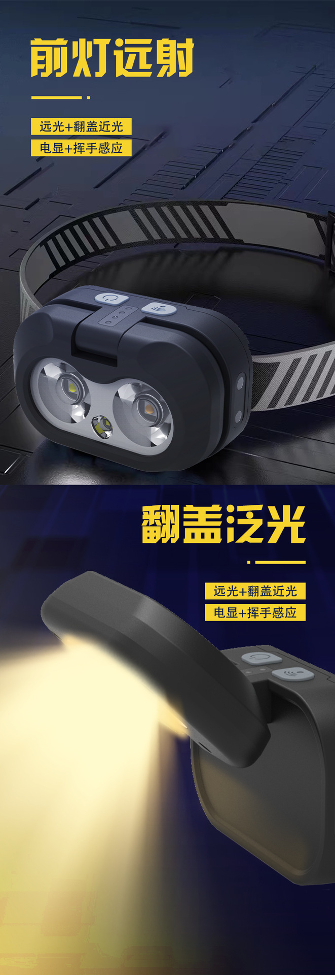 국경 간 새로운 플립 센서 헤드 램프 경량 헤드 마운트 조명 램프 야외 캠핑 충전식 슈퍼 밝은 헤드 램프