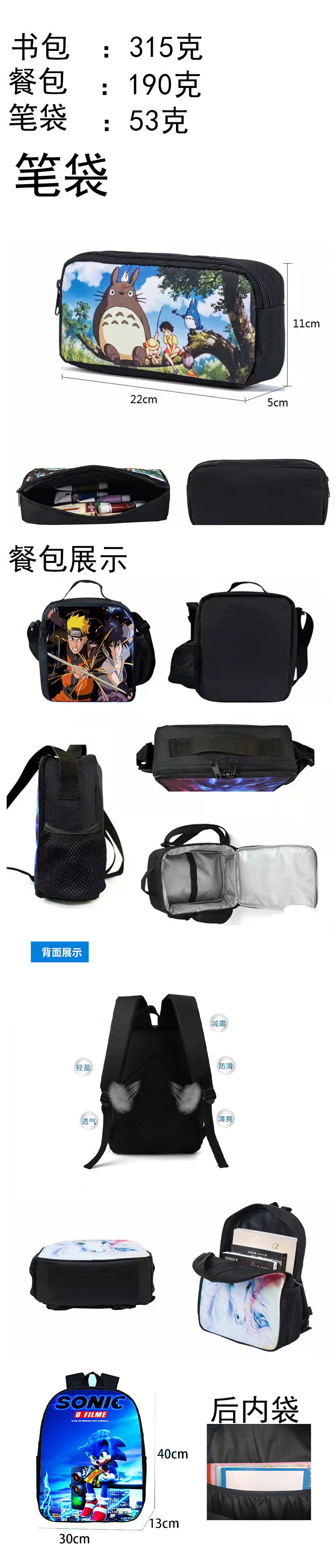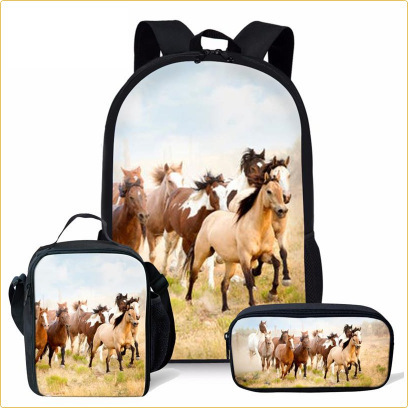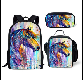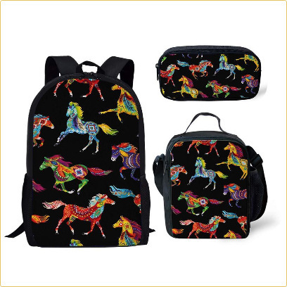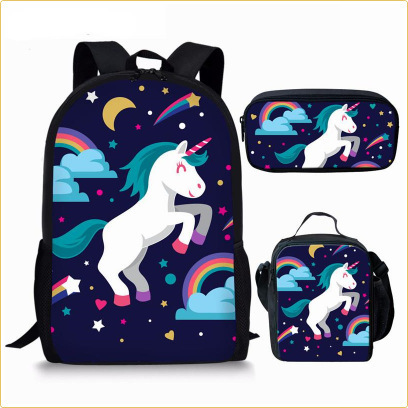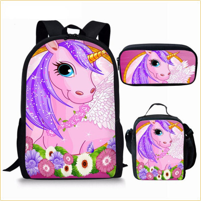 배낭 AliExpress 꽃 말 스타일 어린이 Schoolbag 백팩 식사 가방 연필 가방 3 피스 세트 유럽과 미국스토어 가기