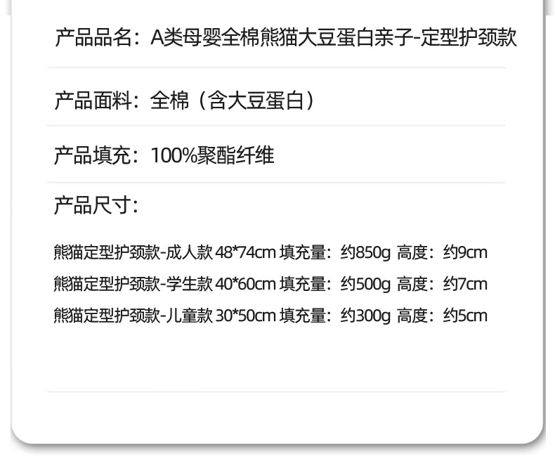 클래스 A 엄마와 아이 면 팬더 베개 간장 단백질 부모-아이 베개 시리즈 모양의 목 보호 어린이 성인 베개