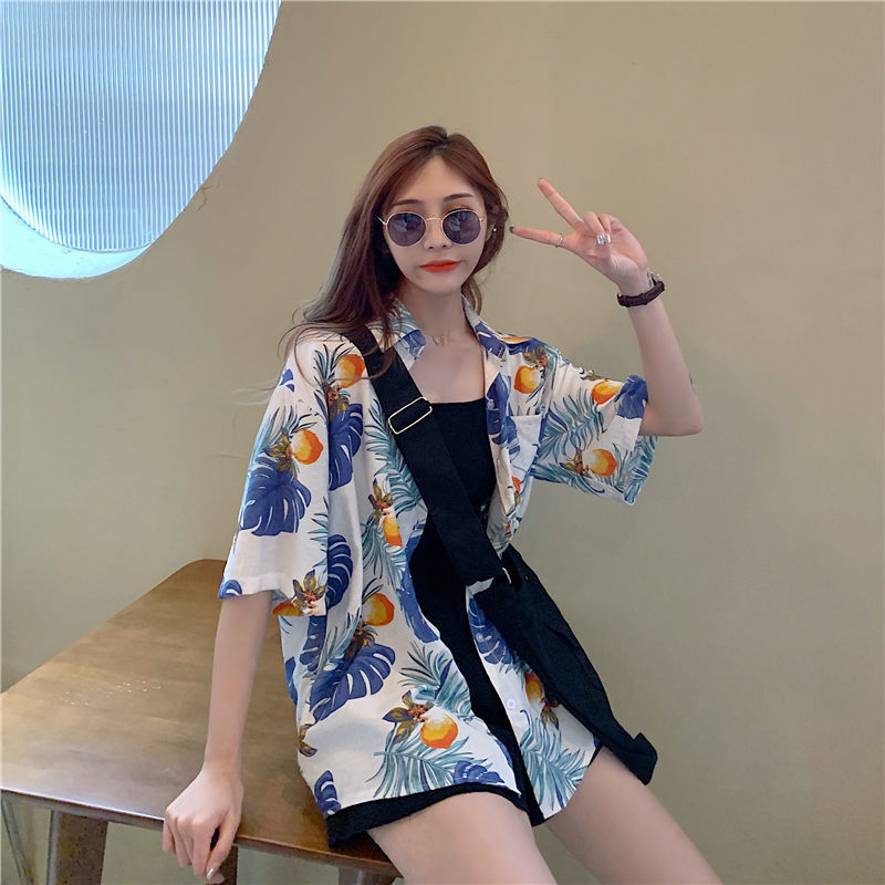해변 휴가를위한 여성용 반팔 꽃 셔츠, 하와이 슈퍼 요정 서양식 해변 꽃 무늬 셔츠, 복고풍 홍콩 스타일 남자 친구 스타일 탑