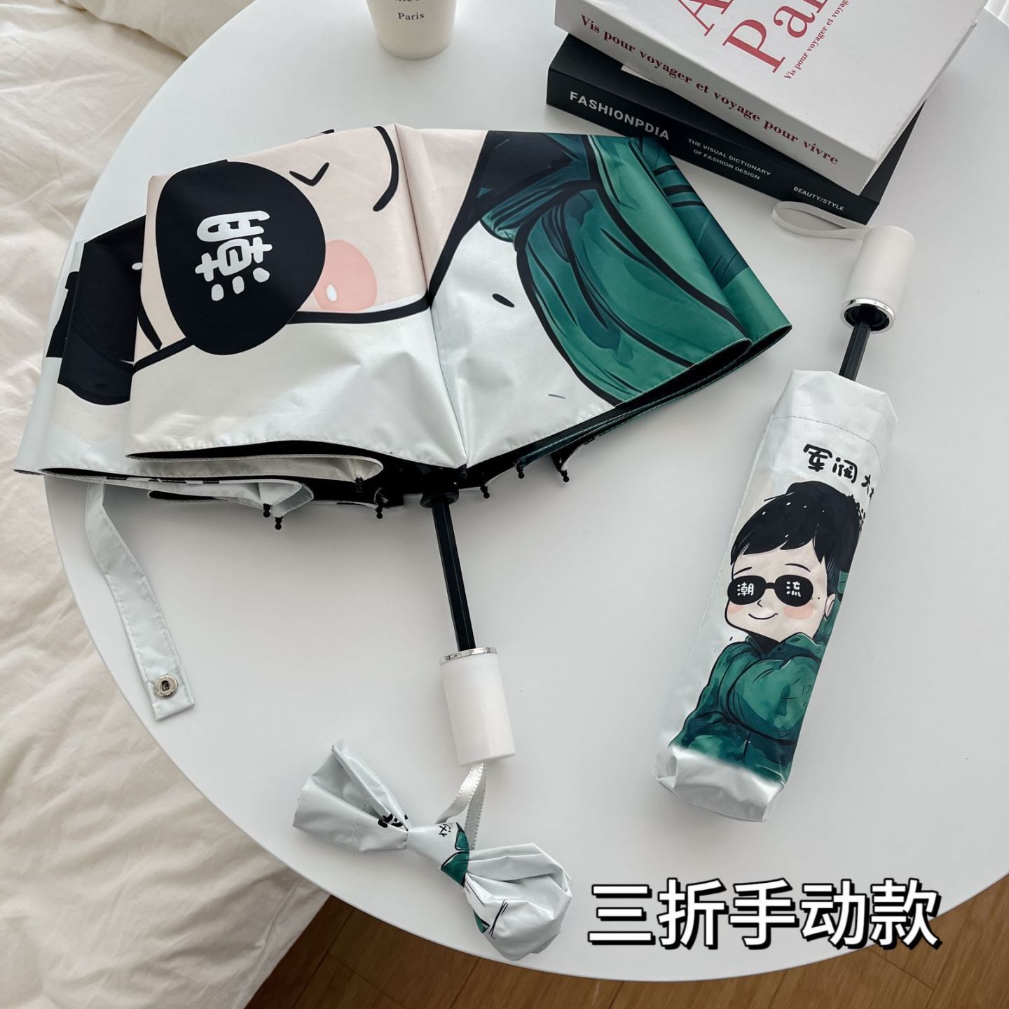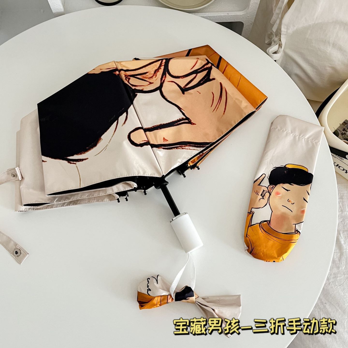 에 낙서 스타일 자동 태양 우산 여성 태양 보호 UV 비 이중 사용 작은 휴대용 미니 우산 남성스토어 가기