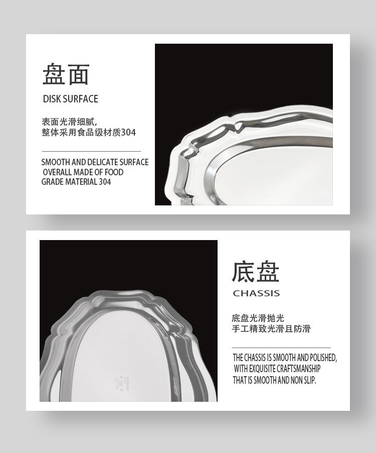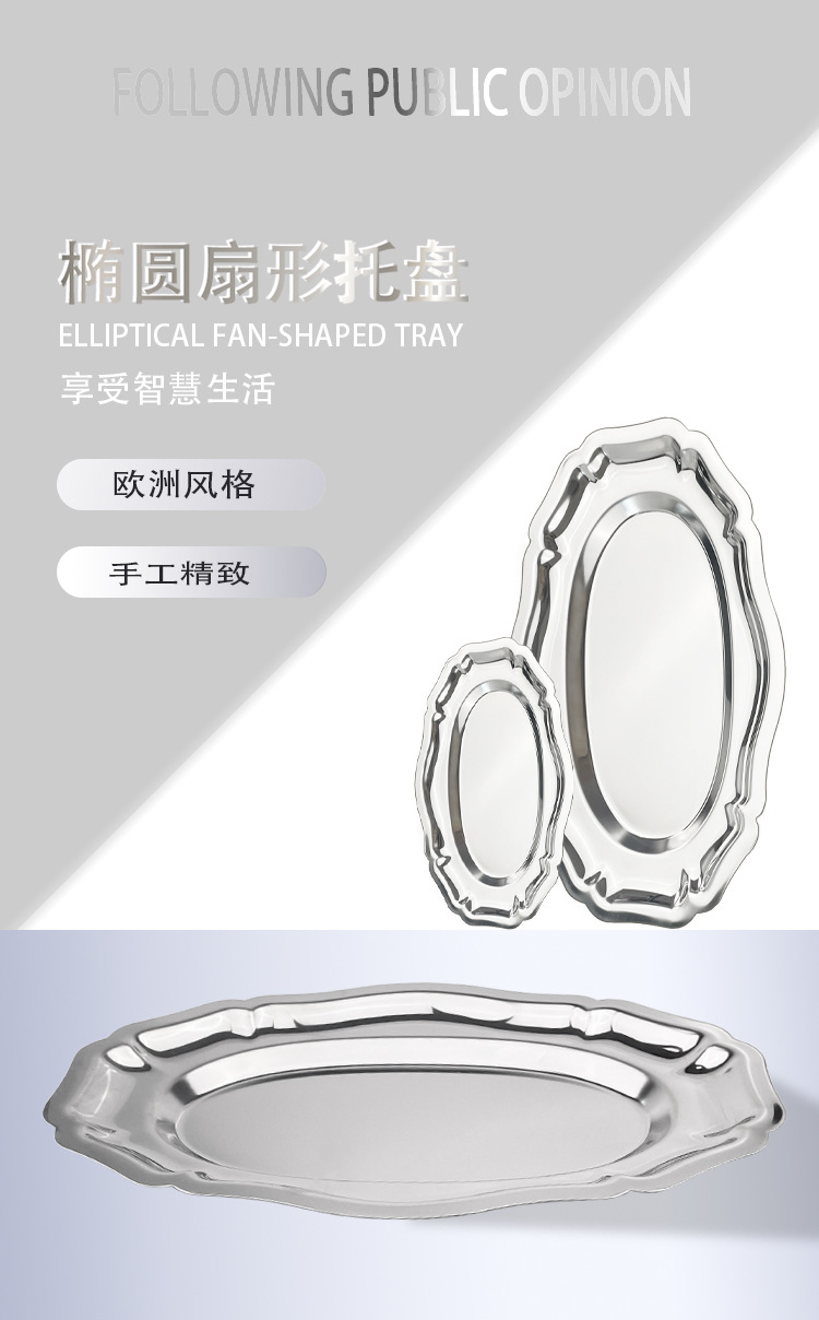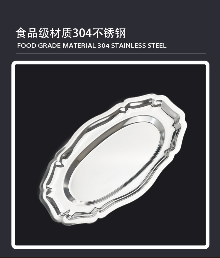 304 스테인레스 스틸 타원형 트레이, 식품 등급 접시 분지, 두껍게 심화