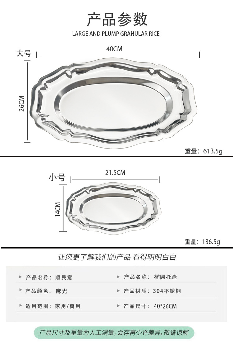 304 스테인레스 스틸 타원형 트레이, 식품 등급 접시 분지, 두껍게 심화스토어 가기