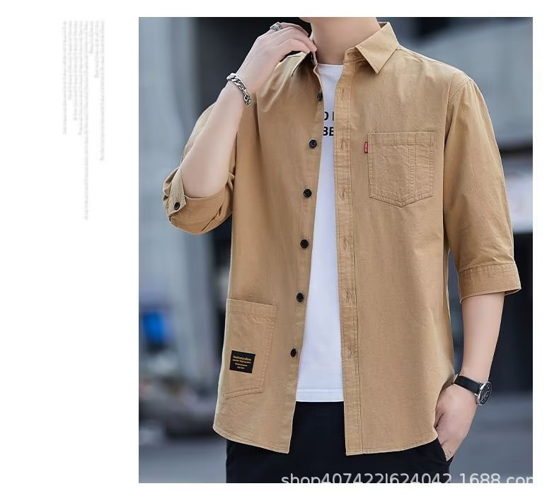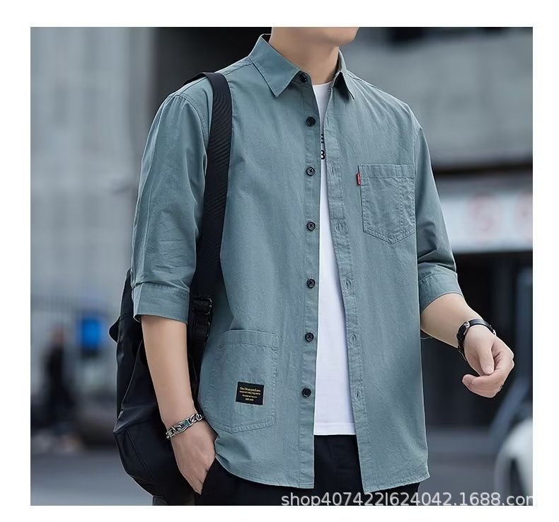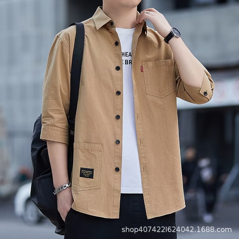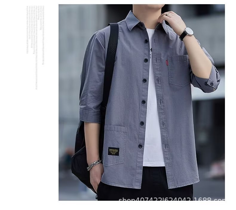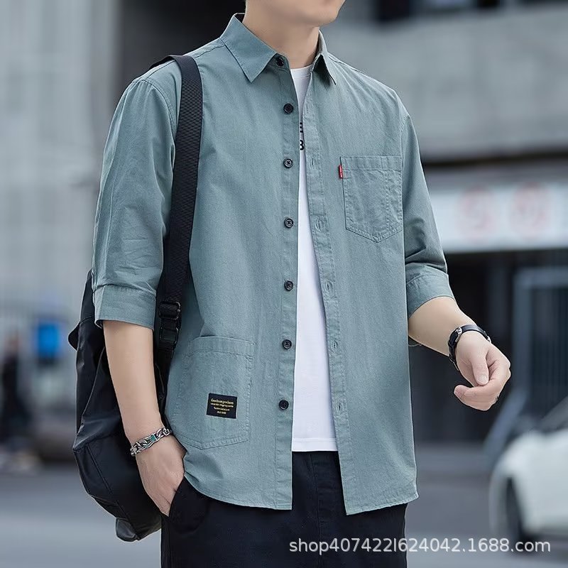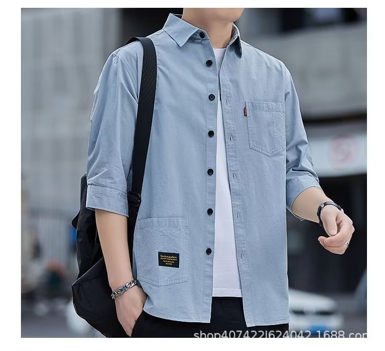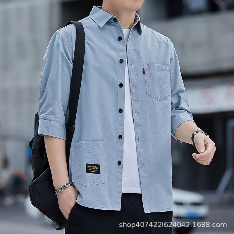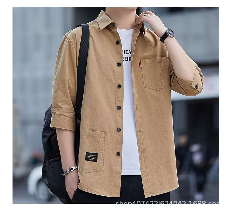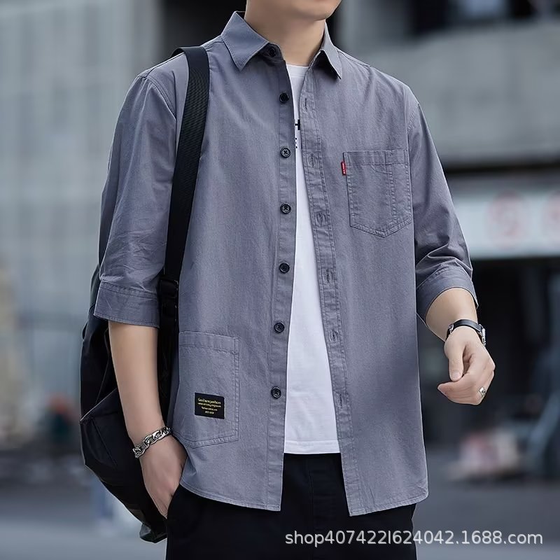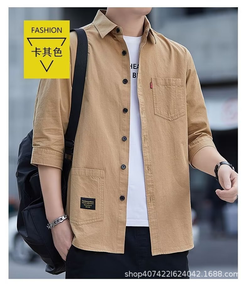 원피스 배달 긴팔 셔츠 남성 작업복 코트 여름 트렌디 한 느슨한 캐주얼 셔츠 남성 캐주얼 홍콩 스타일스토어 가기