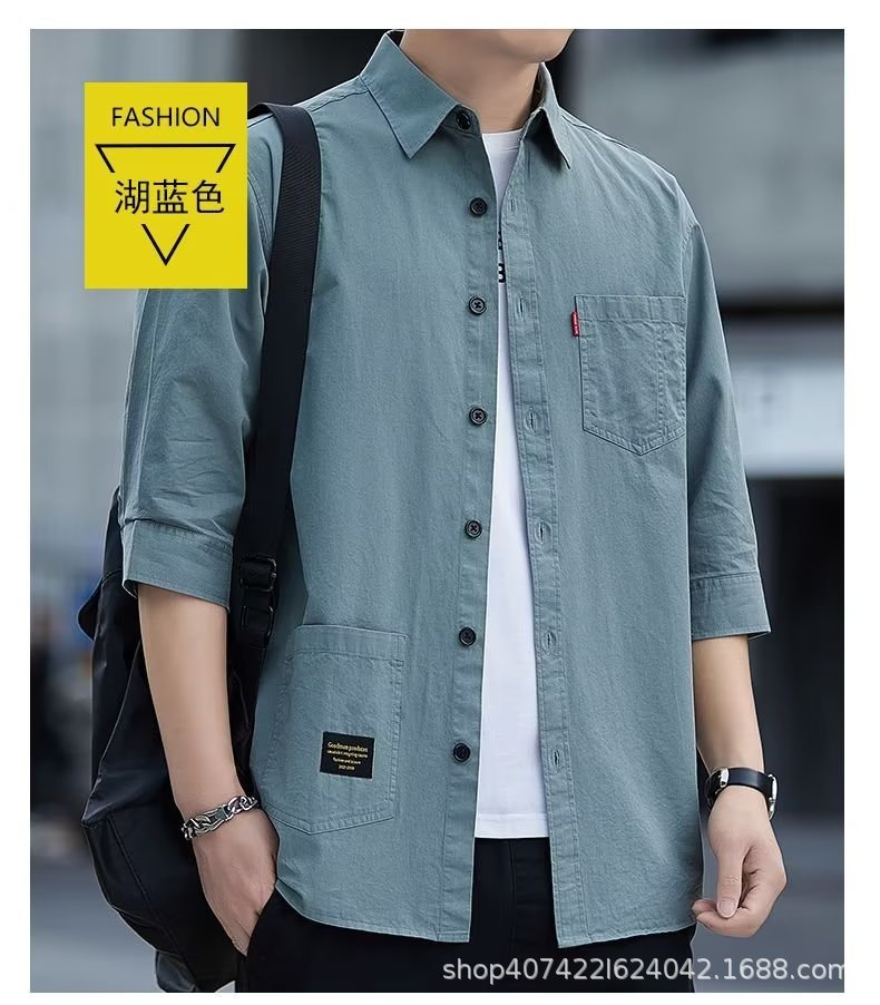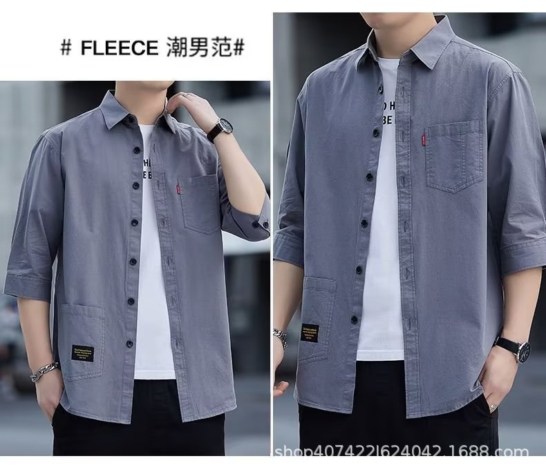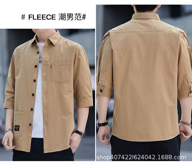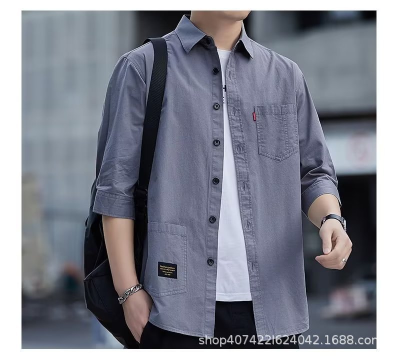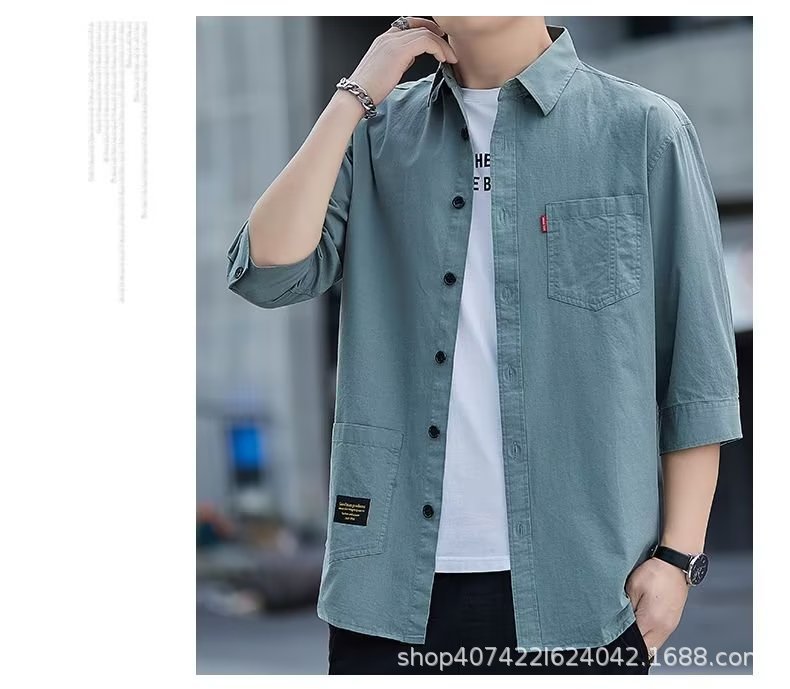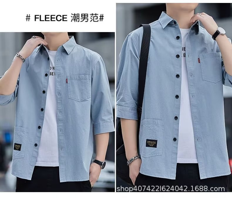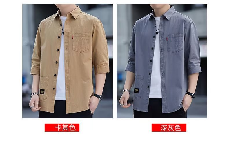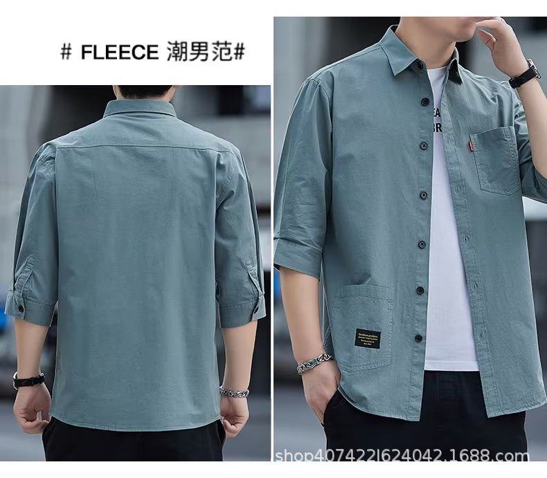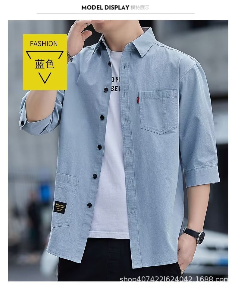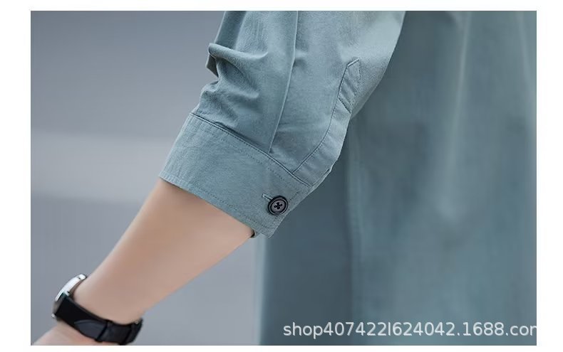 원피스 배달 긴팔 셔츠 남성 작업복 코트 여름 트렌디 한 느슨한 캐주얼 셔츠 남성 캐주얼 홍콩 스타일스토어 가기