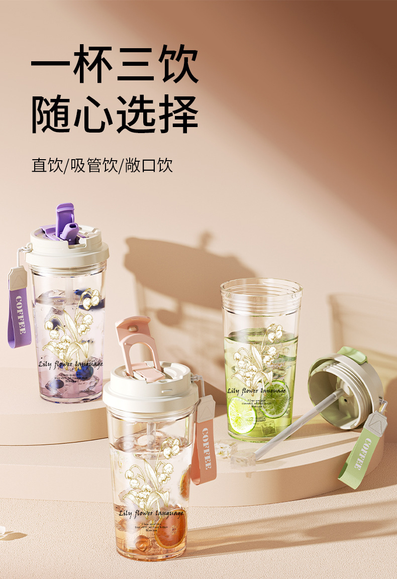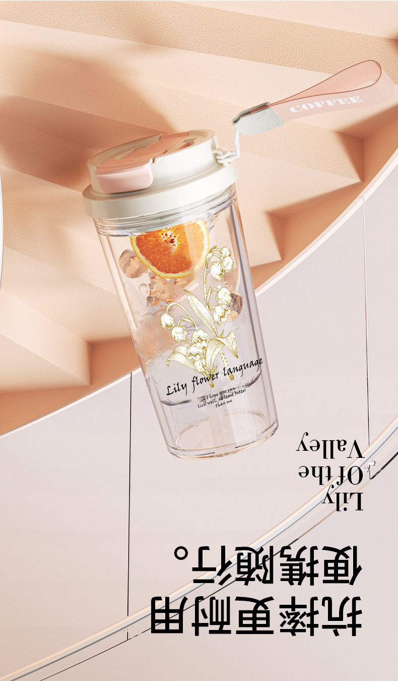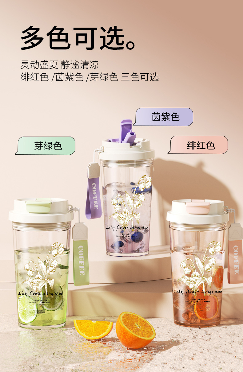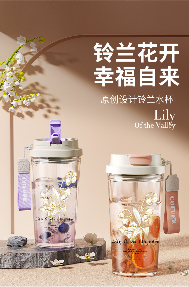 Linglan 워터 컵 2024 새로운 소녀 높은 모양의 밀짚 컵 휴대용 플라스틱 컵 여름 더블 음료 컵