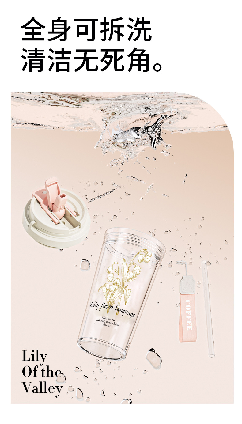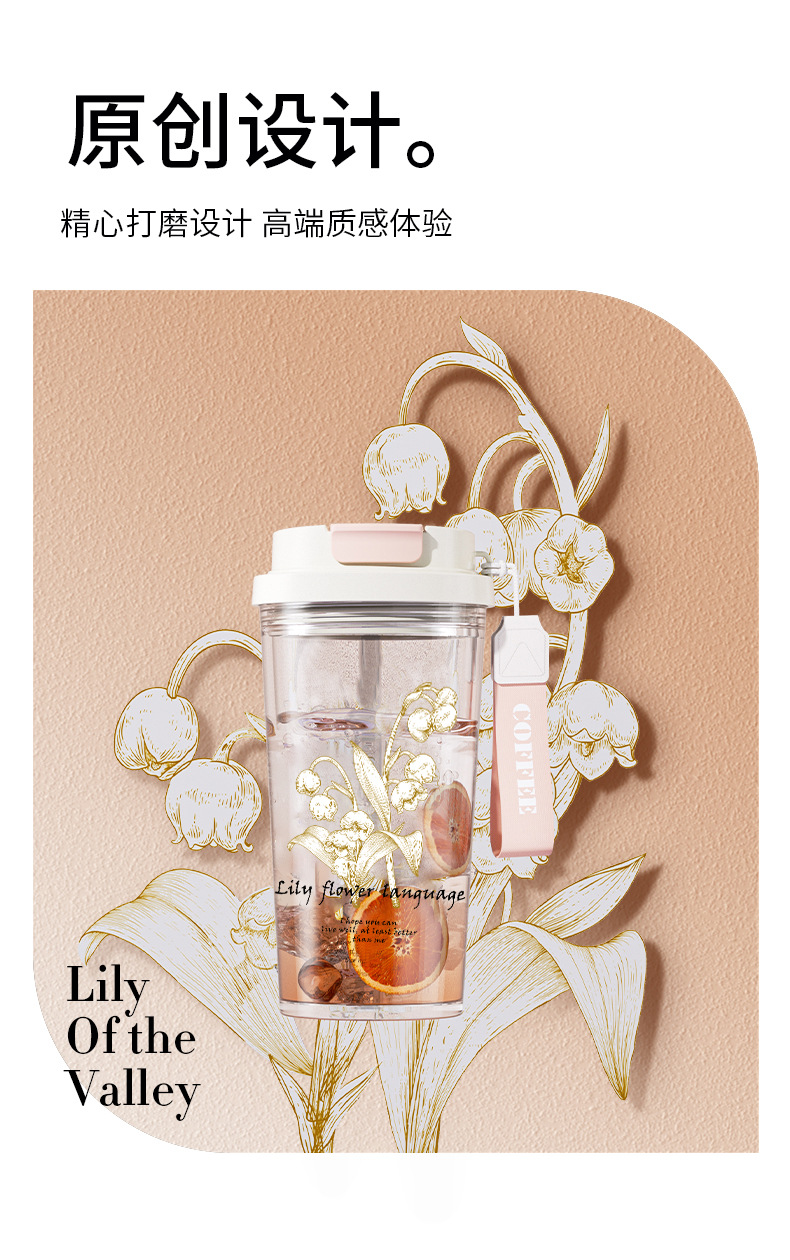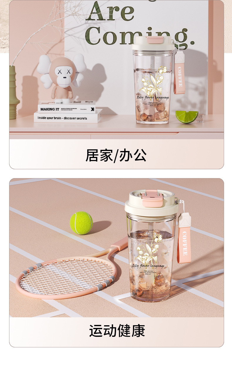 Linglan 워터 컵 2024 새로운 소녀 높은 모양의 밀짚 컵 휴대용 플라스틱 컵 여름 더블 음료 컵
