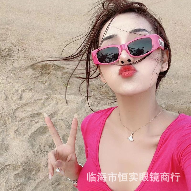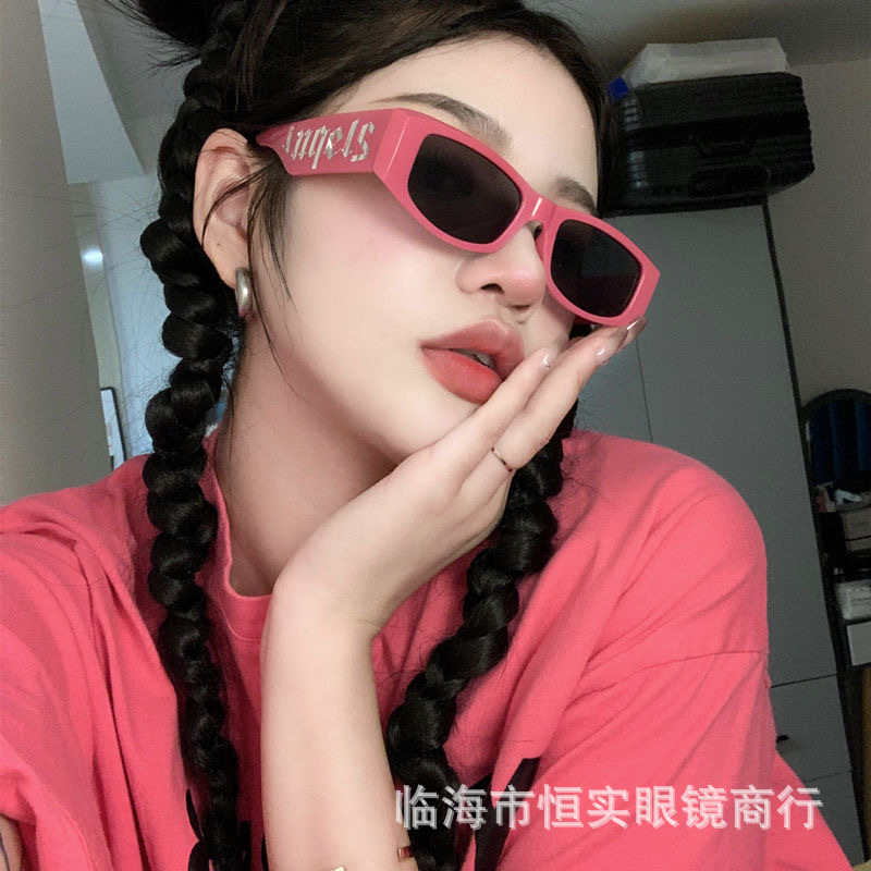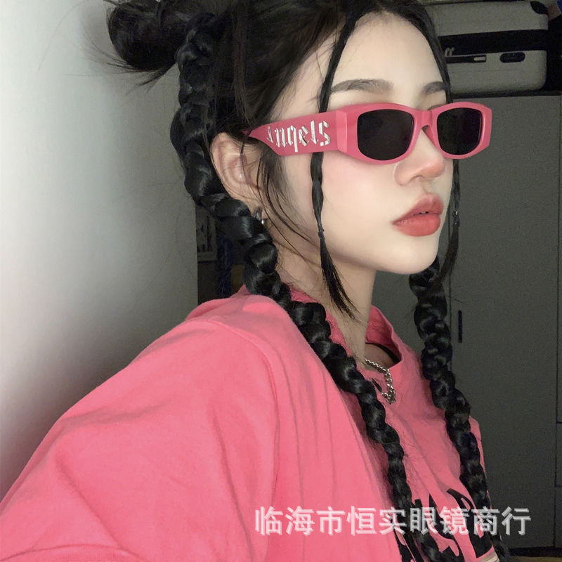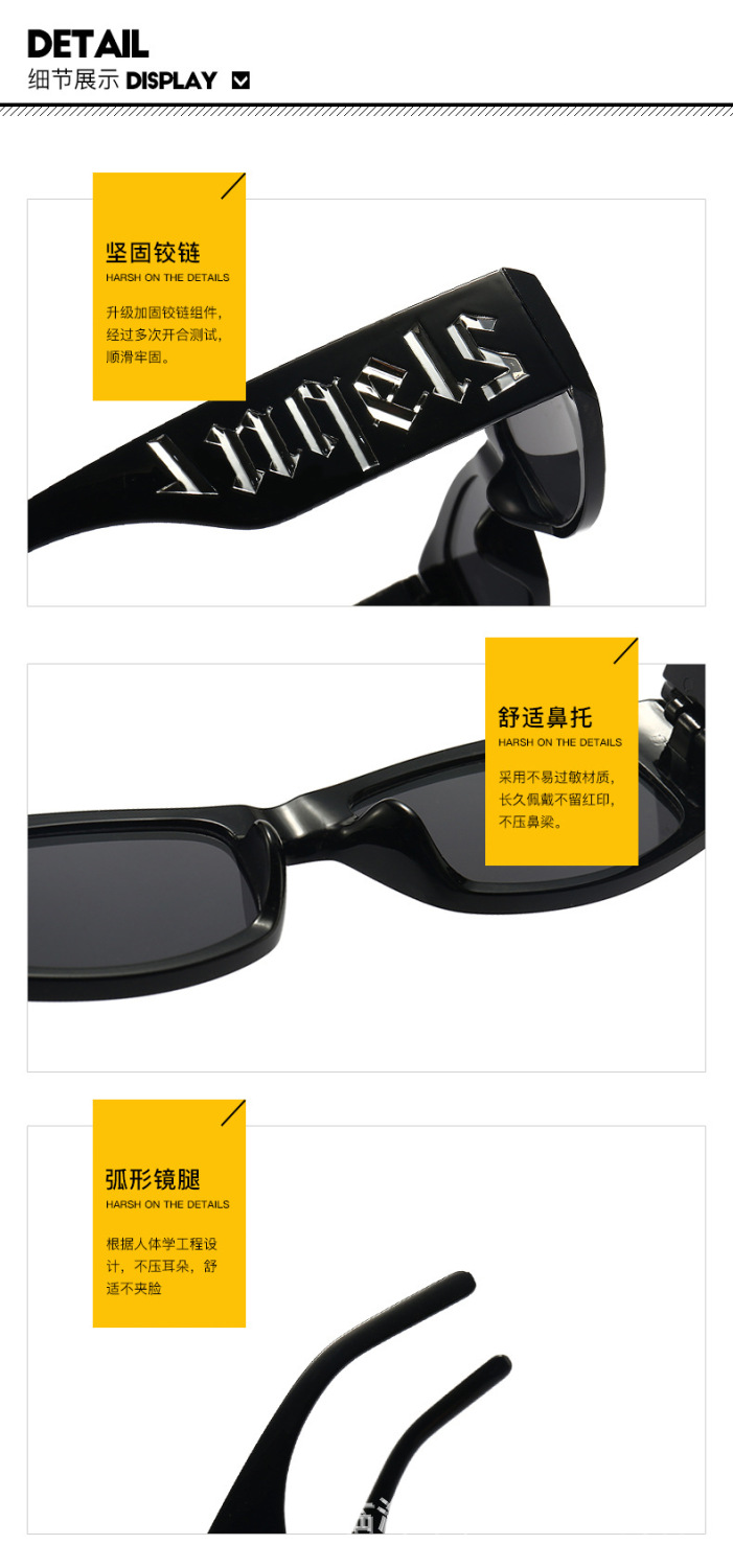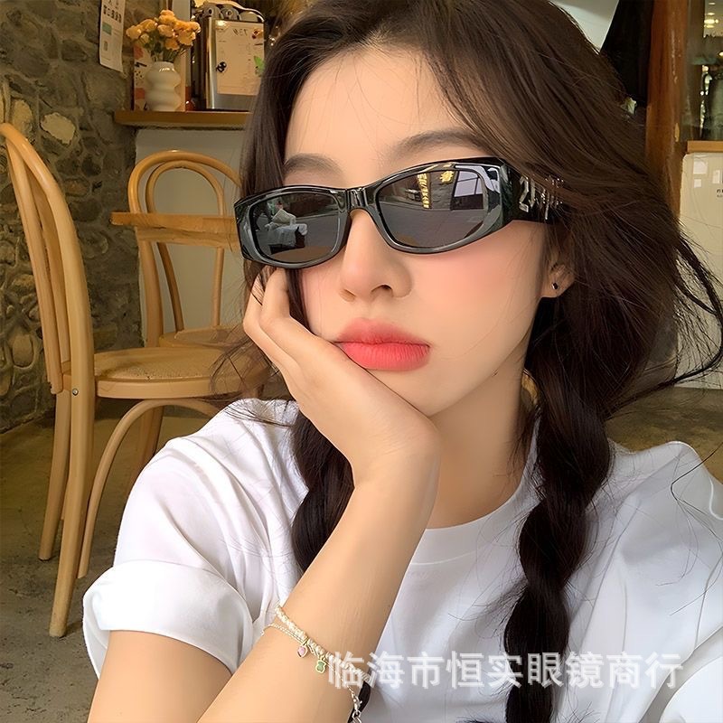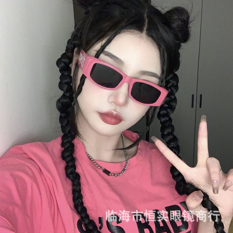 新款跨境朋克字母时尚太阳镜长方形复古嘻哈风高级感辣妹墨镜女