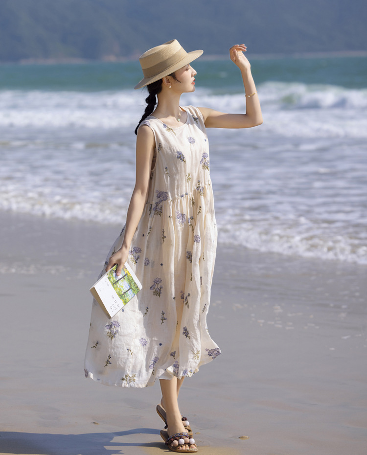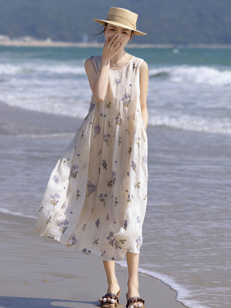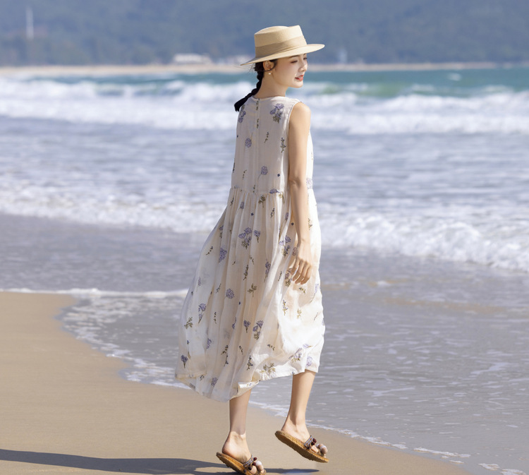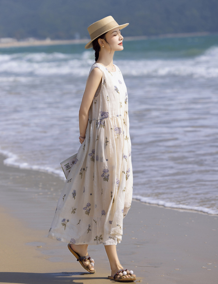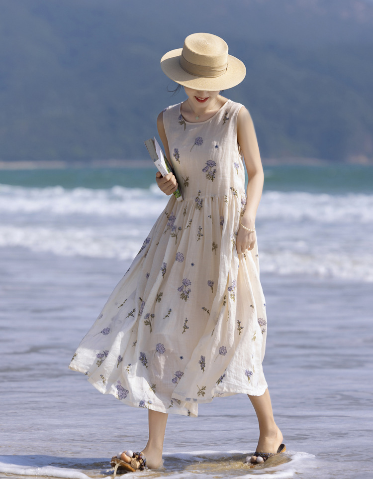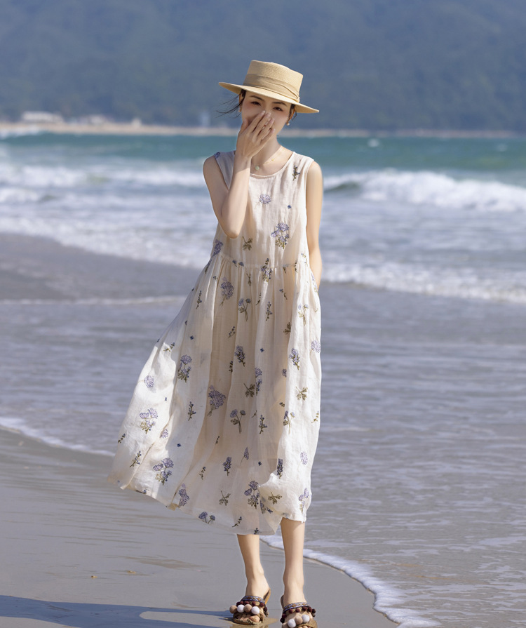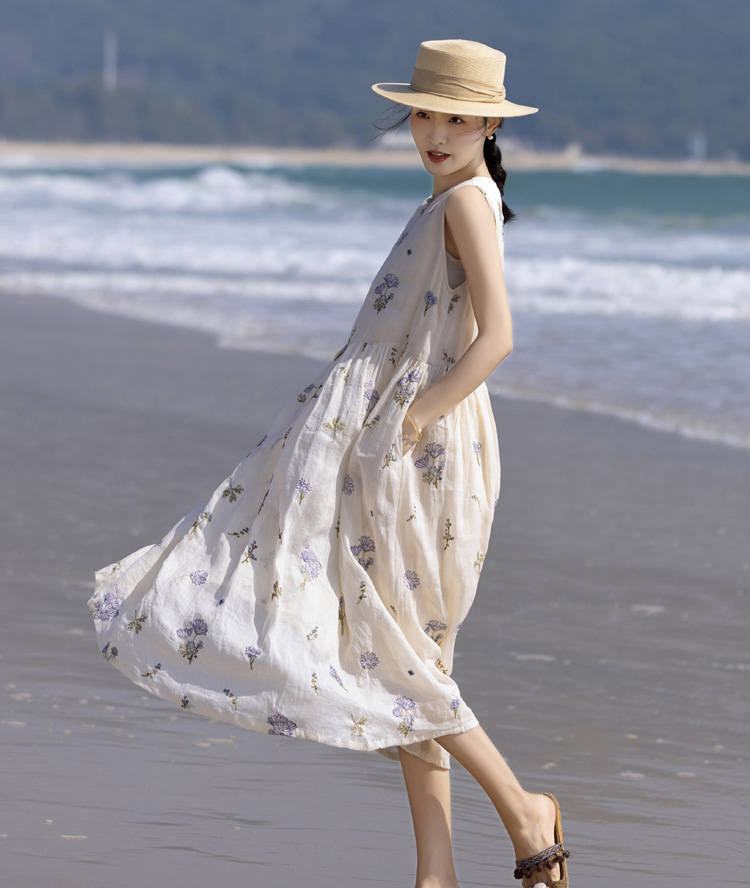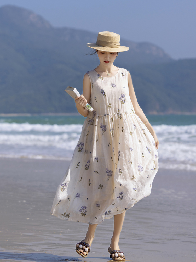 2025년 여름 신상 하이카운트 모시 원단에 풍부한 자수가 들어간 허리를 슬림하게 잡아주는 화이트 요정풍 로브 드레스