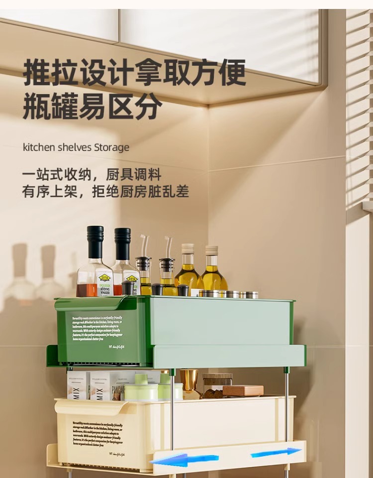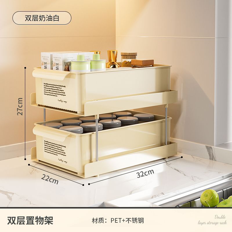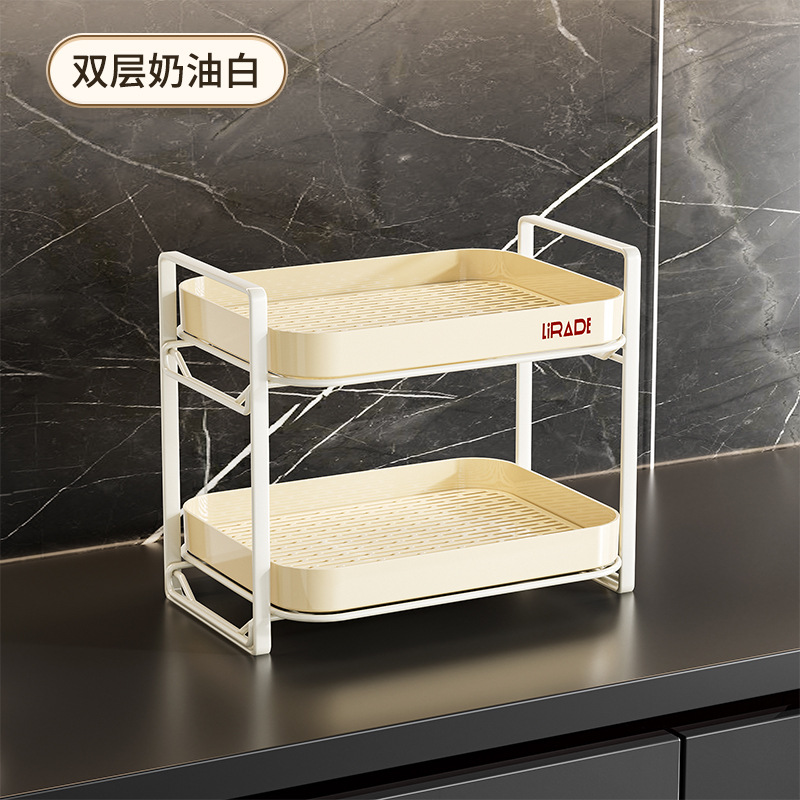 새로운 주방 스토리지 랙 조미료 항아리 조미료 컵 스토리지 랙 더블 레이어 주방 데스크탑 스토리지 랙스토어 가기