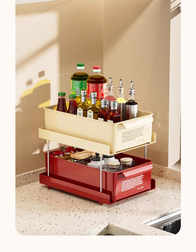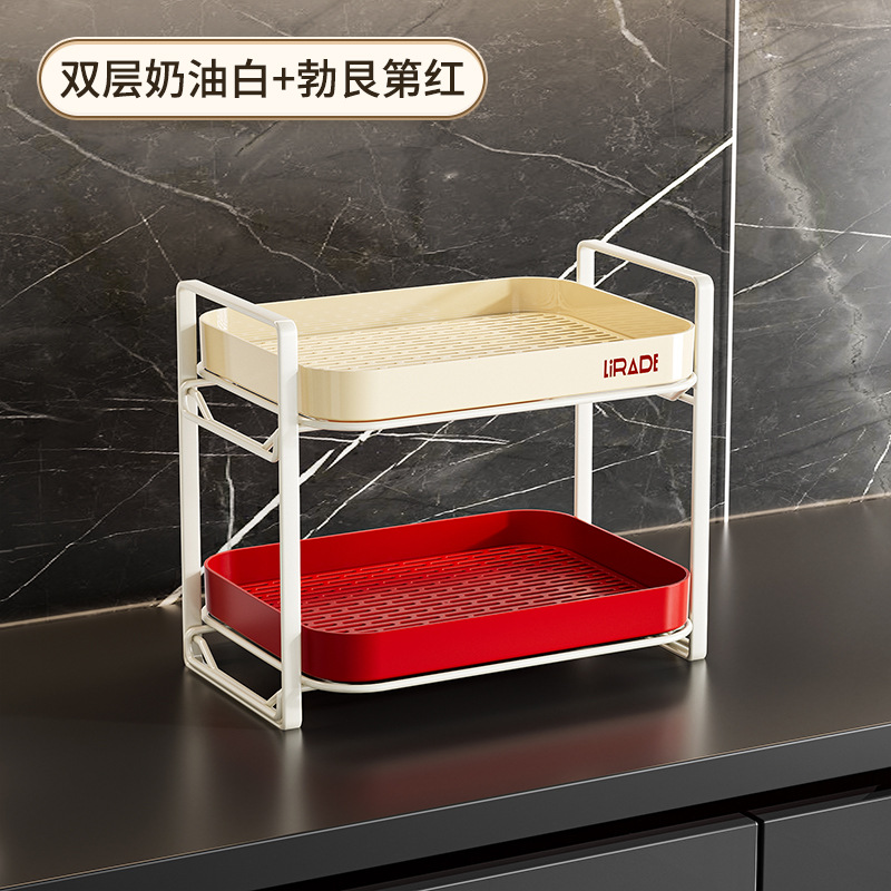 새로운 주방 스토리지 랙 조미료 항아리 조미료 컵 스토리지 랙 더블 레이어 주방 데스크탑 스토리지 랙