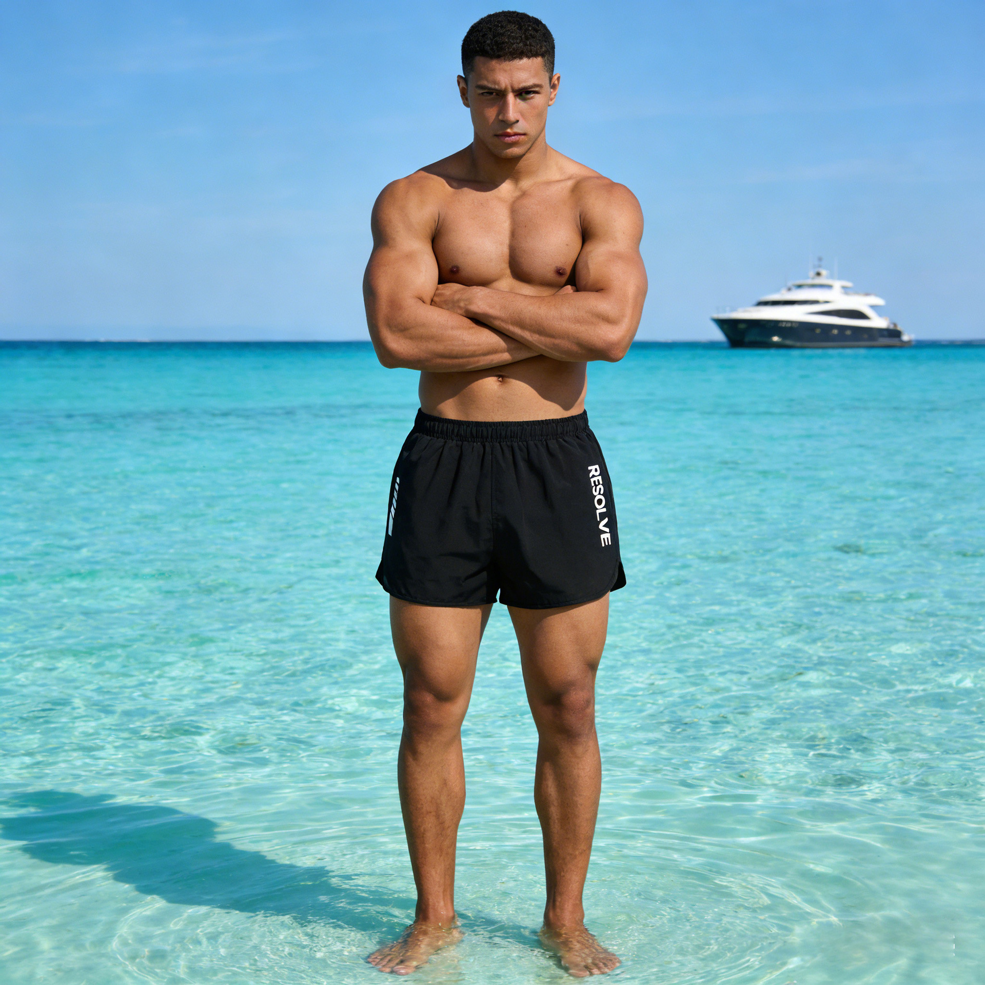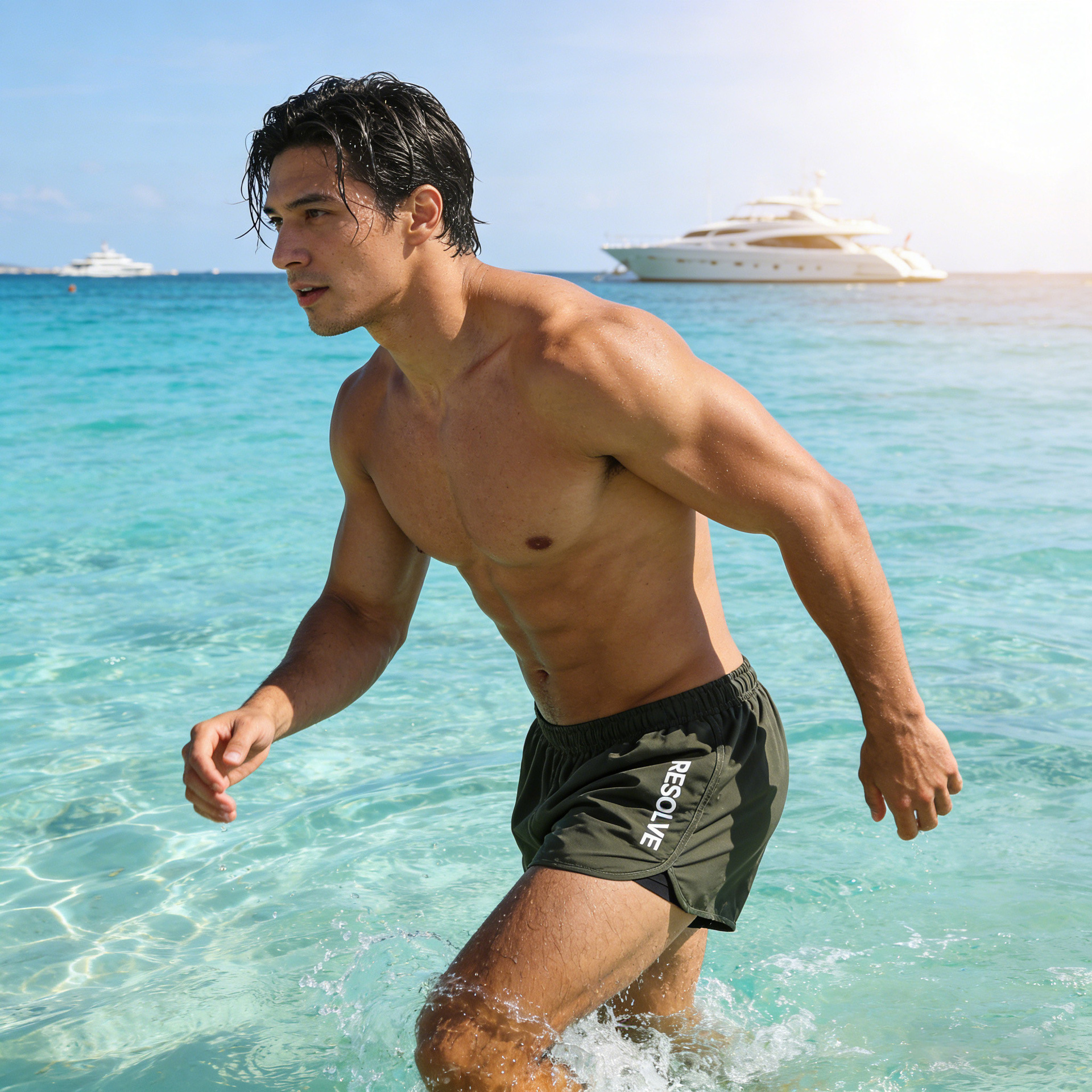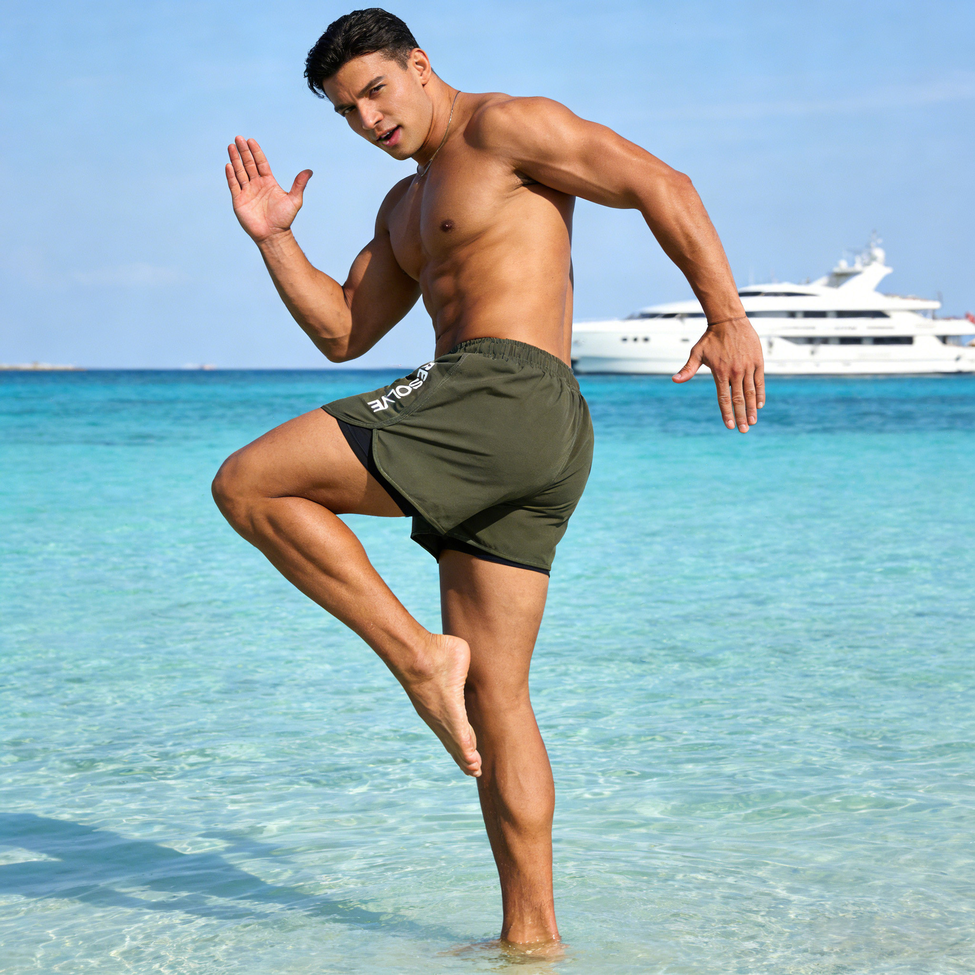 새로운 남성용 수영복, 개성있는 프린트, 휴양지 스타일, 웨이더블, 속건성, 비치 팬츠, 사이즈 조절 가능, 이중 레이어로 당황 방지