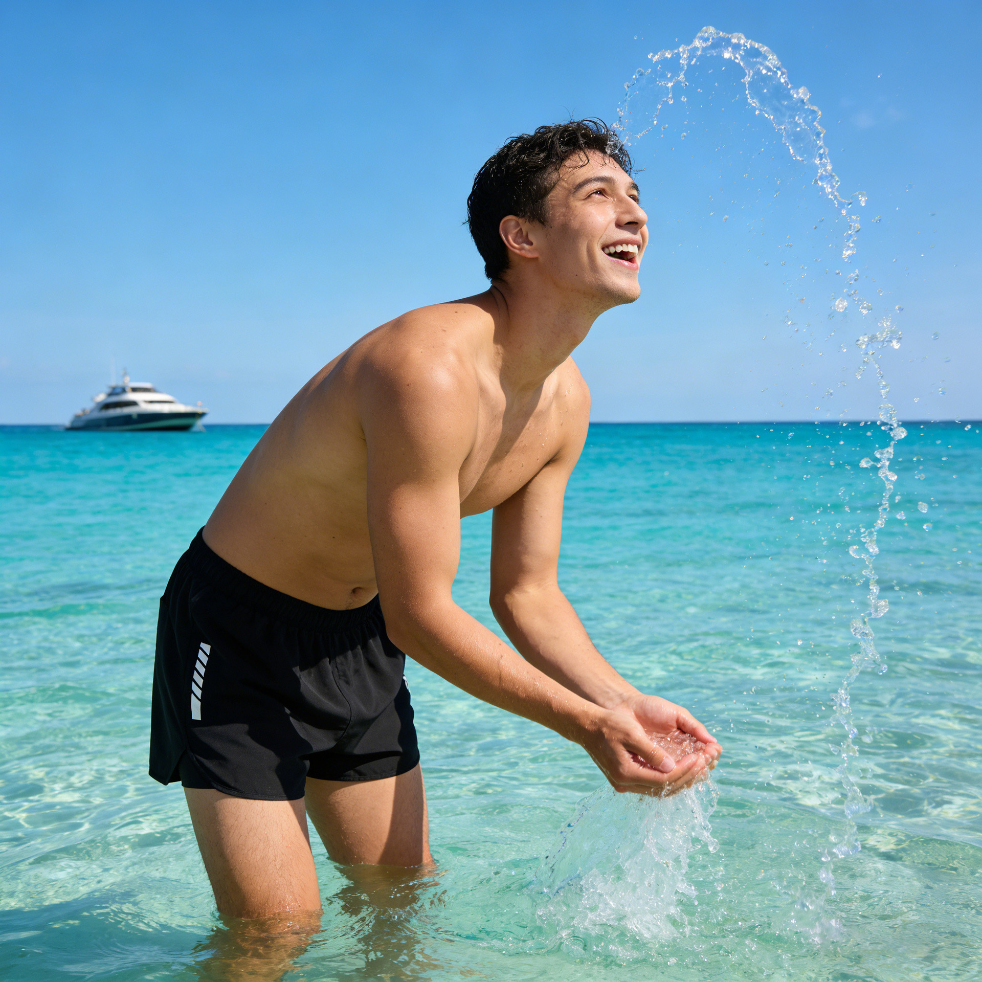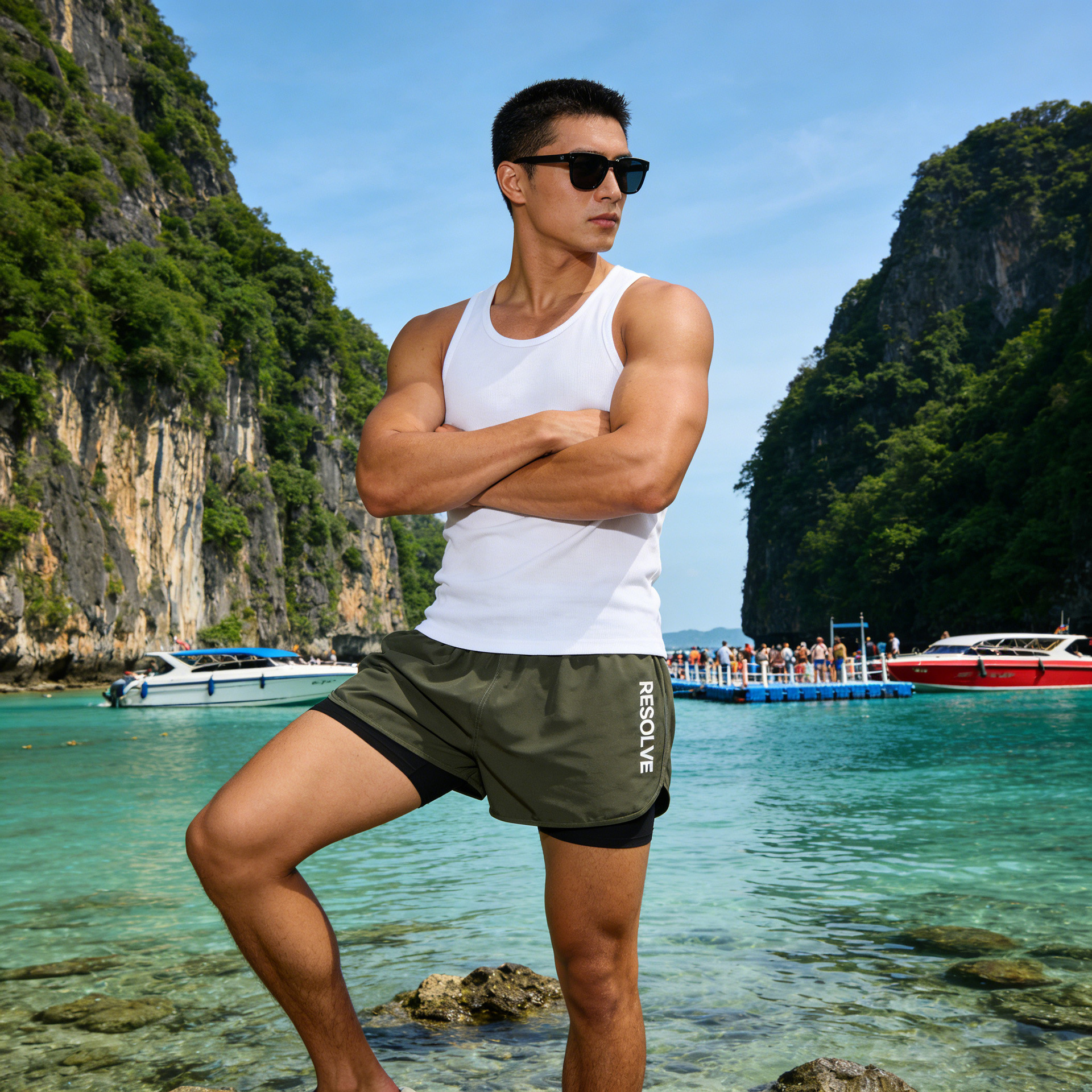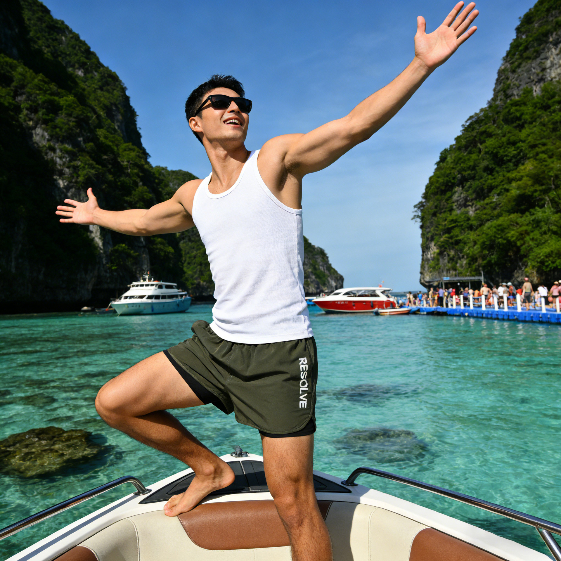 새로운 남성용 수영복, 개성있는 프린트, 휴양지 스타일, 웨이더블, 속건성, 비치 팬츠, 사이즈 조절 가능, 이중 레이어로 당황 방지