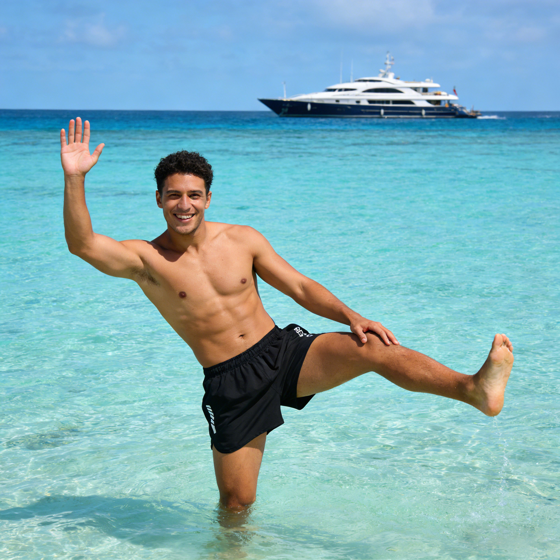 새로운 남성용 수영복, 개성있는 프린트, 휴양지 스타일, 웨이더블, 속건성, 비치 팬츠, 사이즈 조절 가능, 이중 레이어로 당황 방지스토어 가기
