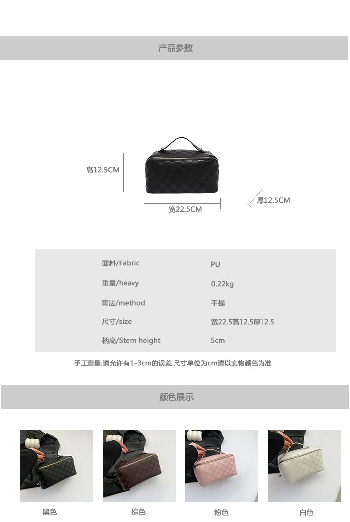 화장품 가방 고급 바둑판 방수 여행 화장품 보관 상자 휴대용 대용량 세척 가방