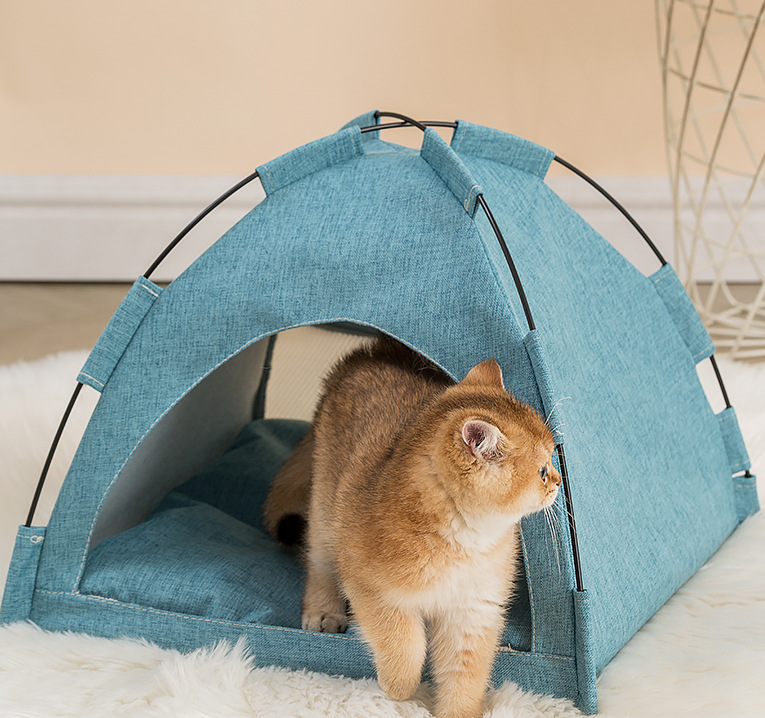 Kennel 고양이 둥지 애완 동물 둥지 좌석 쿠션 텐트 상쾌한 통기성 반 폐쇄 사계절, 중형 및 소형 고양이 테디 공급스토어 가기