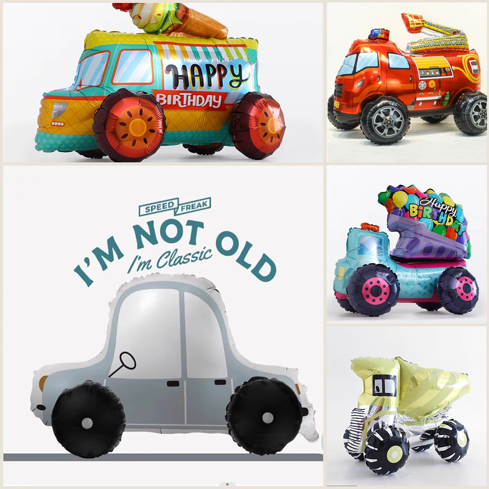 3D 3 차원 조립 엔지니어링 차량 경찰차 믹서 소방차 소년 어린이 파티 레이아웃 장식 알루미늄 필름 풍선