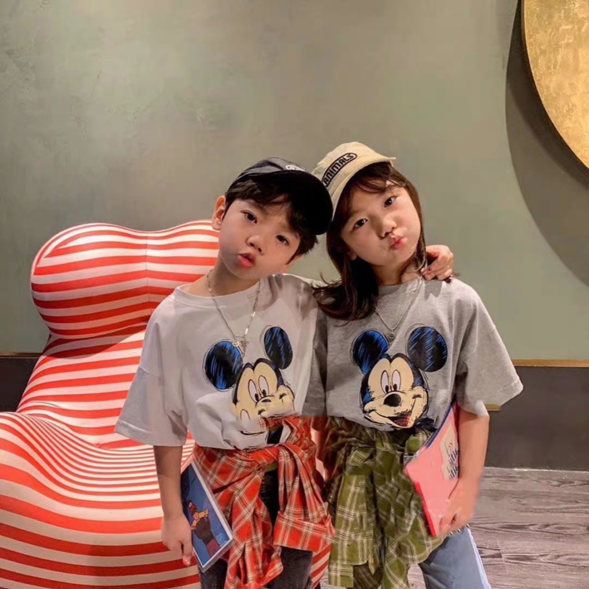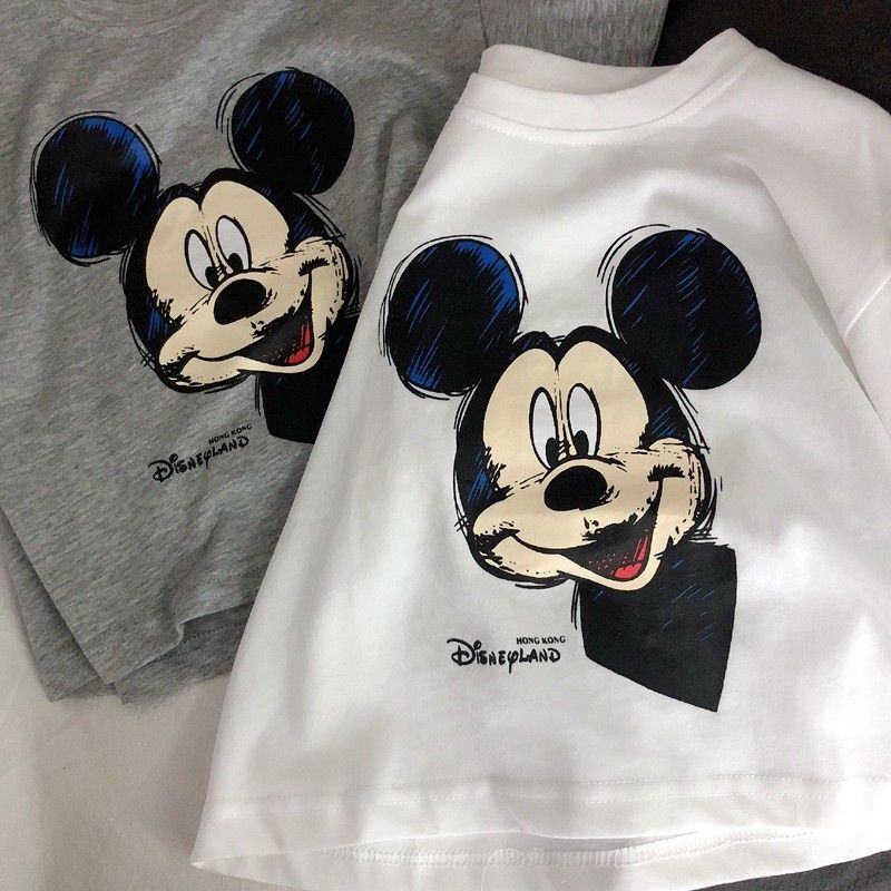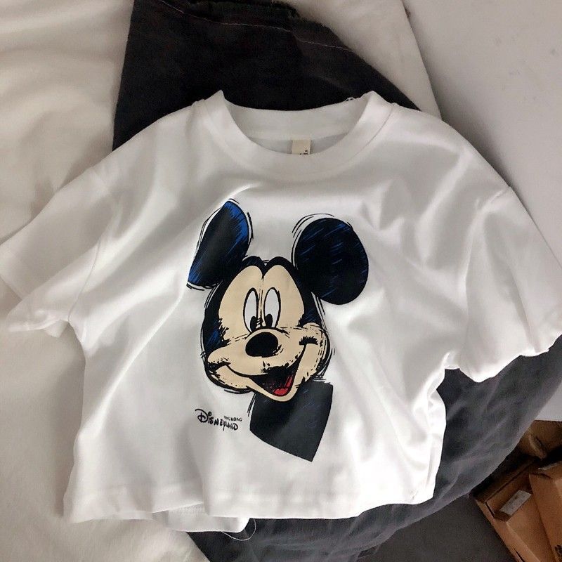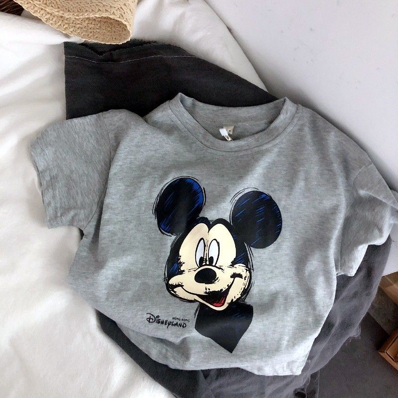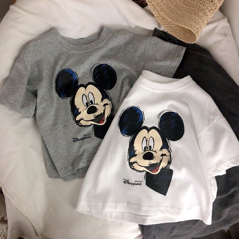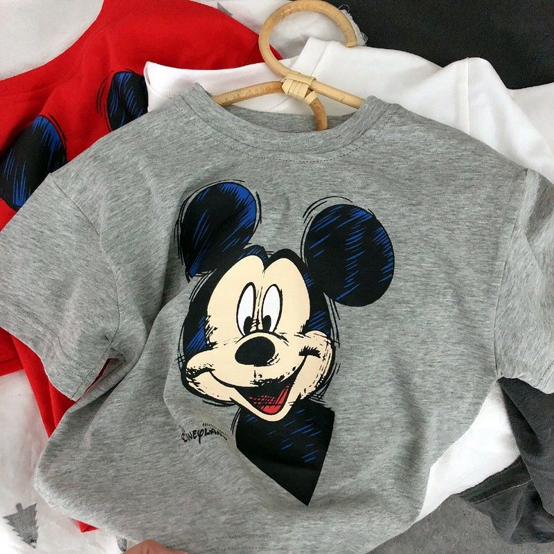 코튼 아동복 여름 새 만화 미키 인쇄 소년 반팔 티셔츠 베이비 캐주얼 소녀의 느슨한 탑
