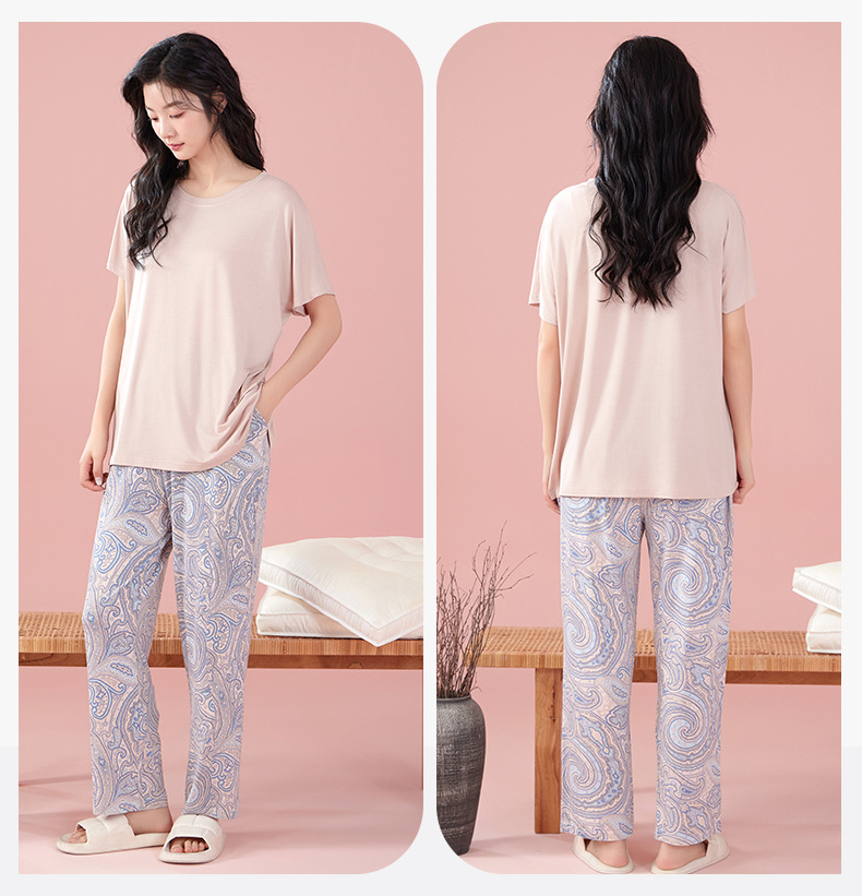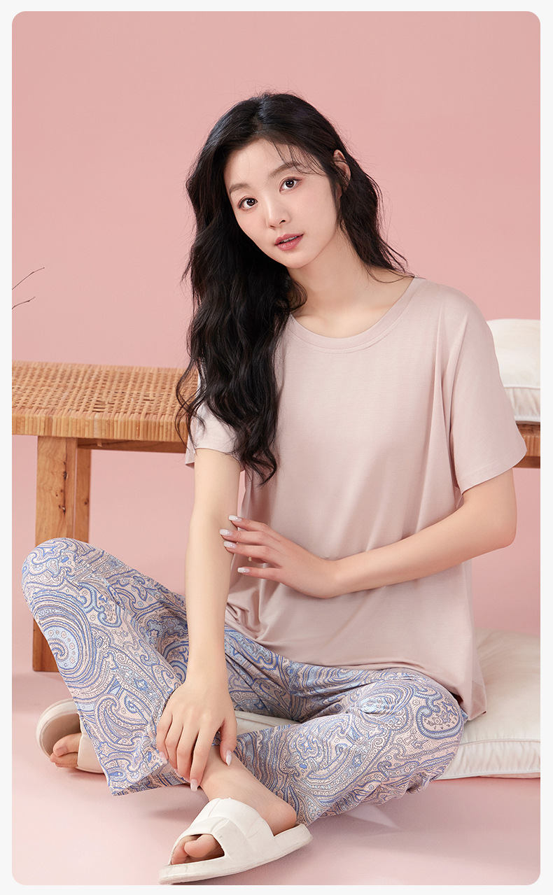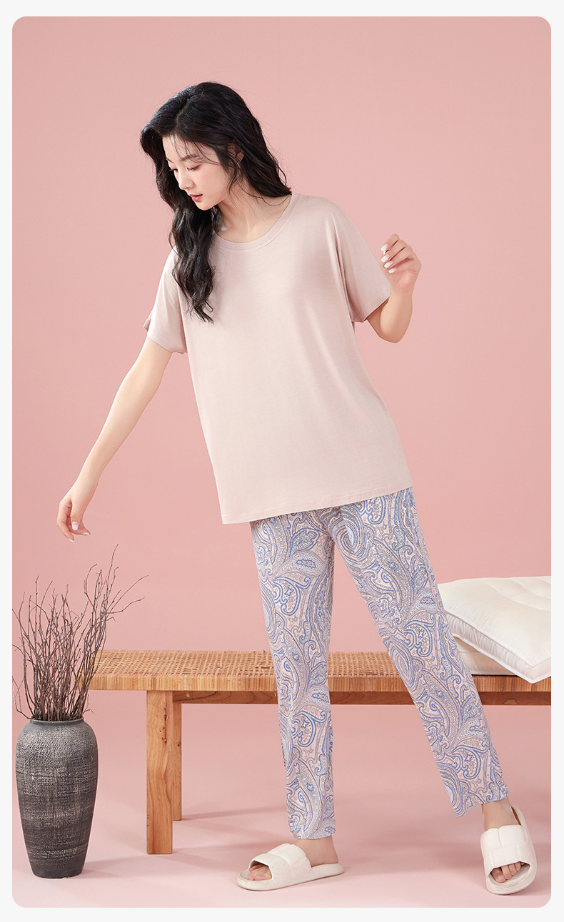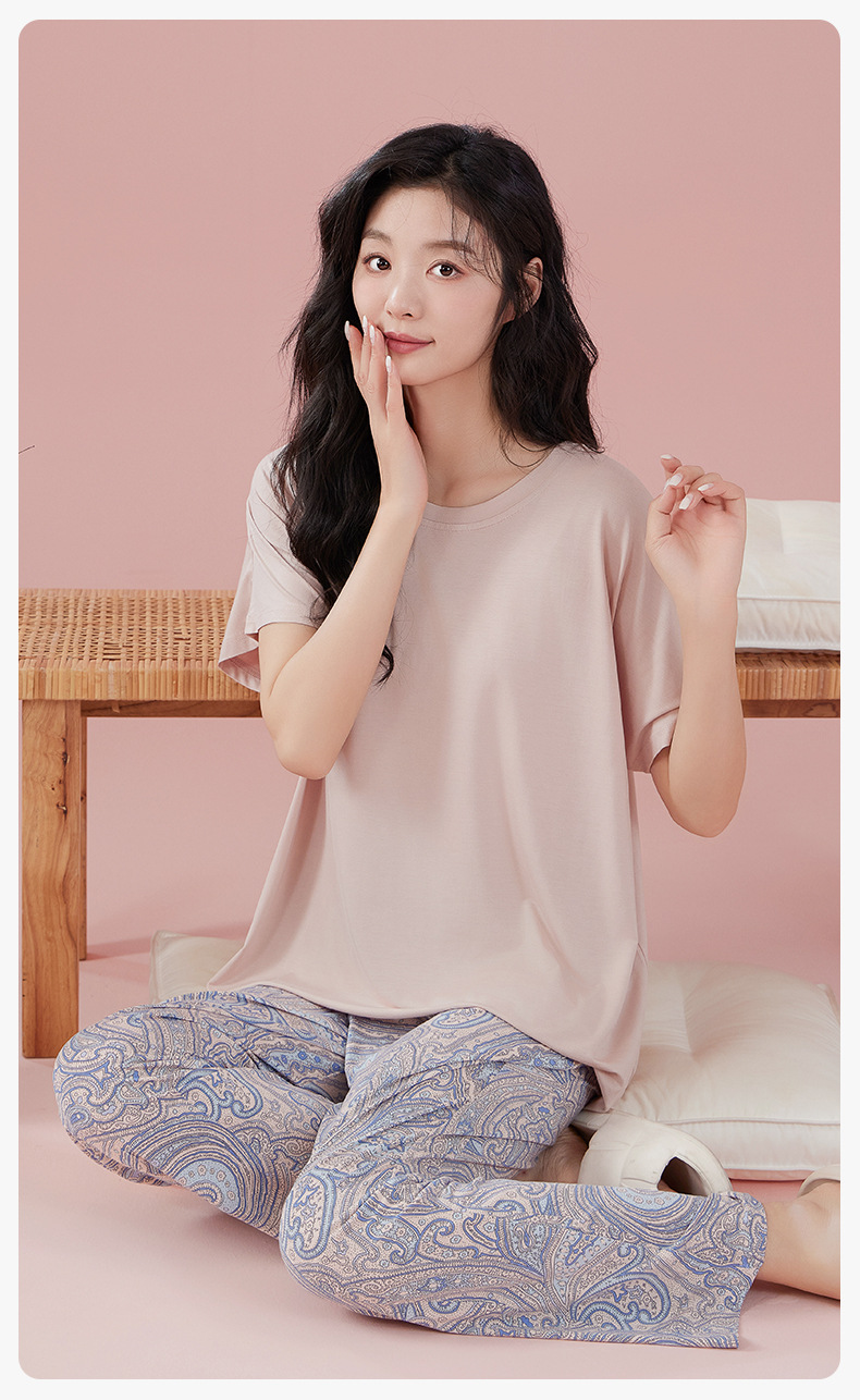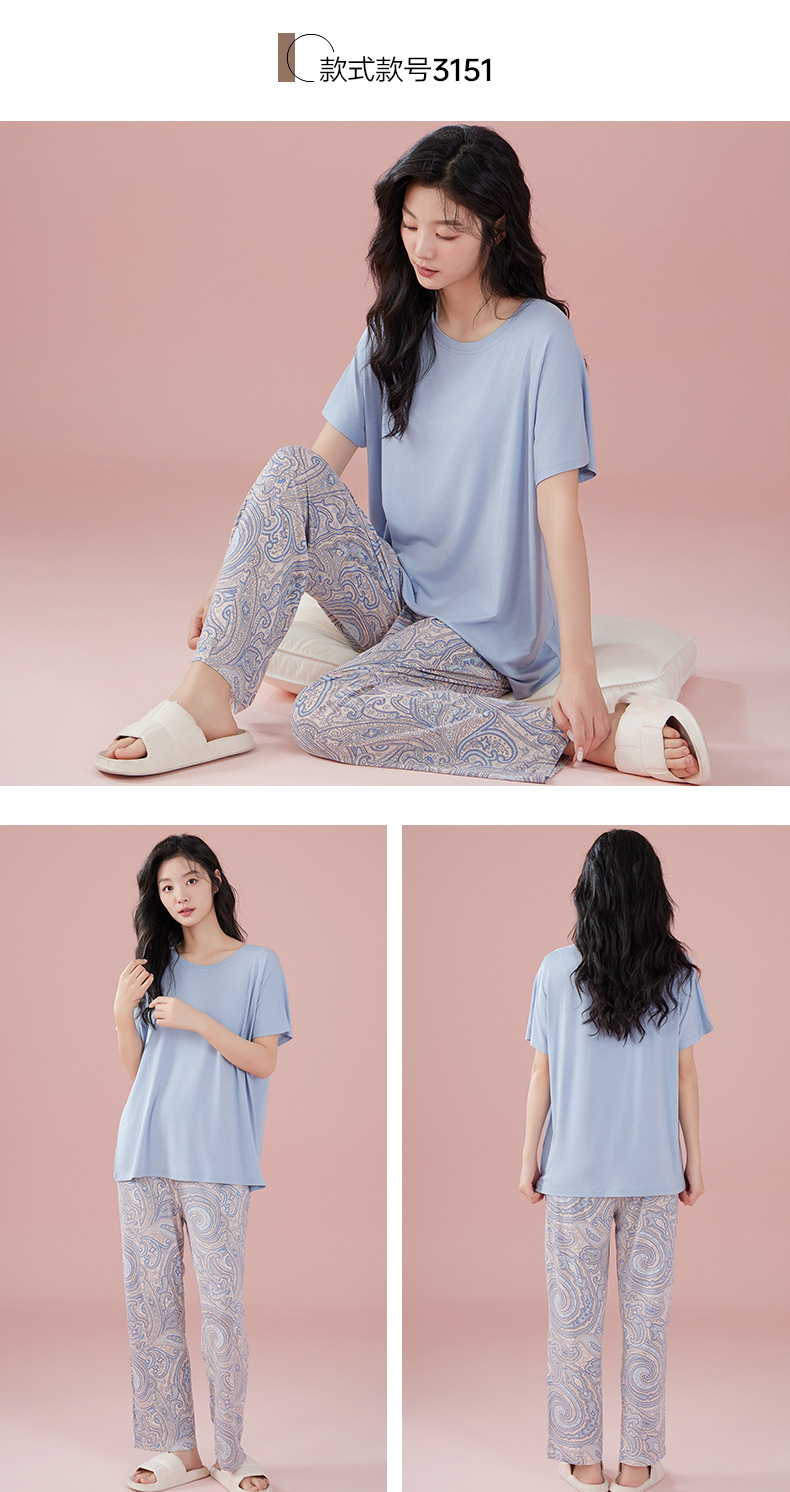 잠옷 여성의 여름 모달 반팔 바지 홈 착용 캐주얼 얇은 시원한 스트레치 세트 외출스토어 가기