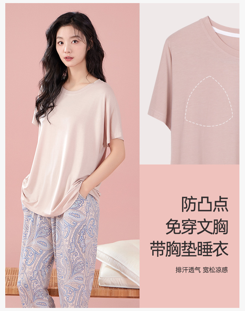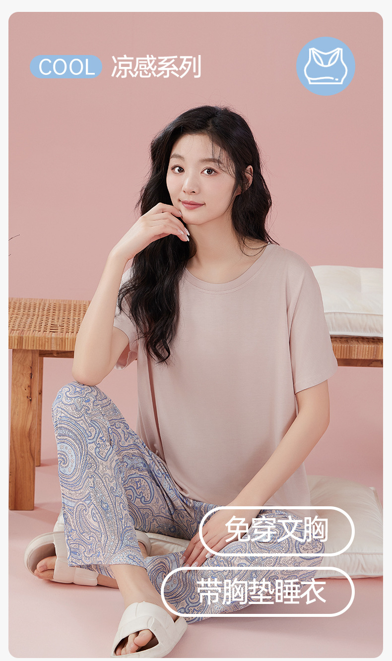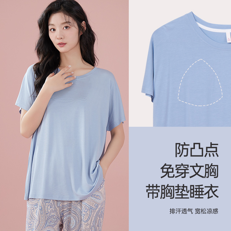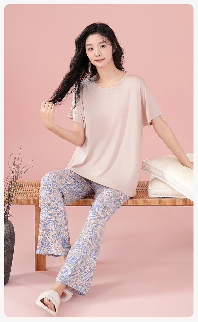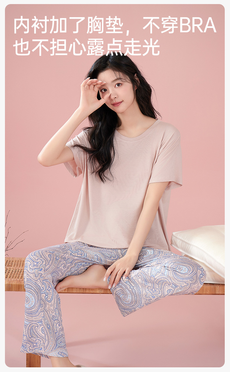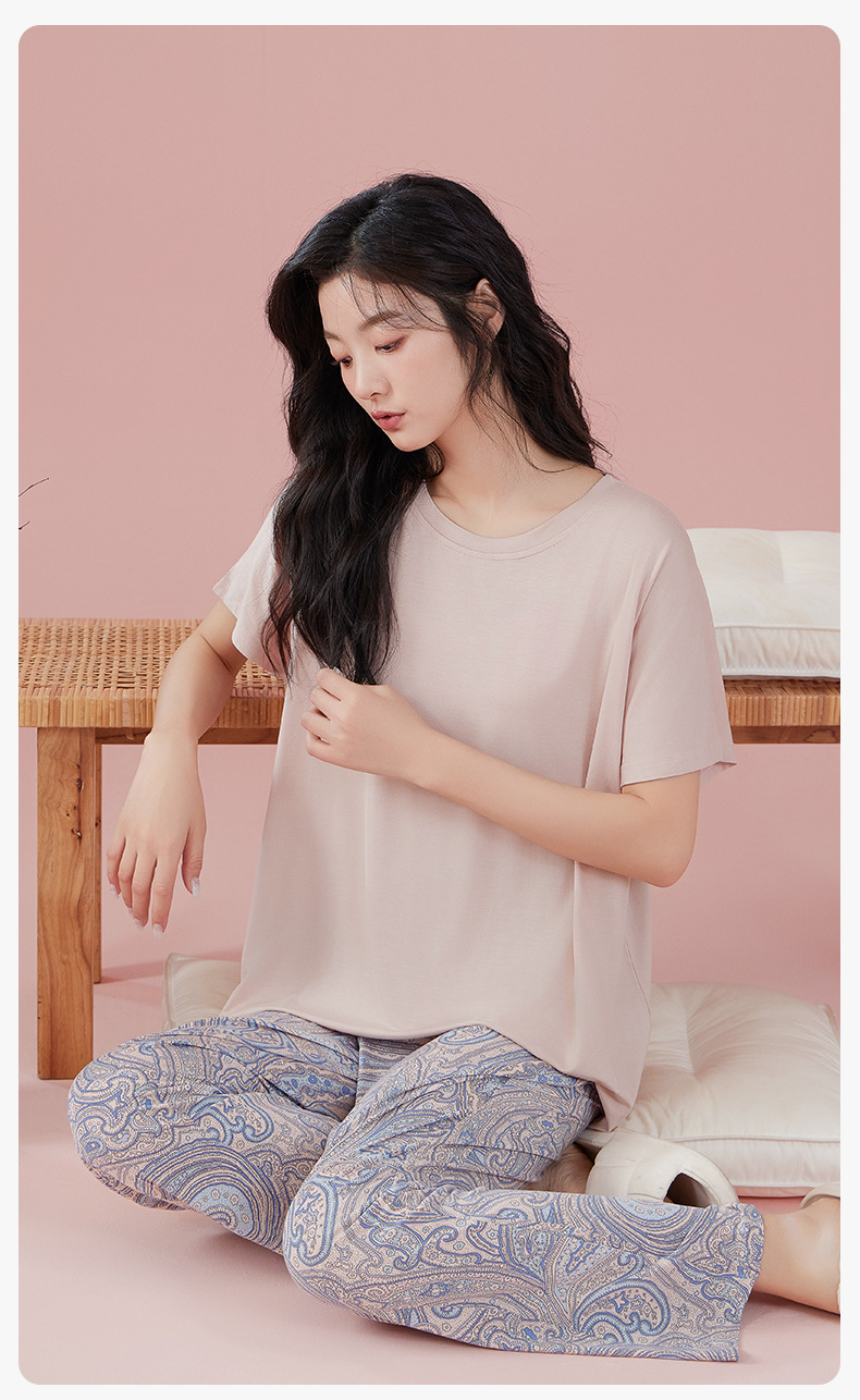 잠옷 여성의 여름 모달 반팔 바지 홈 착용 캐주얼 얇은 시원한 스트레치 세트 외출스토어 가기