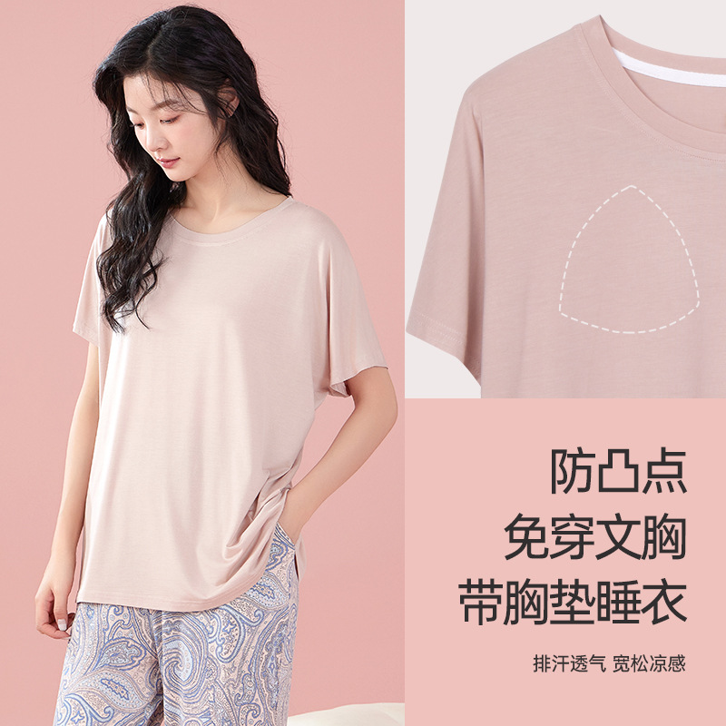 잠옷 여성의 여름 모달 반팔 바지 홈 착용 캐주얼 얇은 시원한 스트레치 세트 외출