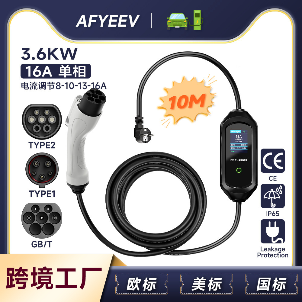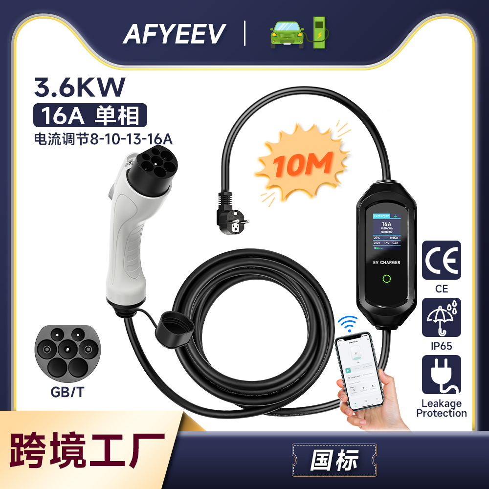 16A 단상 GBT 새로운 에너지 자동차 충전기 8A-16A 조정 가능한 현재 화면 디스플레이 가정용 휴대용 충전