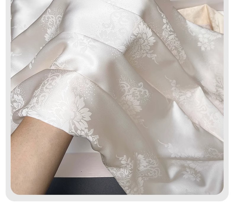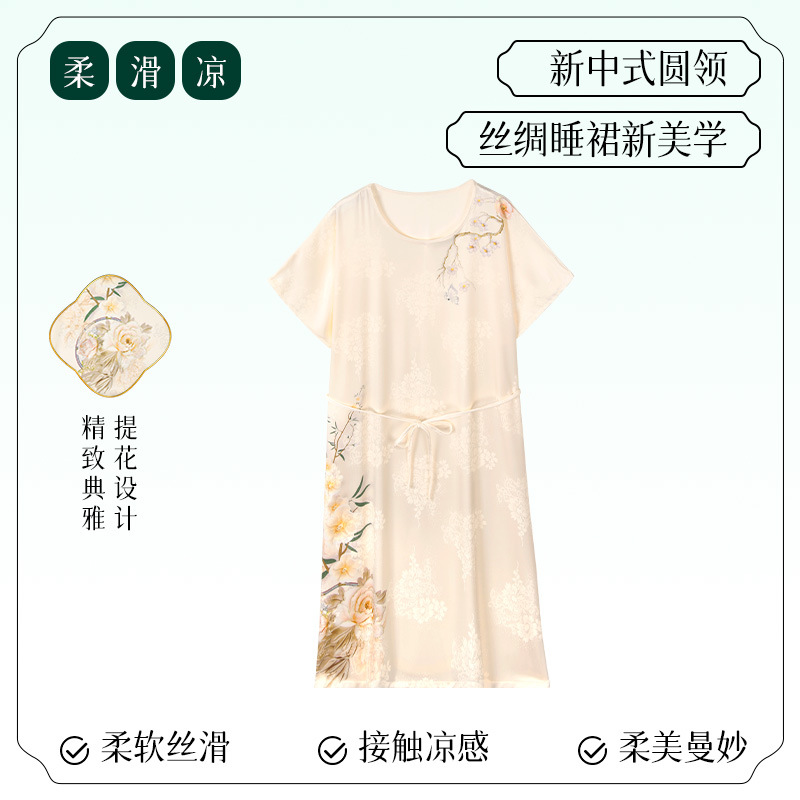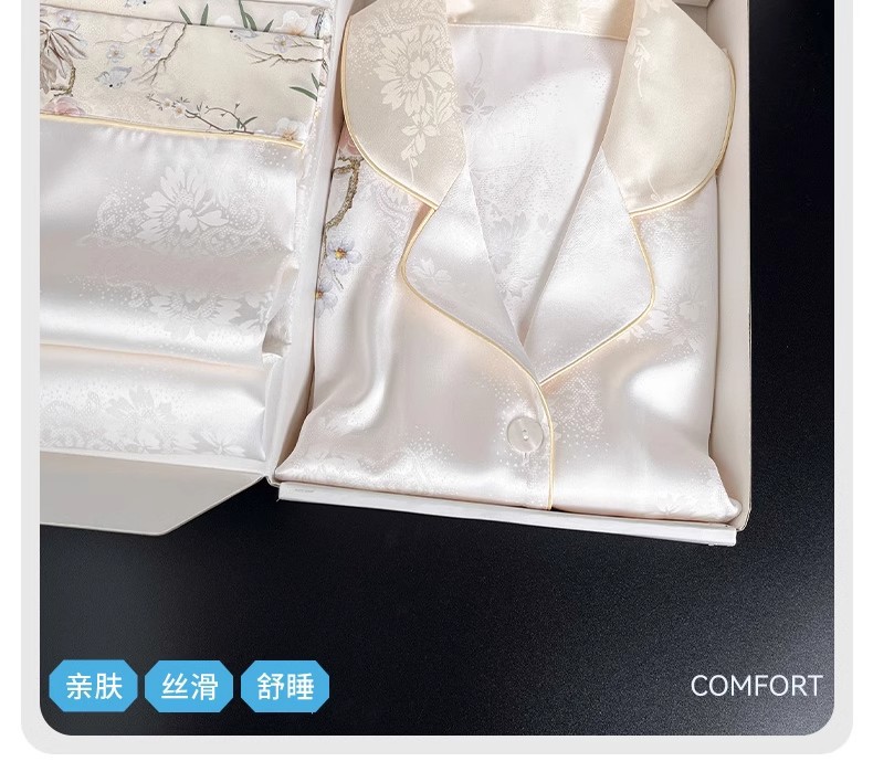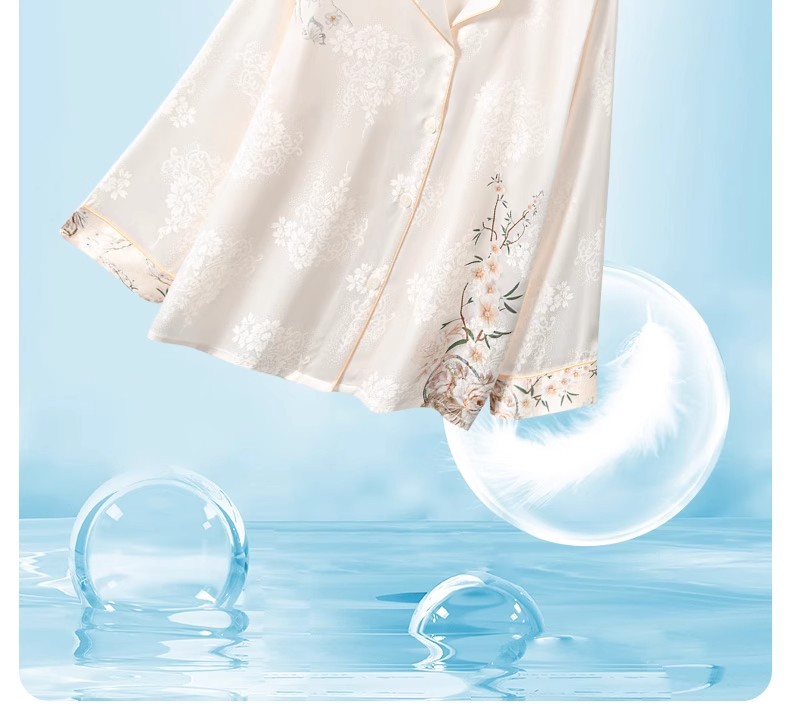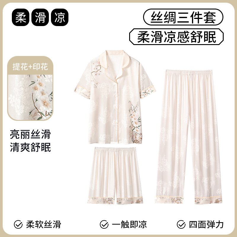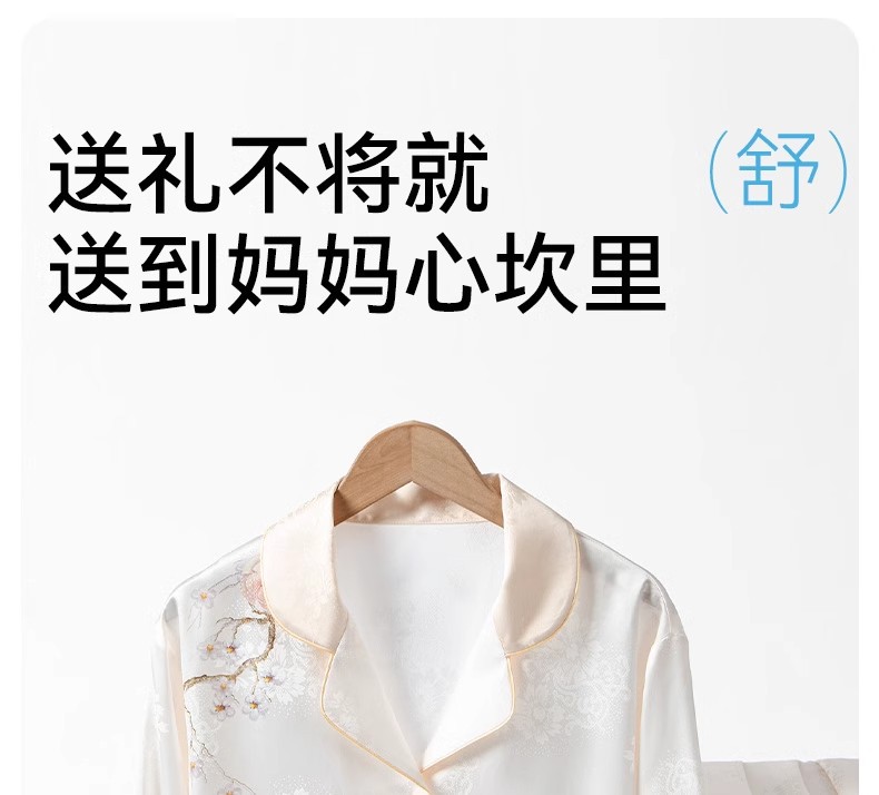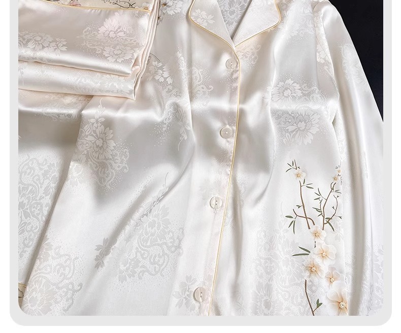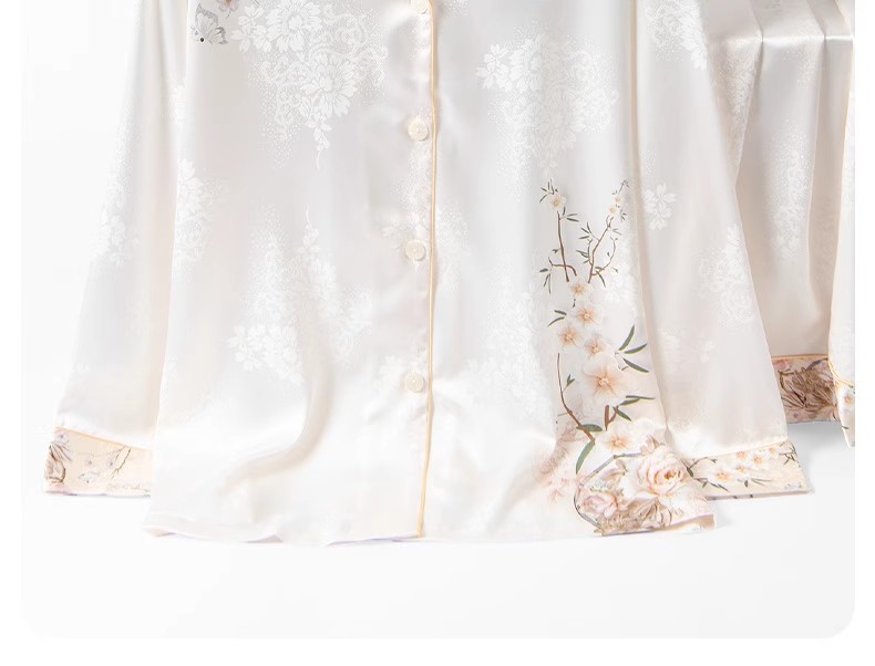 [어머니를위한 선물] 아이스 실크 파자마 여성 국가 스타일 인쇄 옷깃 느슨한 부드러운 집 옷스토어 가기