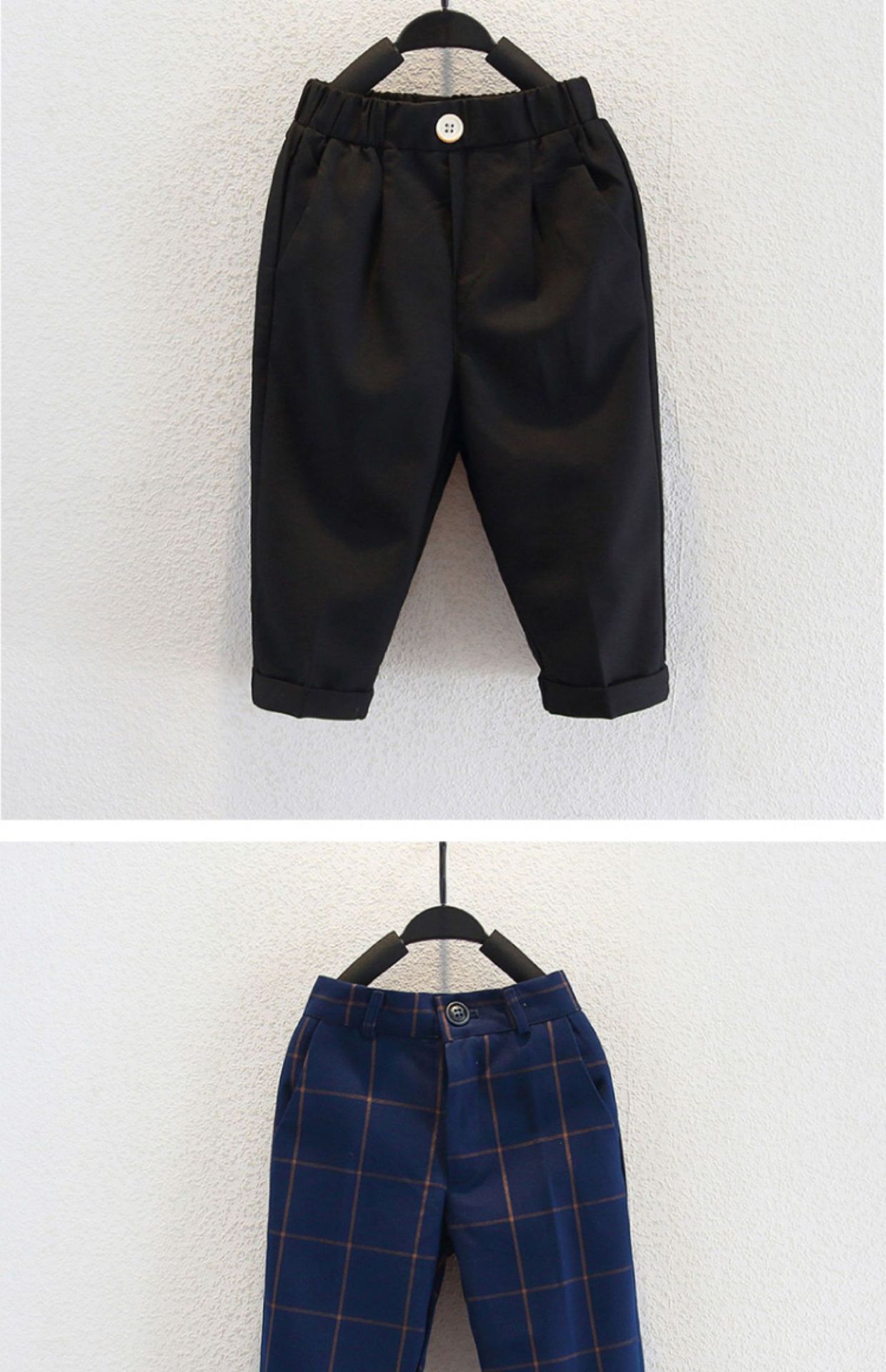 남학생 세트 바지 어린이 검은 색 세트 바지 여자 공연 네이비 스트레이트 탄성 허리 초등학교 바지스토어 가기