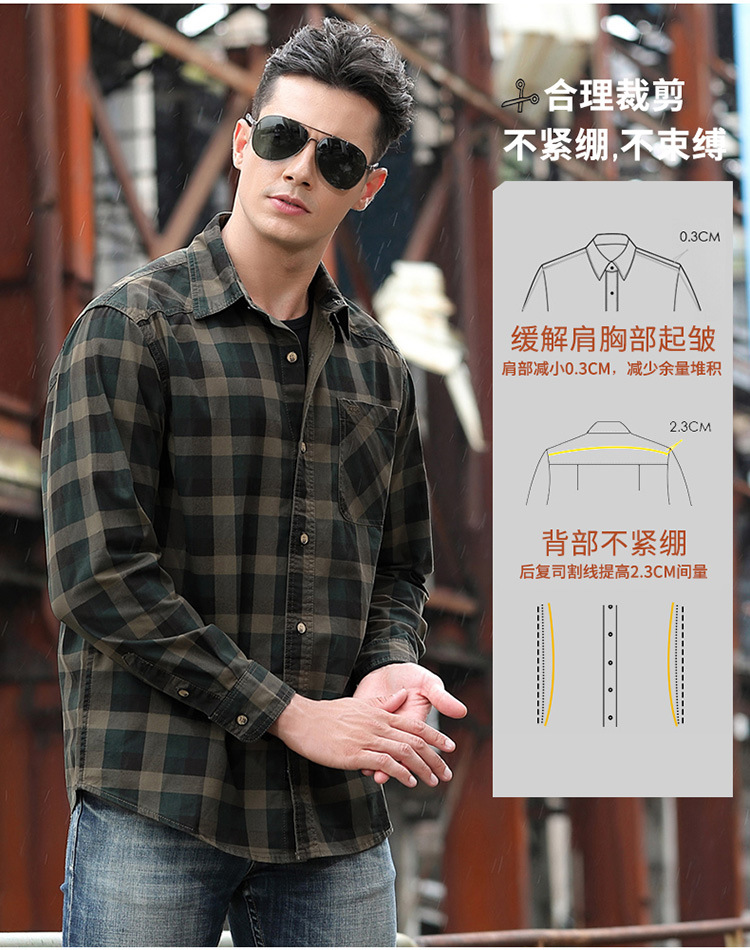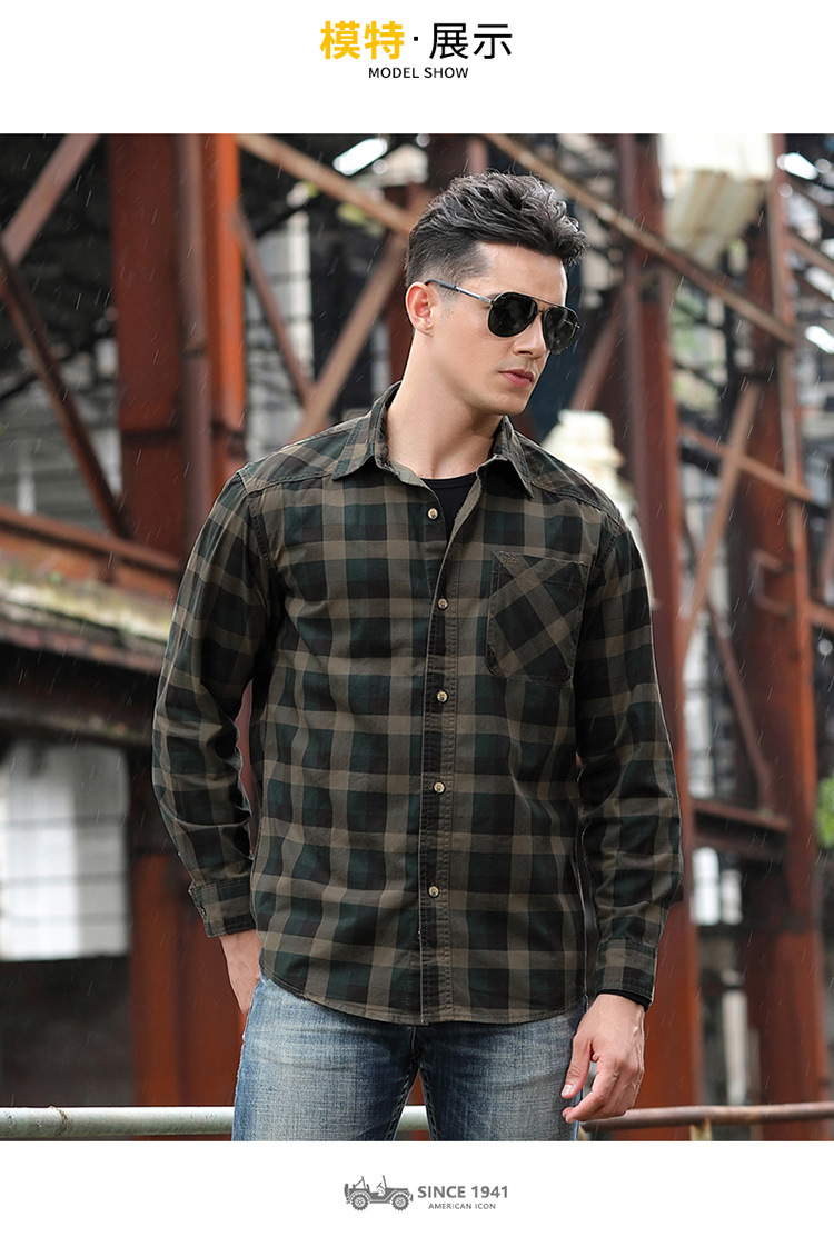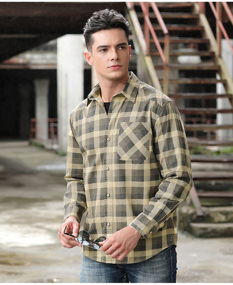 젊은 남성 봄, 가을 새로운 비즈니스 캐주얼 격자 무늬 셔츠 탑 남성 대형 긴팔 셔츠 남성 0021
