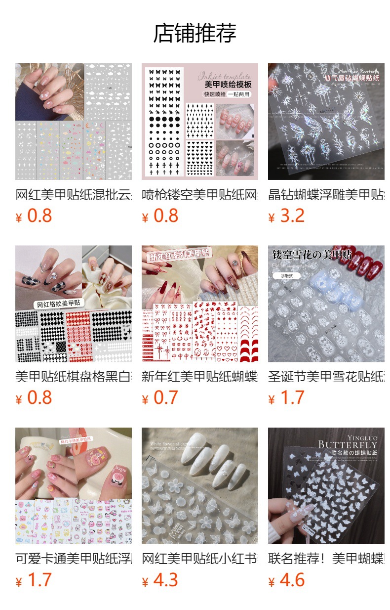 나비 리본 네일 스티커 도매 2026년 신상 흑백 금은 레드 리본 리본형 접착식 네일 스티커스토어 가기