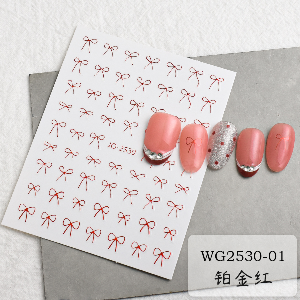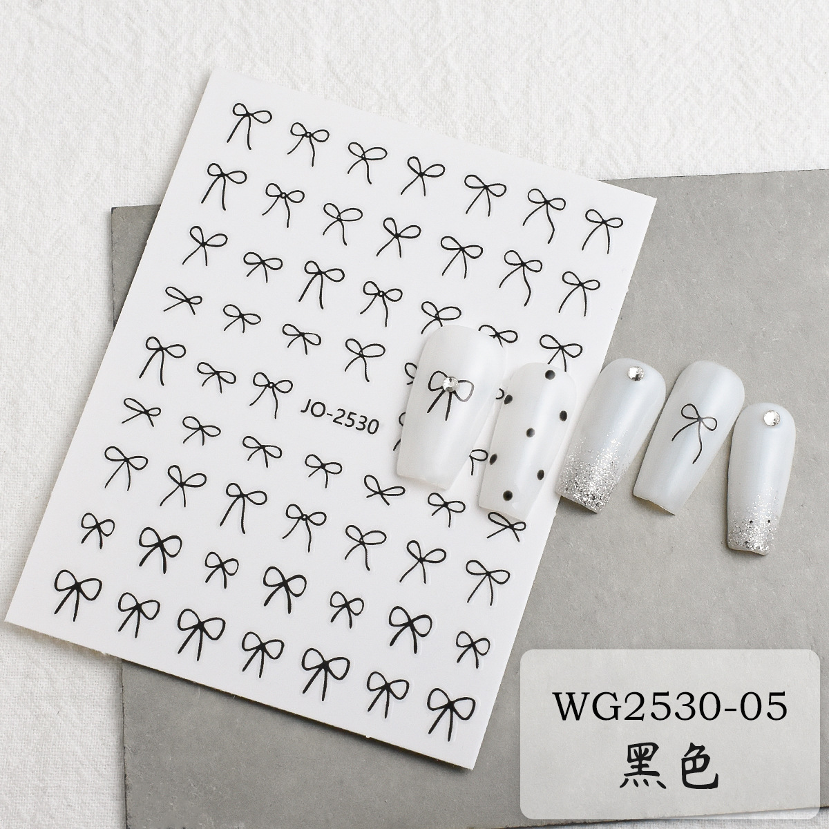 나비 리본 네일 스티커 도매 2026년 신상 흑백 금은 레드 리본 리본형 접착식 네일 스티커